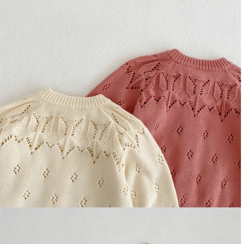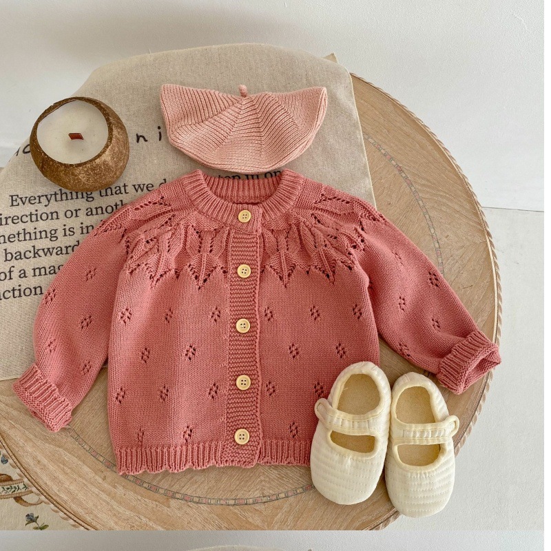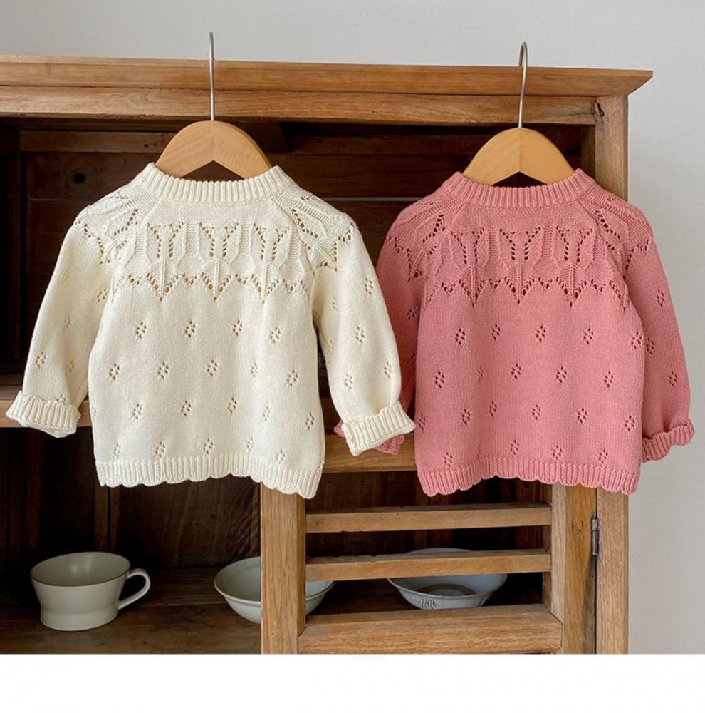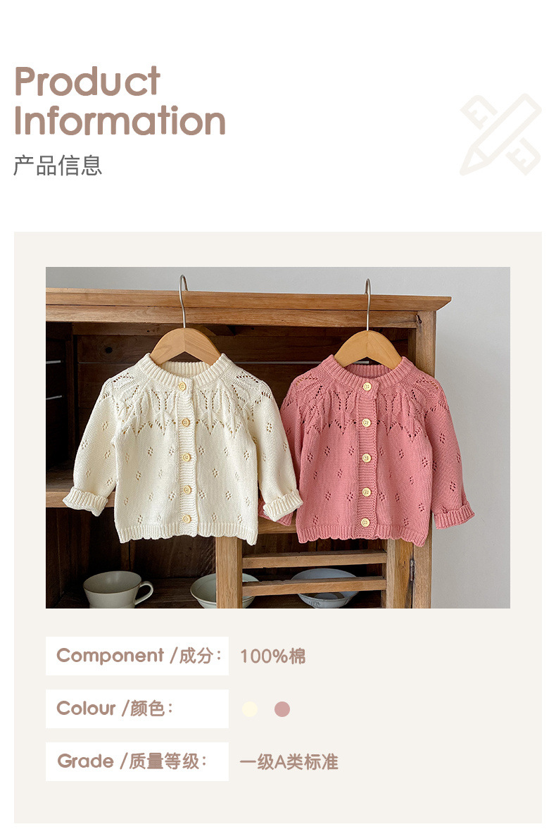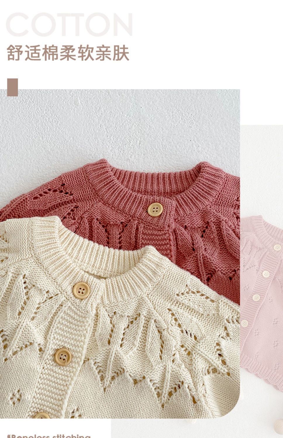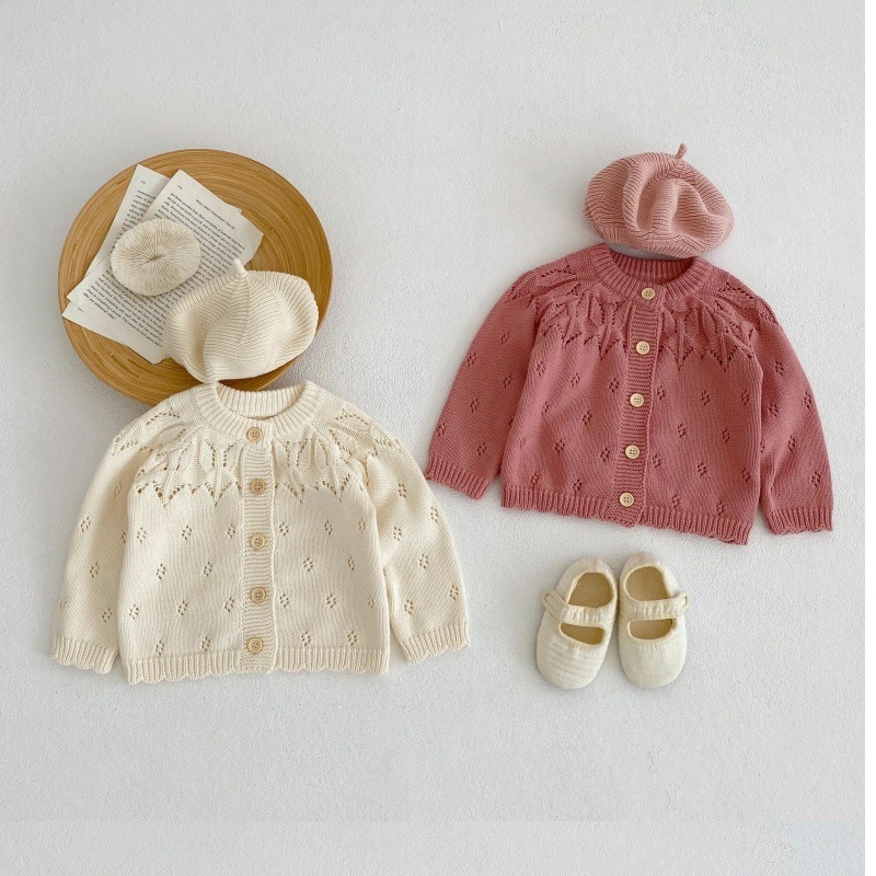 2023 봄 올매치 베이비 베이비 자카드 중공 니트 코트 코튼 긴팔 에어컨 가디건