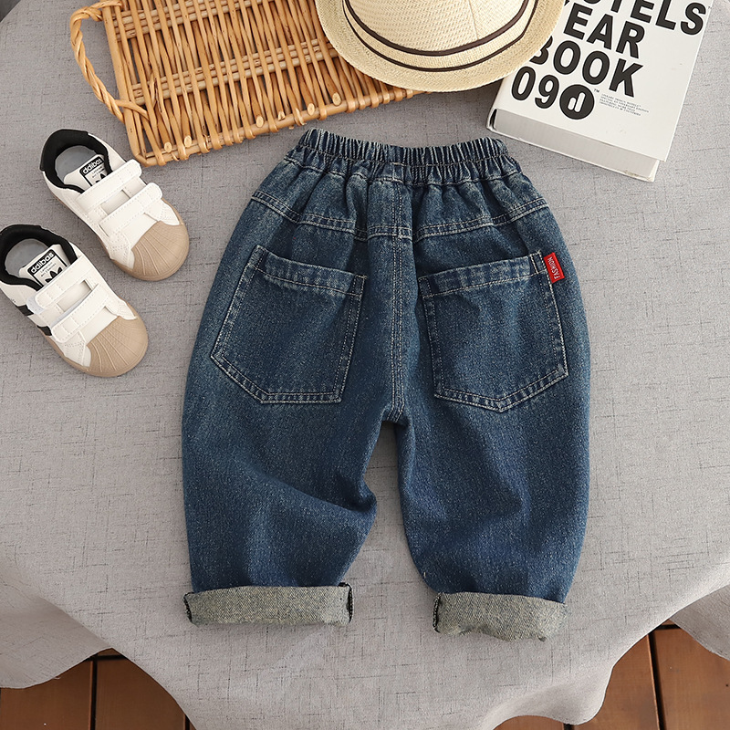 소년 청바지 가을 어린이 바지 봄과 가을 2023 새로운 아기 세련된 바지 어린이 캐주얼 바지 트렌디