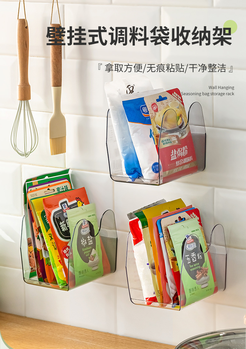 양념봉투 수납선반, 가정용 벽걸이 수납선반, 양념봉투 수납함, 무타공 양념봉투 수납선반