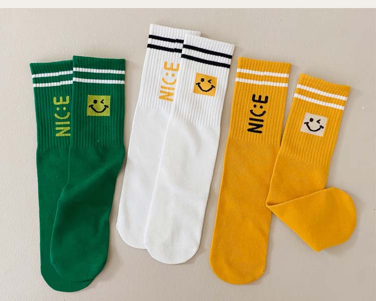 한국 어린이 고층 웃는 얼굴 트렌디 양말 봄 가을 소년 소녀 얕은 양말 유치원 모든 경기 중간 길이 스포츠 교복 양말스토어 가기