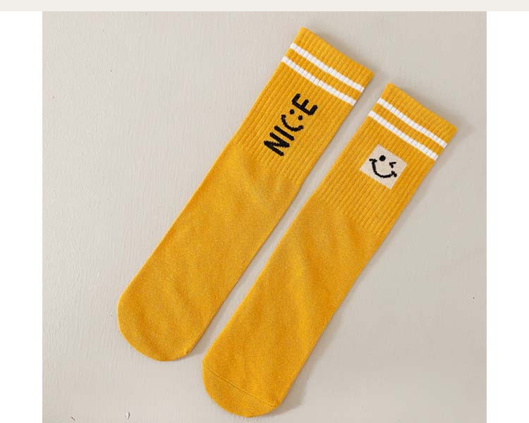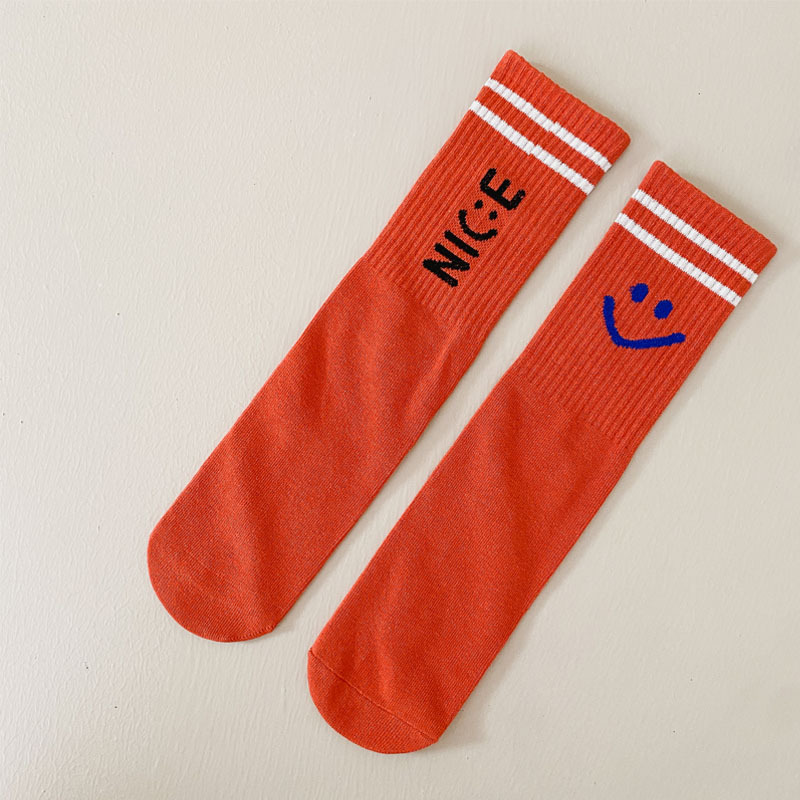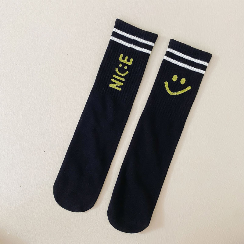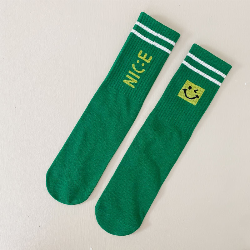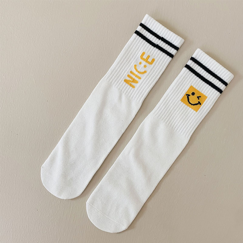 한국 어린이 고층 웃는 얼굴 트렌디 양말 봄 가을 소년 소녀 얕은 양말 유치원 모든 경기 중간 길이 스포츠 교복 양말