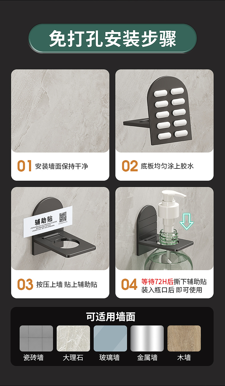 샴푸 랙 천공 샤워 젤 욕실 벽걸이 욕실 공간 알루미늄 비누 디스펜서 손 소독제 랙 벽
