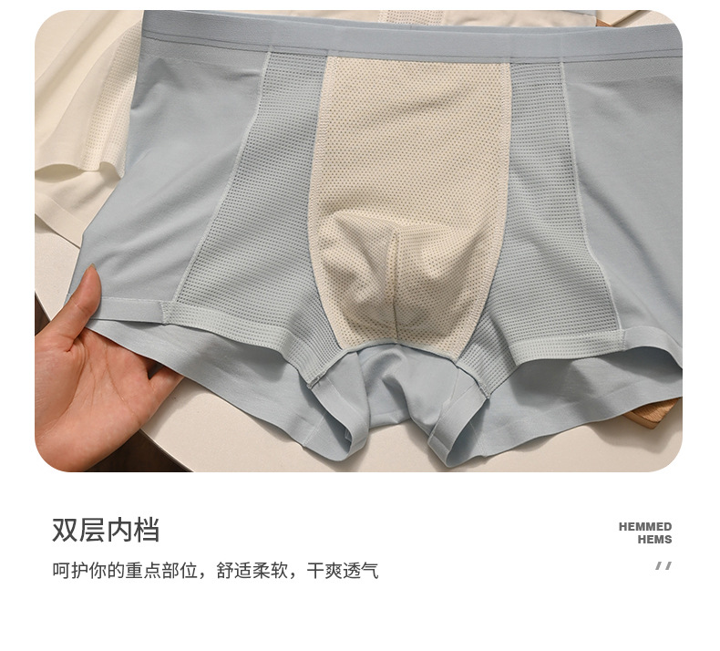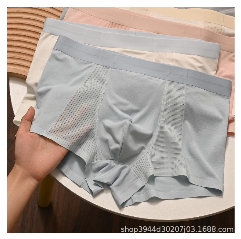 공장 직접 남자 아이스 실크 속옷 메쉬 복서 바지 여름 소년 복서 항균 가랑이 쉐이크 빠른 손 라이브