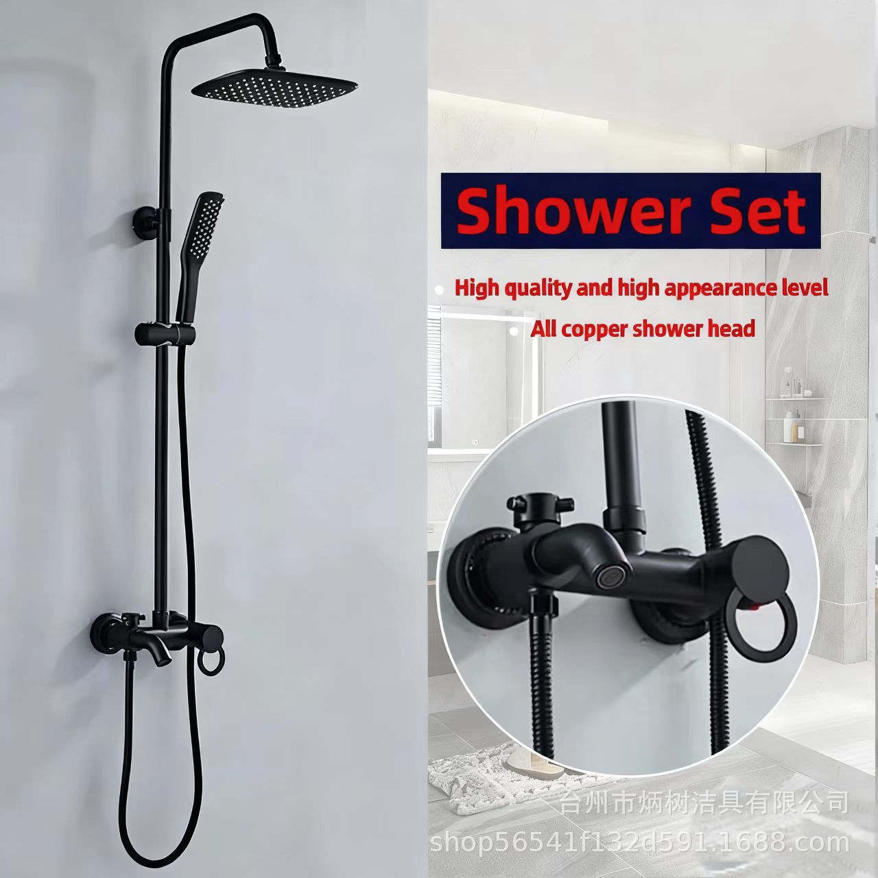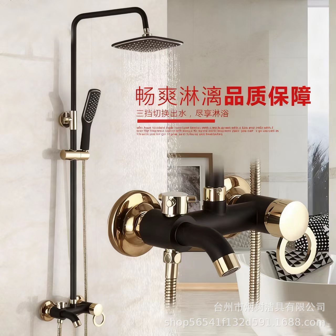 간단한 모든 구리 크로스 보더 블랙과 골드 샤워 세트 회전 스위치 레인 샤워 헤드 리프팅 목욕 꽃 와인스토어 가기