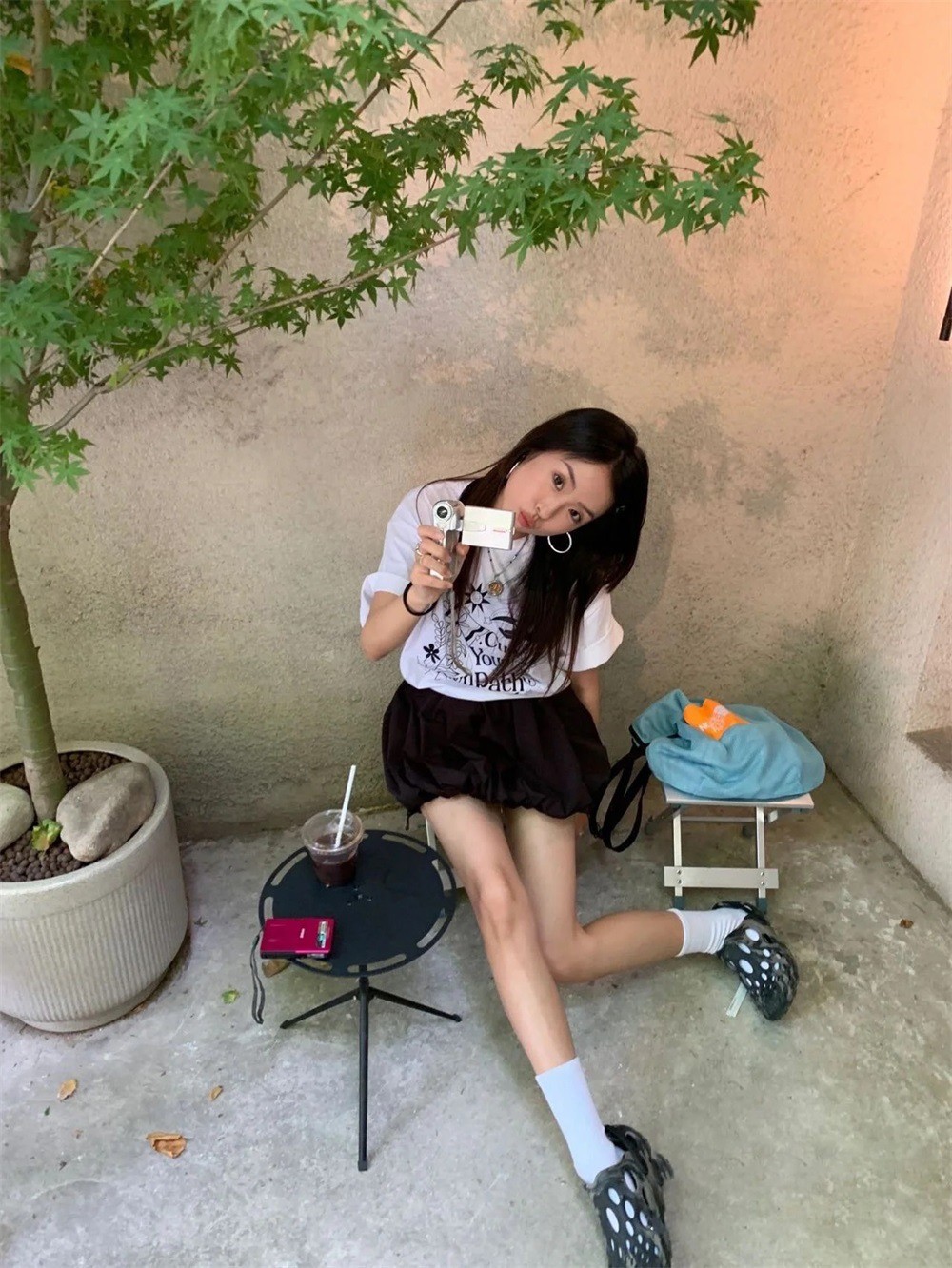 짧은 주름 호박 스커트 블랙/화이트스토어 가기