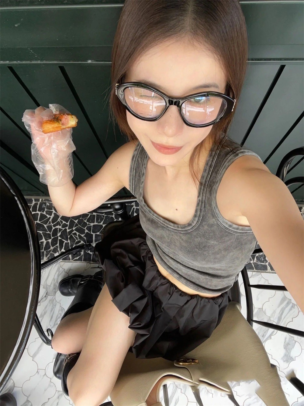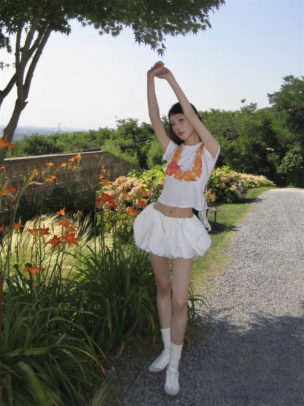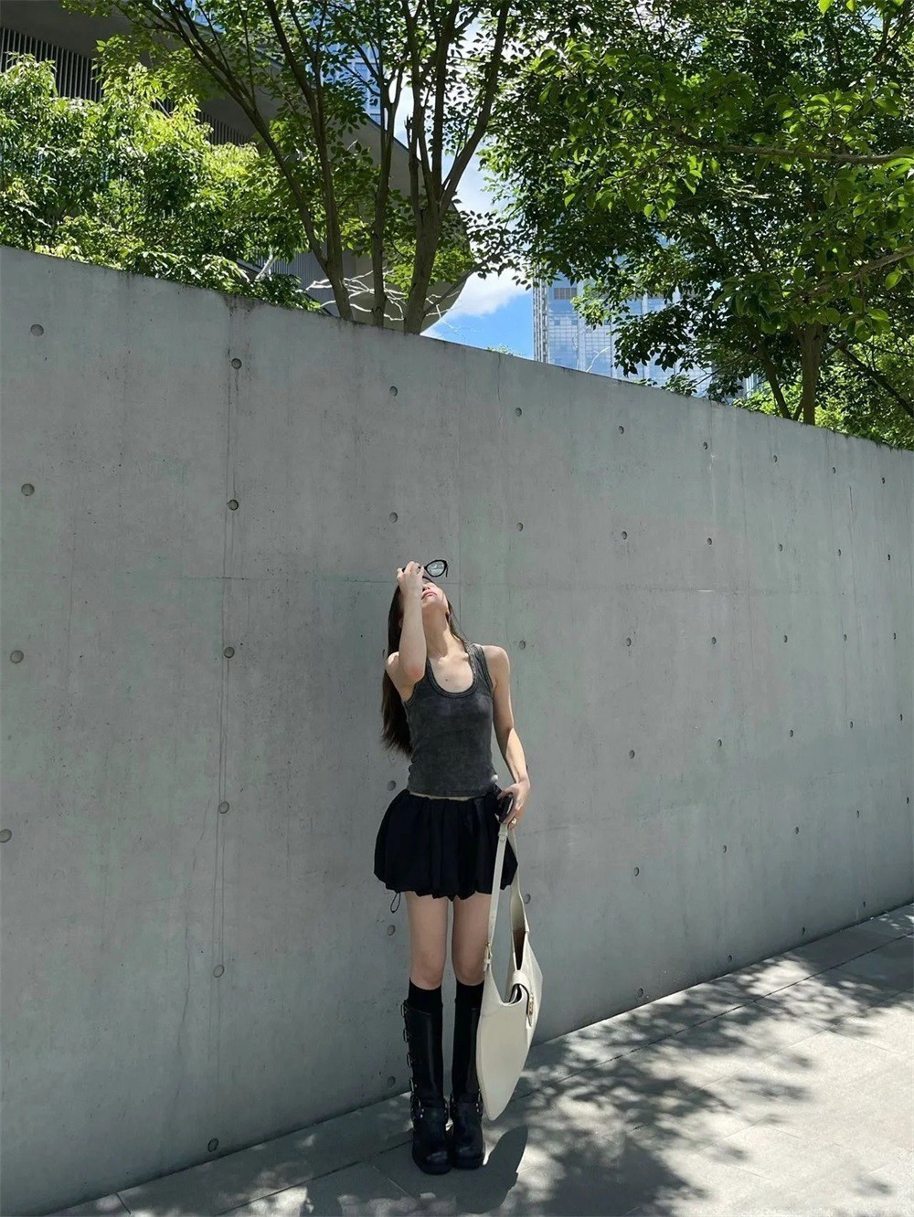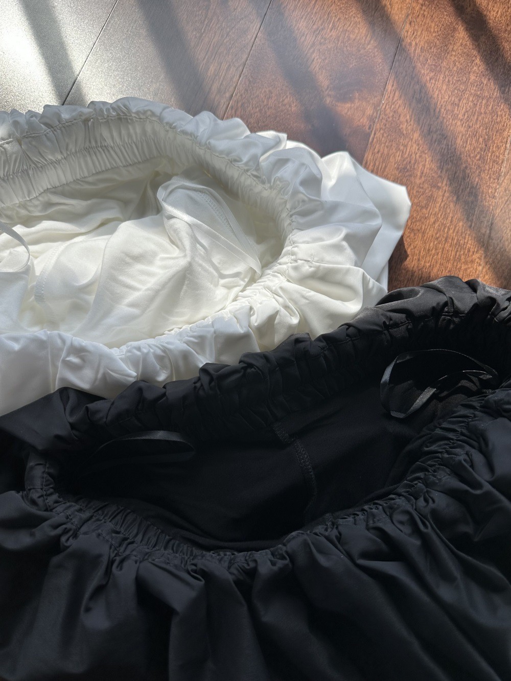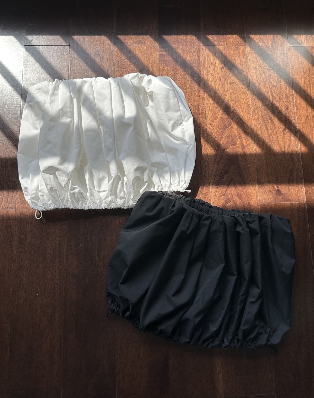 짧은 주름 호박 스커트 블랙/화이트