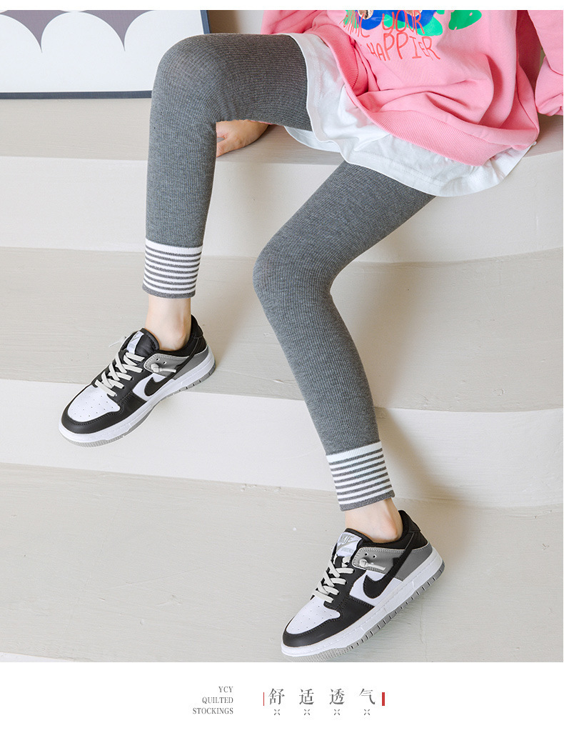 가을 2023 새로운 면화 발 입 수평 스트립 중소 어린이와 소녀를위한 어린이 크롭 팬츠 간단한 겉옷 레깅스