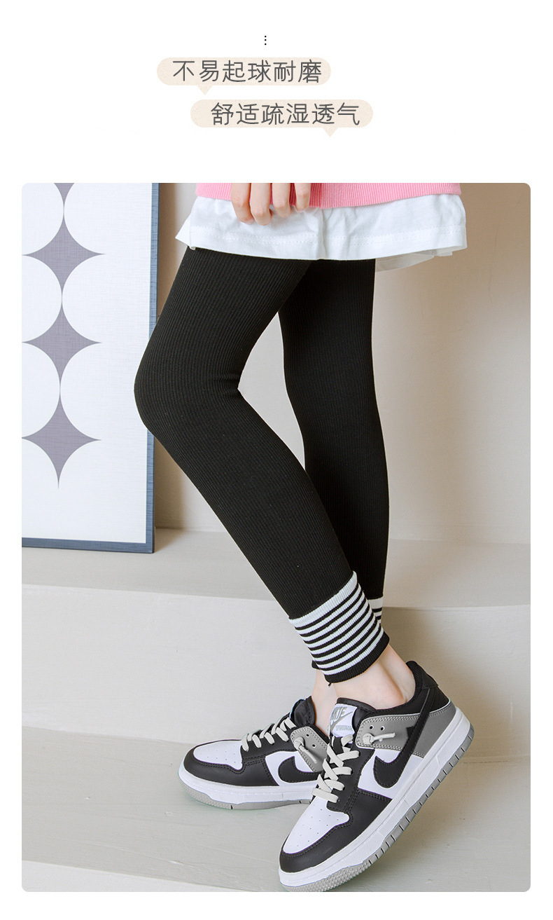 가을 2023 새로운 면화 발 입 수평 스트립 중소 어린이와 소녀를위한 어린이 크롭 팬츠 간단한 겉옷 레깅스스토어 가기