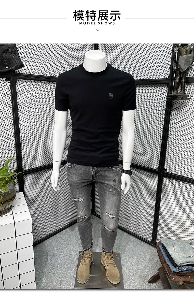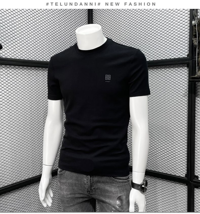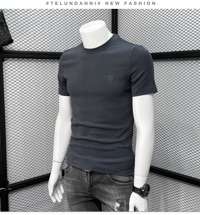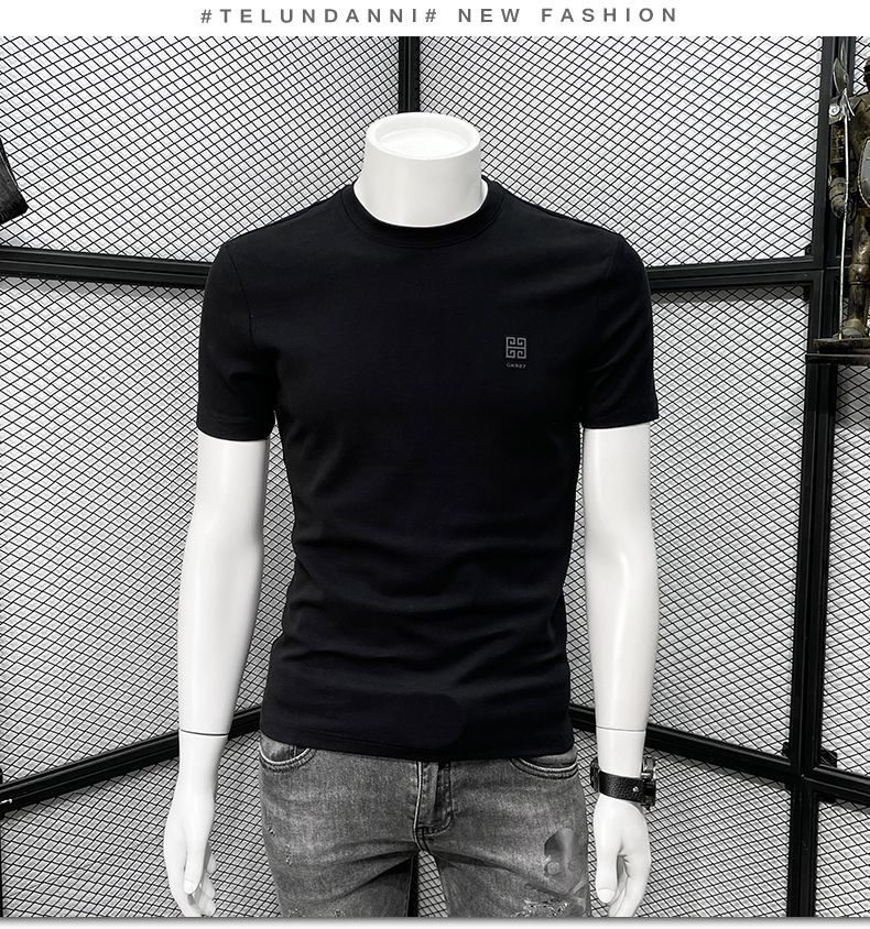 남성용 반팔 티셔츠 봄과 여름 클래식 새로운 패션 캐주얼 라운드 넥 반 소매 패션 브랜드 슬림핏 만능 티셔츠스토어 가기