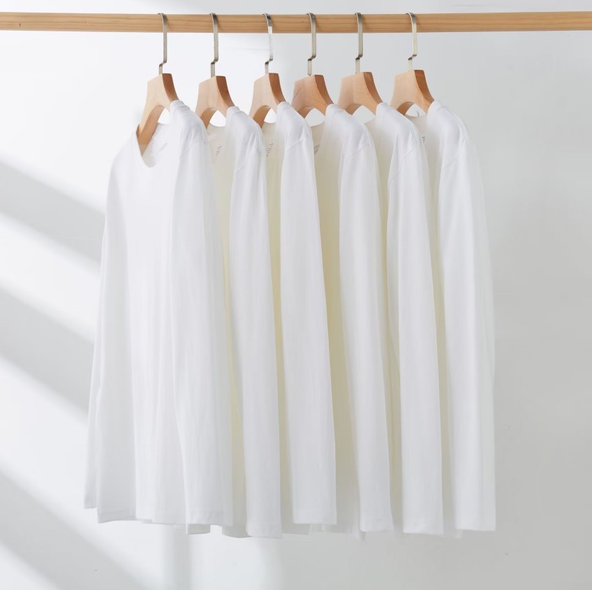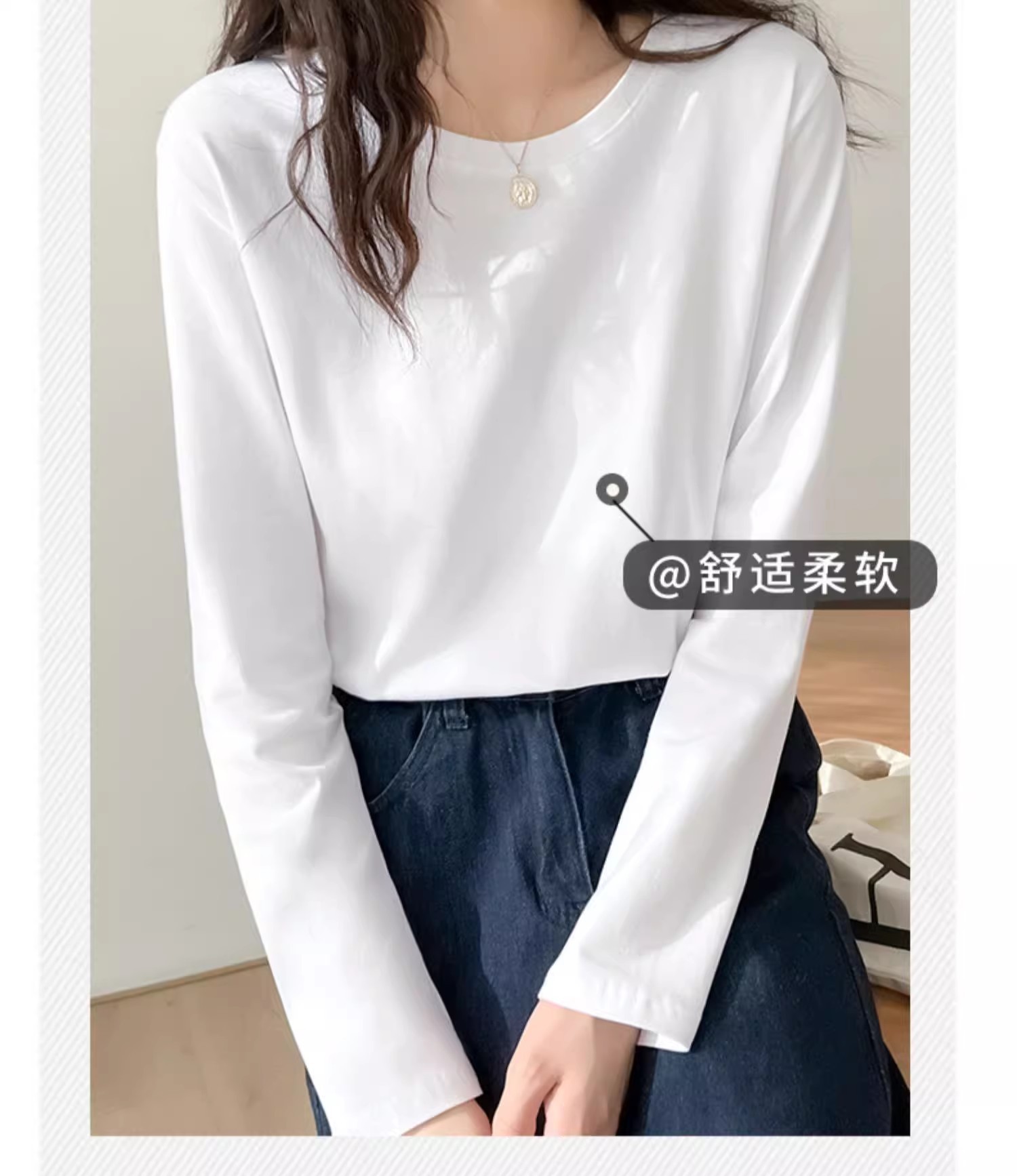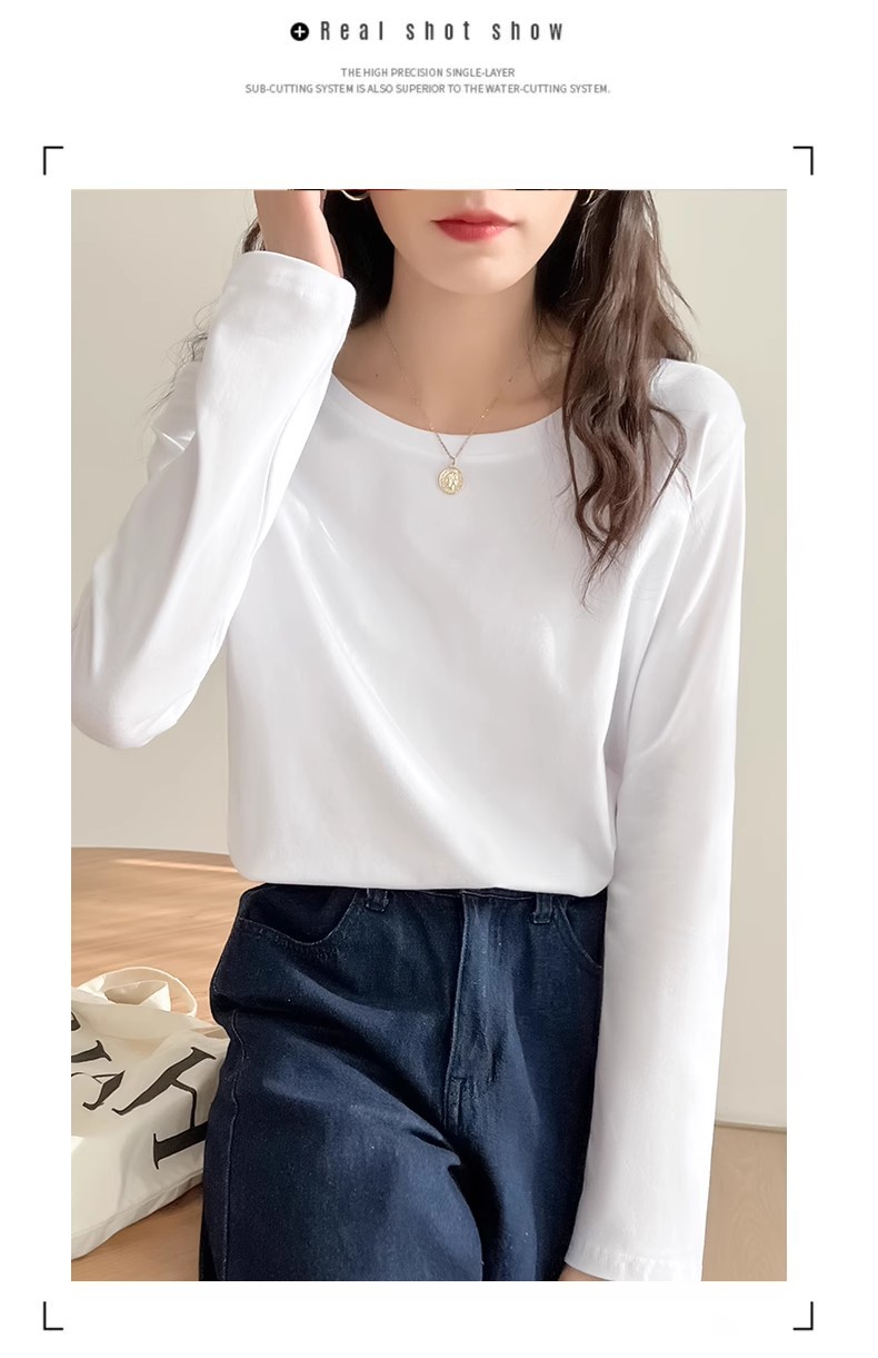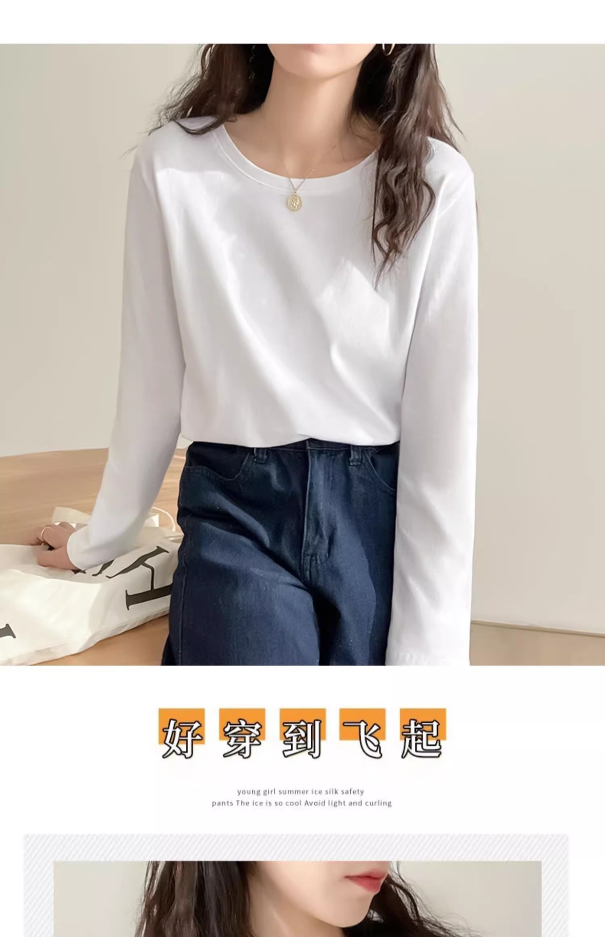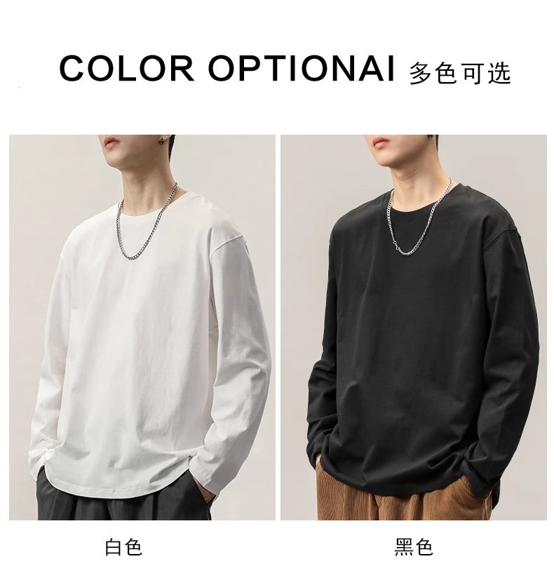 무거운 면 긴 소매 티셔츠 여성의 가을과 겨울 느슨한 스택 내부 베이스 셔츠 단색 남성과 여성의 최고 T 도매스토어 가기