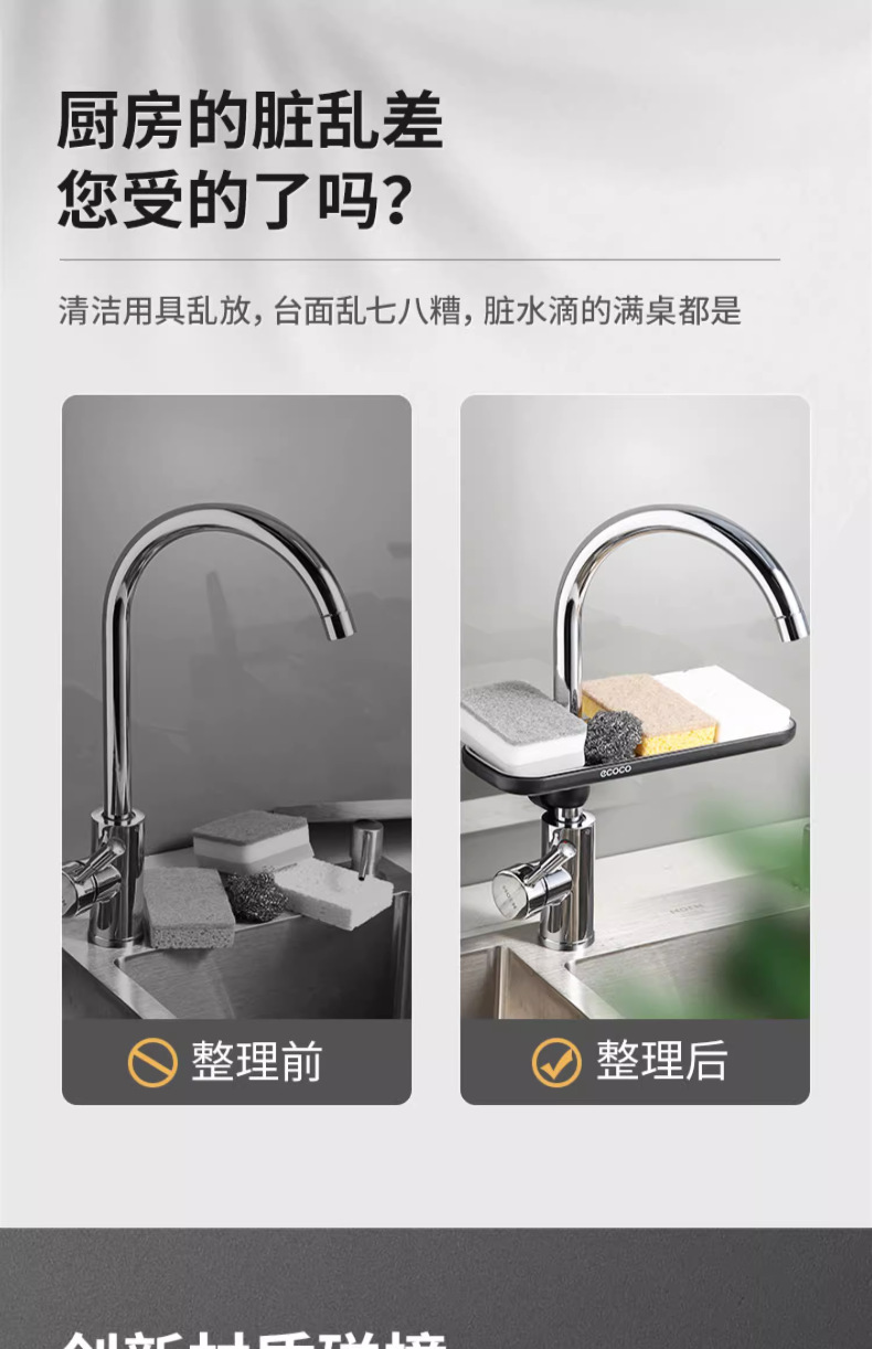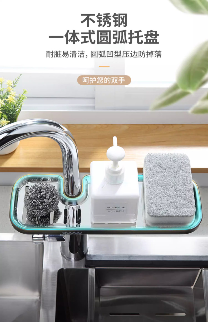 수도꼭지 랙 스테인레스 스틸 싱크 보관 랙 주방 용품 유물 싱크 걸레 배수 바구니