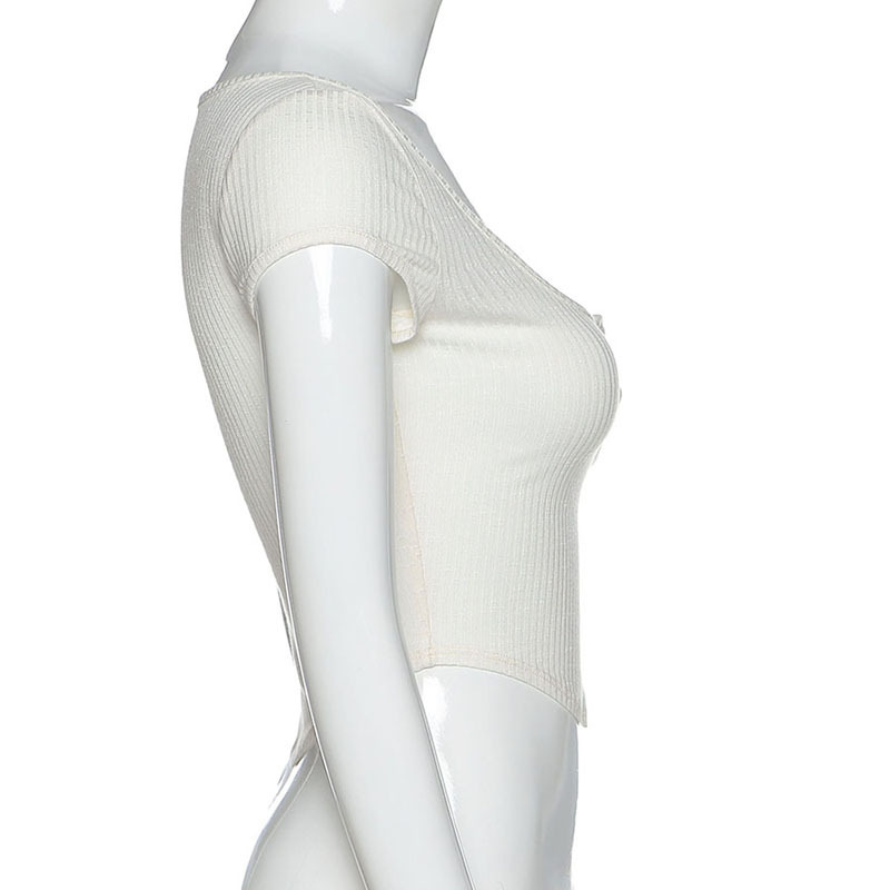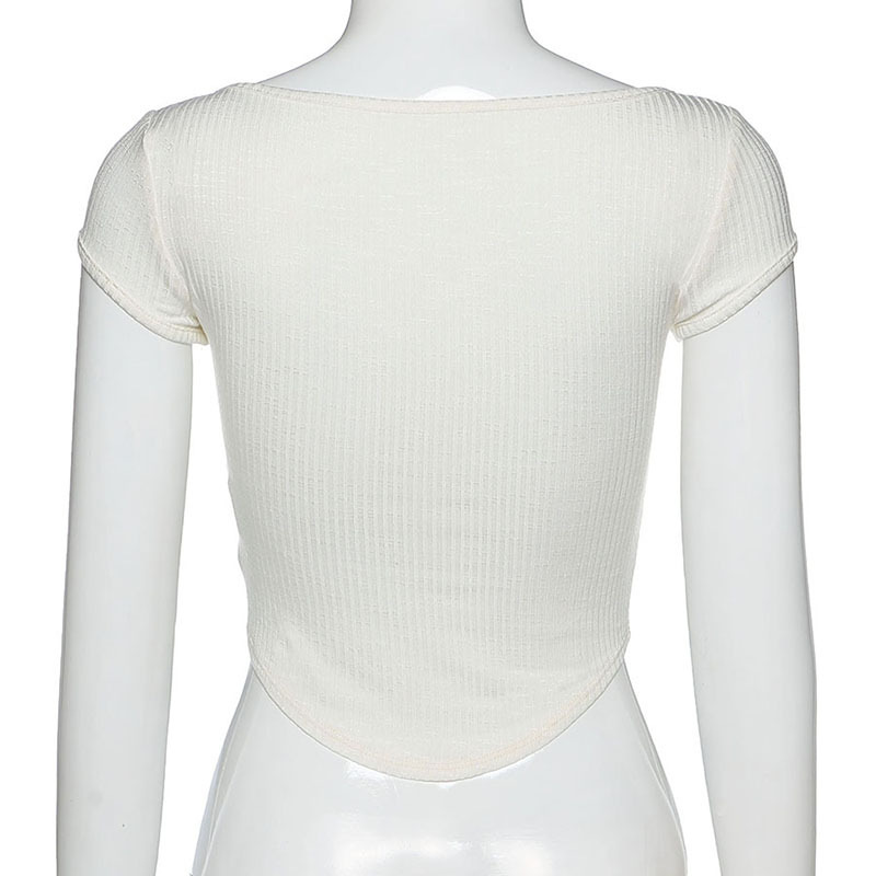 2023 유럽과 미국 스파이스 걸 스타일 단색 배꼽 반팔 티셔츠 여성용 슈퍼 피규어 모든 매치 짧은 탑 봄과 여름