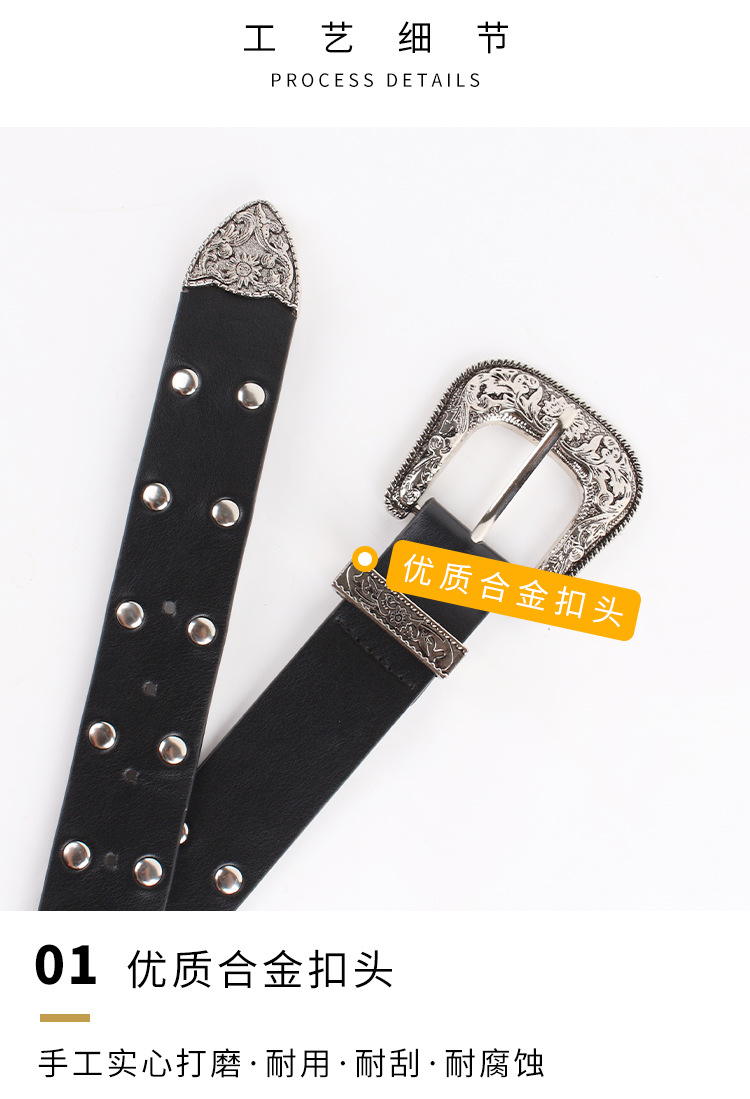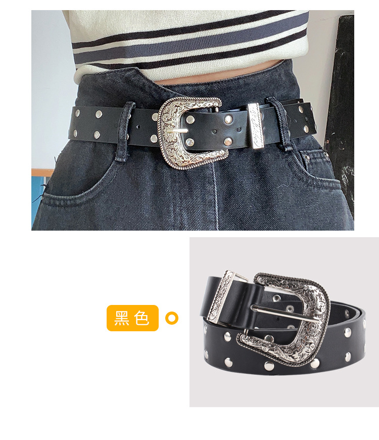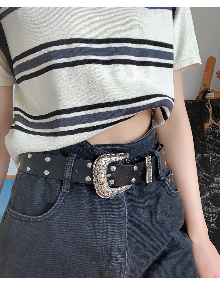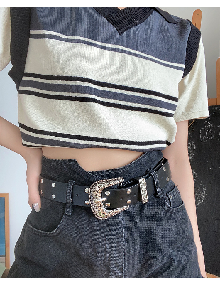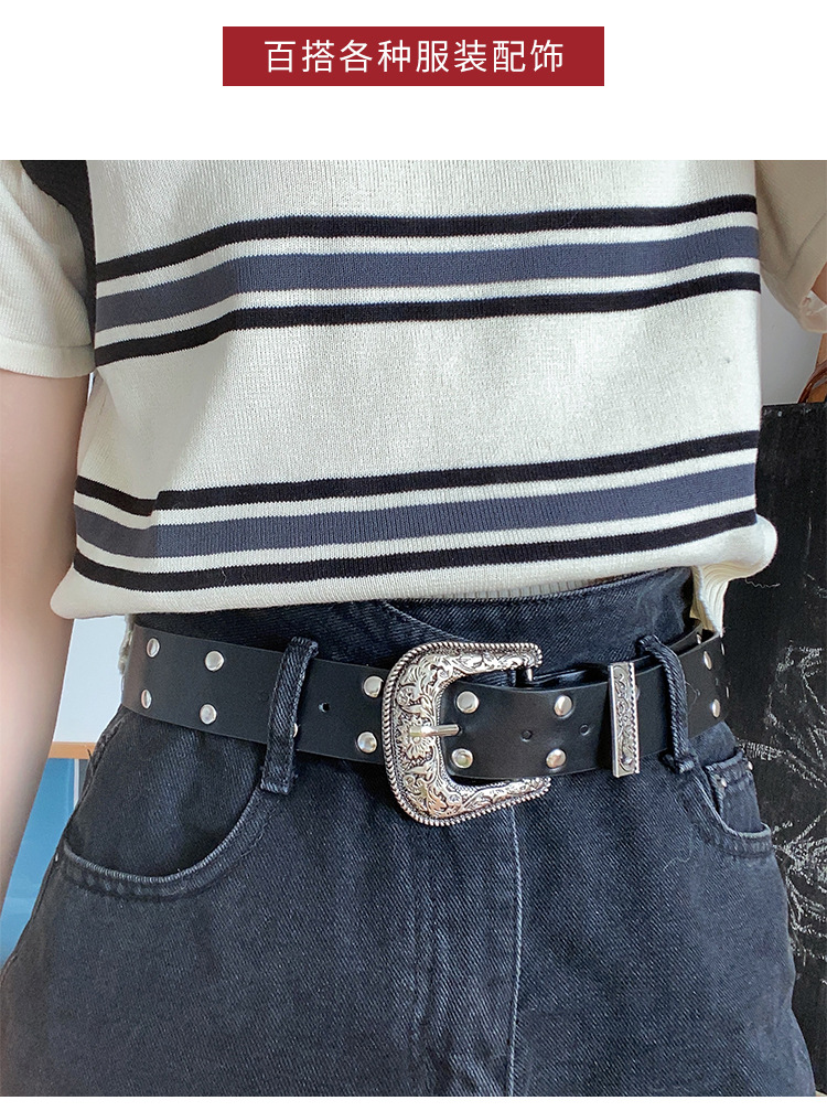 Y2K 레트로 조커 숙녀 벨트 새로운 스파이스 소녀 조각 리벳 핀 버클 패션 벨트 여성 공장 도매스토어 가기