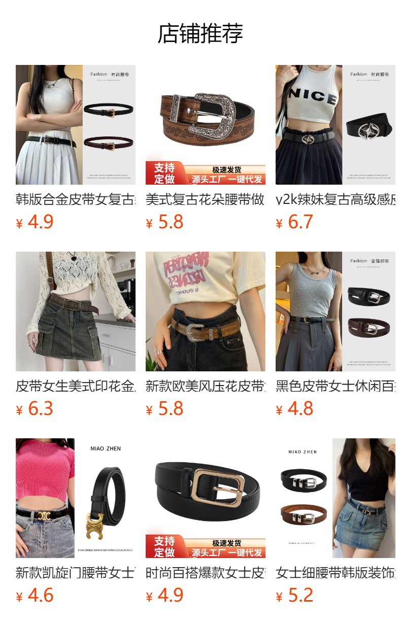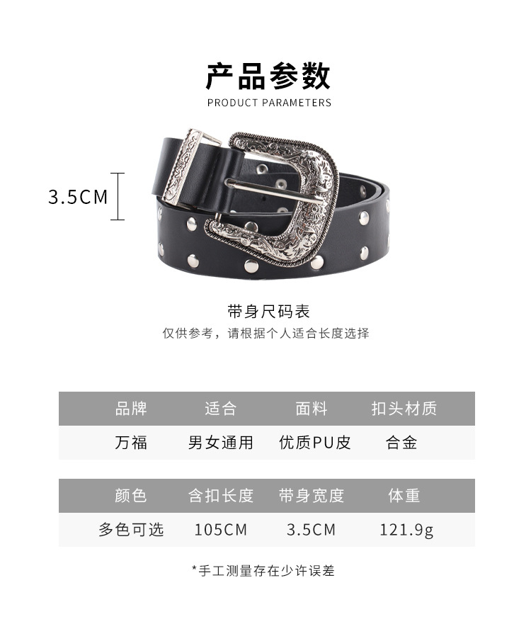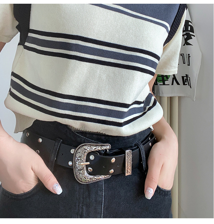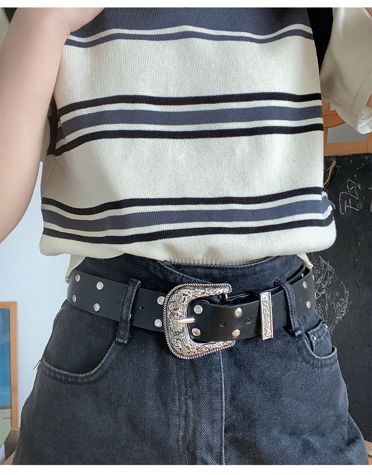 Y2K 레트로 조커 숙녀 벨트 새로운 스파이스 소녀 조각 리벳 핀 버클 패션 벨트 여성 공장 도매스토어 가기