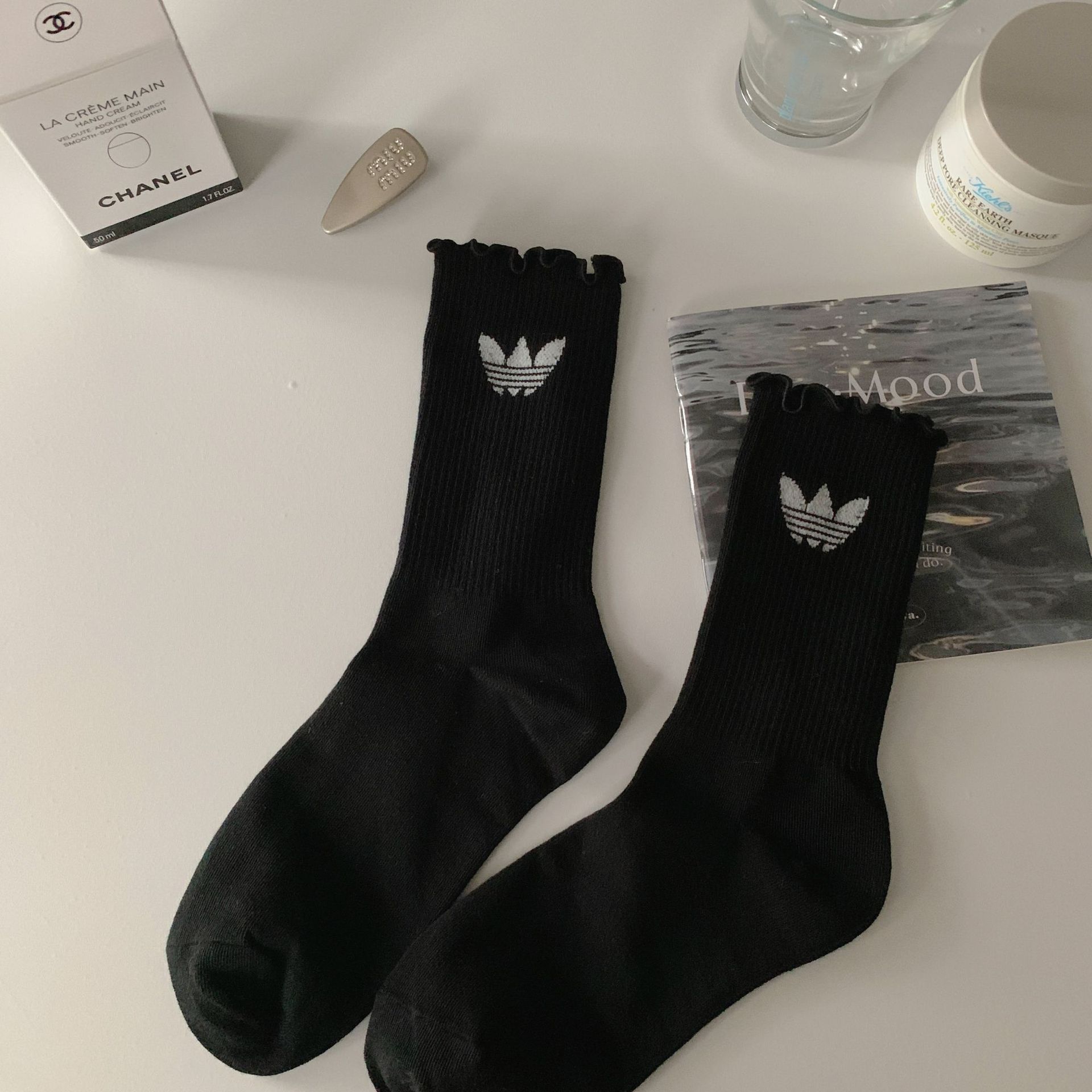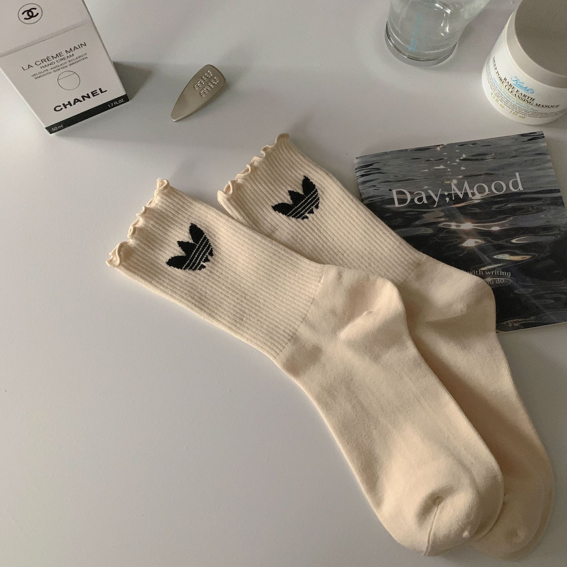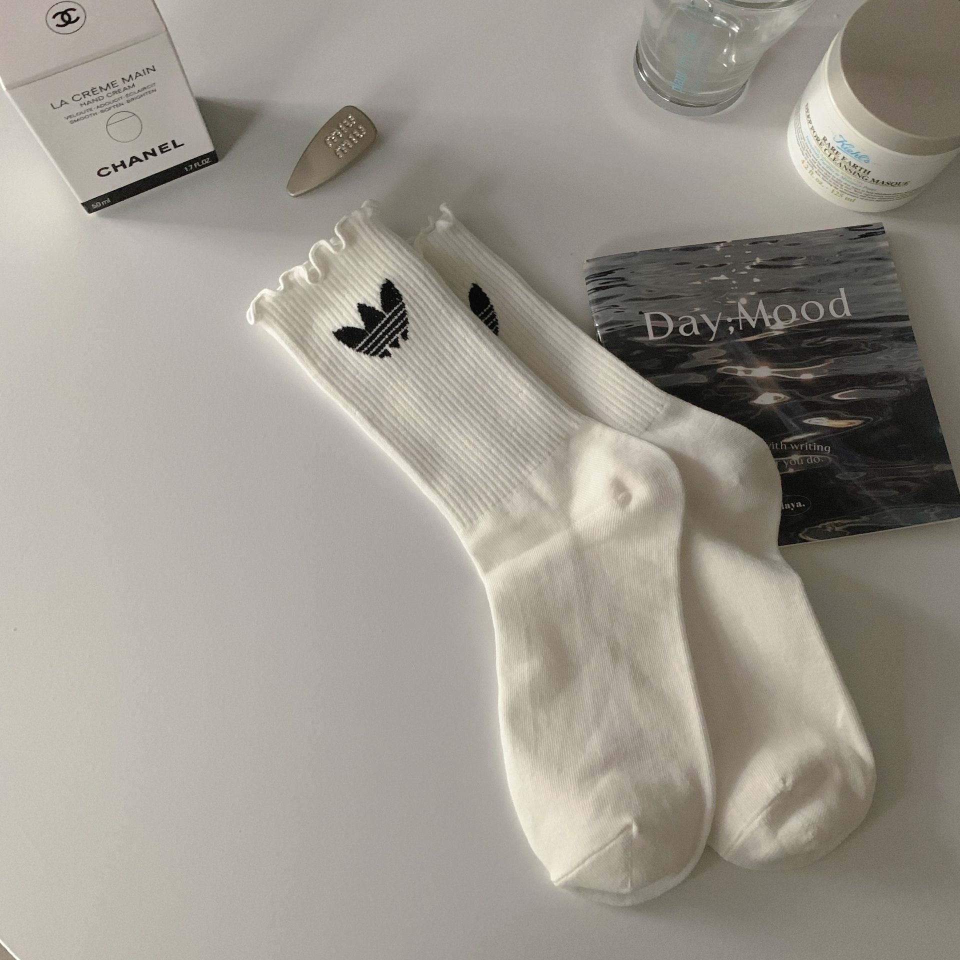 럭키 잔디 adid 양말 여자의 가을 단색 면 중간 길이 양말 유럽 패션 개인 학생 스포츠 스타킹스토어 가기