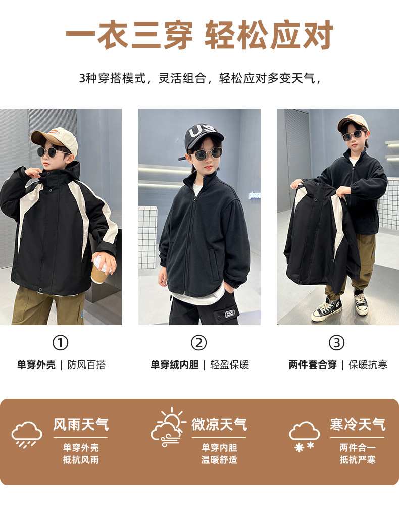 남아용 가을 겨울 3-in-1 재킷, 큰 아이들을 위한 방풍 방수 겨울 재킷, 어린이 겨울 탈부착 가능한 코트, 트렌디한 디자인