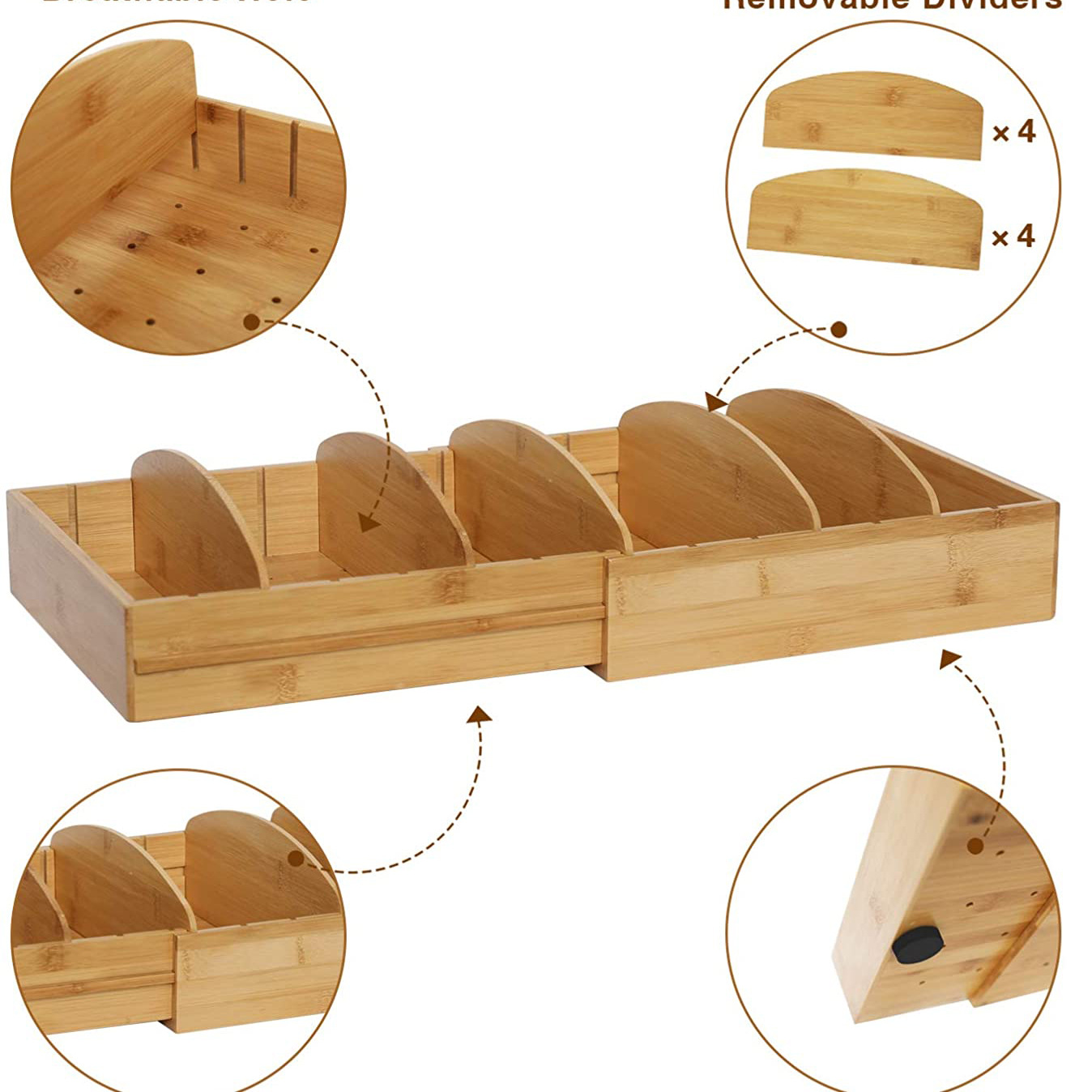 나무 개폐식 주방 식기 보관함 서랍 파티션 맞춤 상자 대나무 나무 칼 및 포크 젓가락 보관