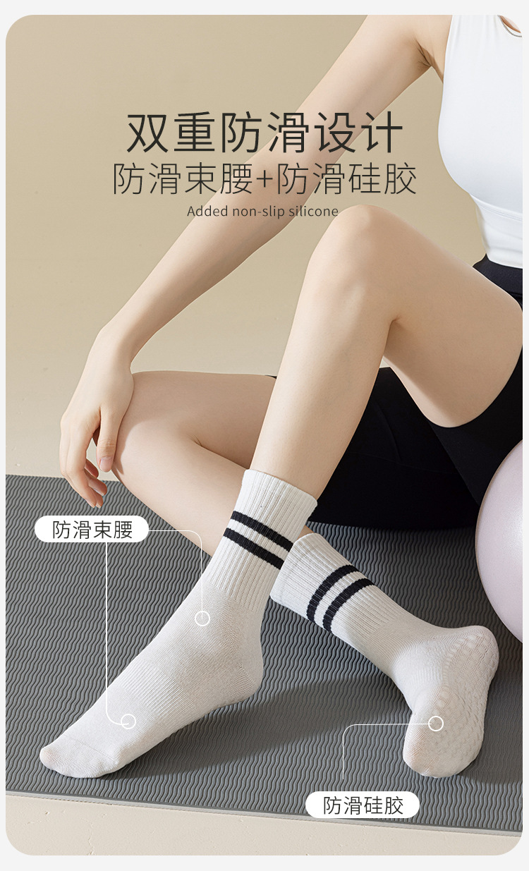 여성용 실리콘 밑창 요가 양말, 미끄럼 방지 실리콘 밑창 스포츠 및 피트니스 가공 긴 양말, 제조업체 도매스토어 가기