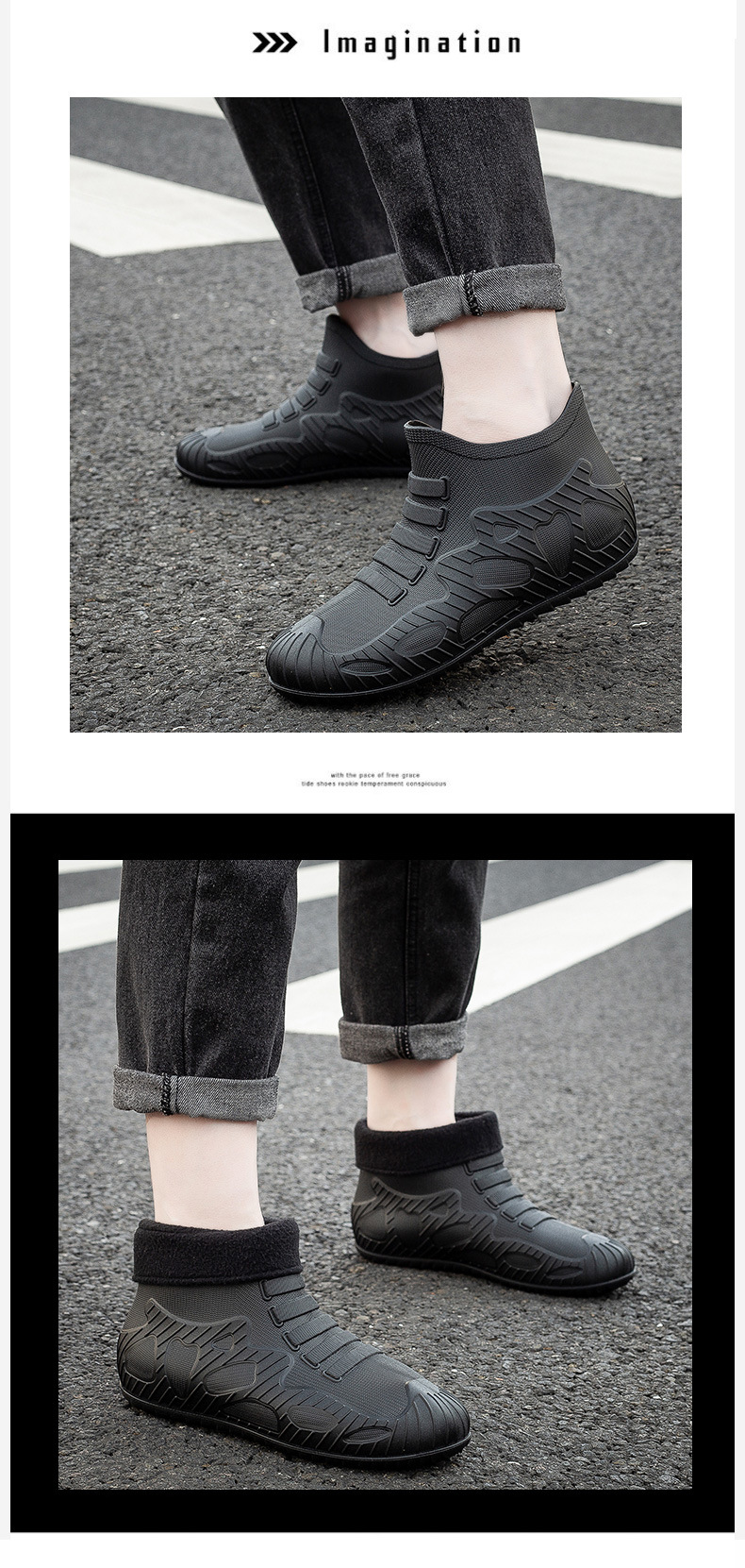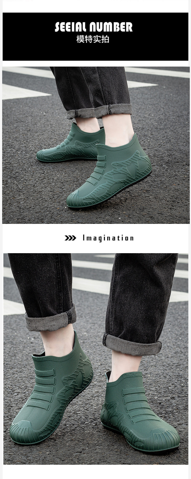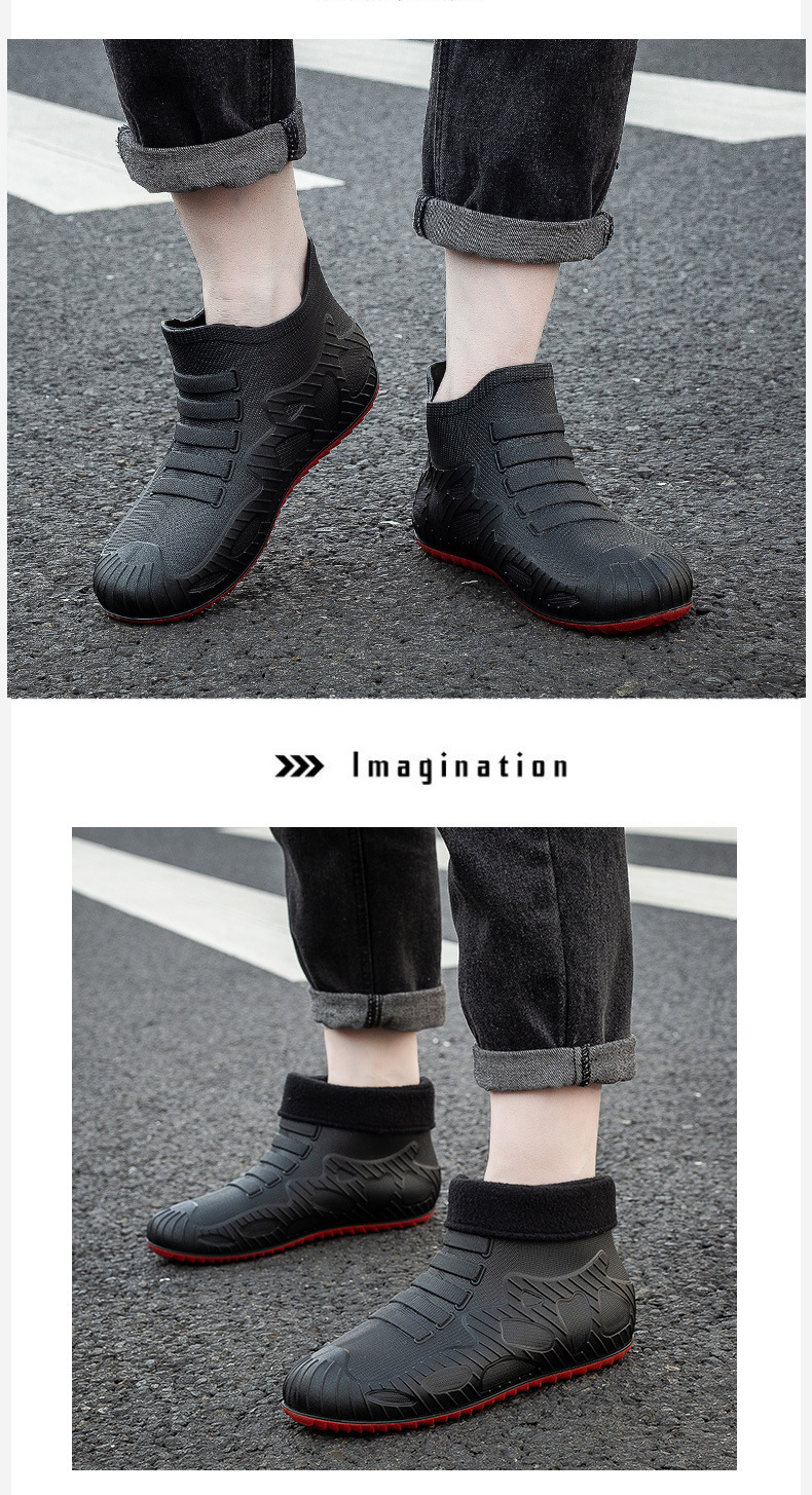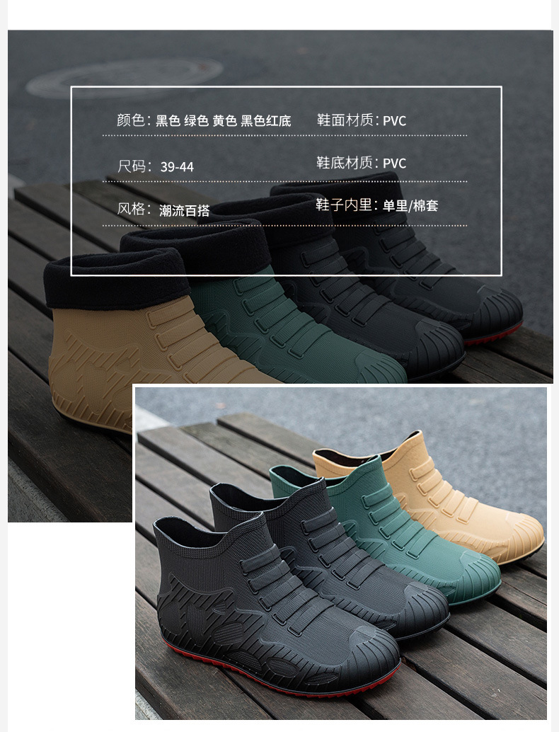 새로운 남자의 비 신발 방수 신발 미끄럼 방지 장화 짧은 배럴 한국 스타일 패션 사이버 연예인 발 고무 신발 내마모성 국경 간 대외 무역