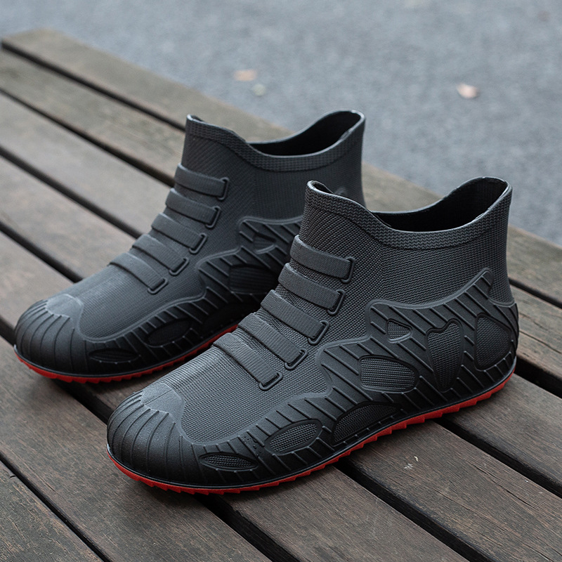 새로운 남자의 비 신발 방수 신발 미끄럼 방지 장화 짧은 배럴 한국 스타일 패션 사이버 연예인 발 고무 신발 내마모성 국경 간 대외 무역스토어 가기