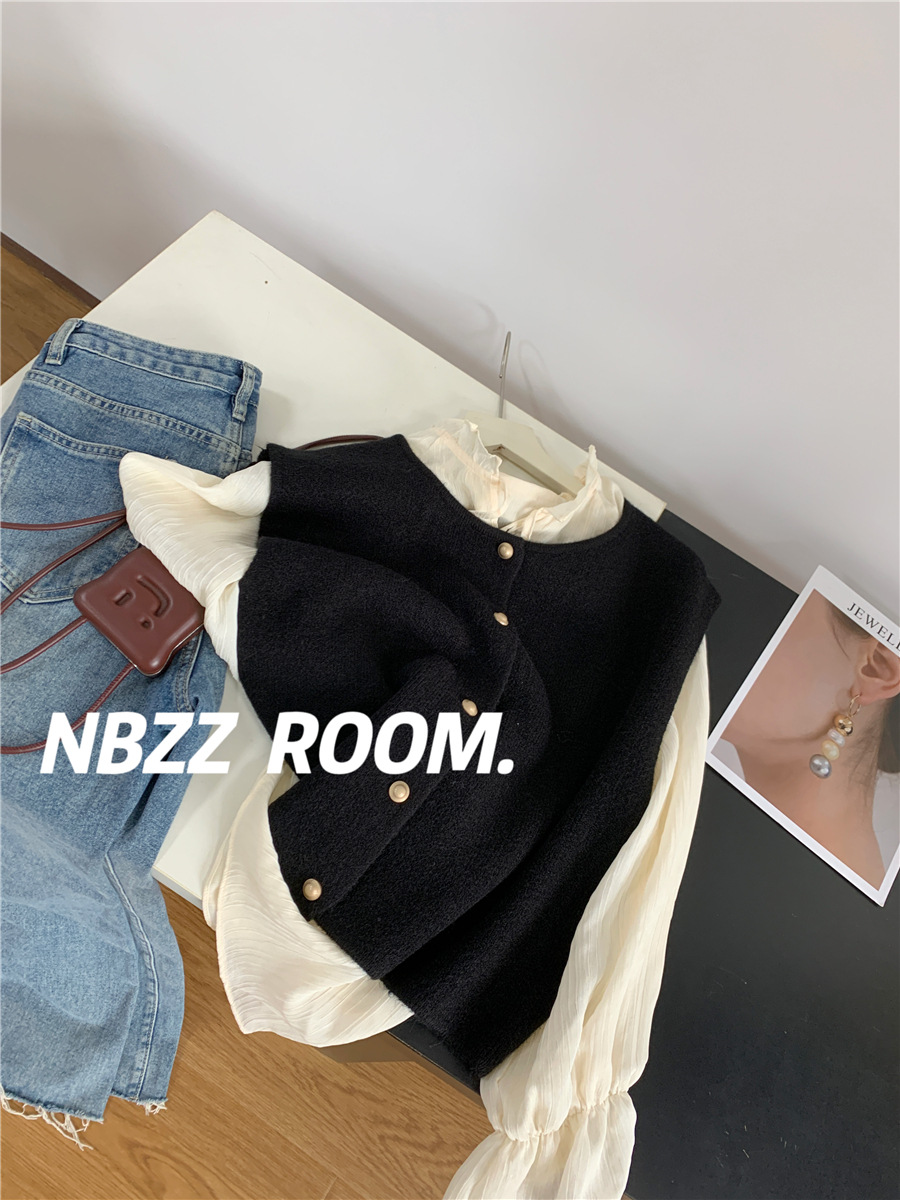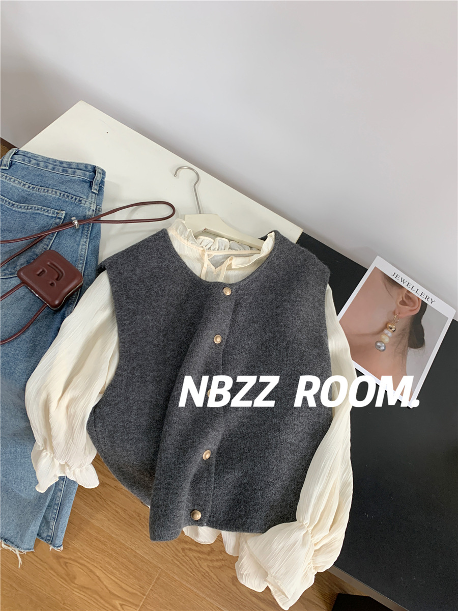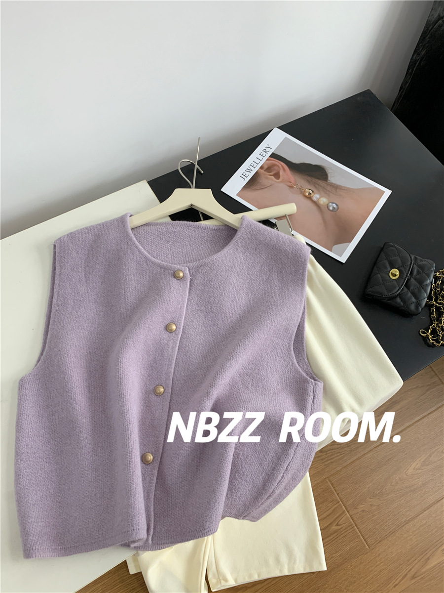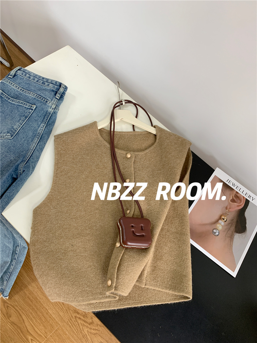 5 버튼 올매치 슬림핏 니트 조끼 조끼 여성용 2023 초가을 루즈한 캐주얼 스택 조끼 스웨터 가디건