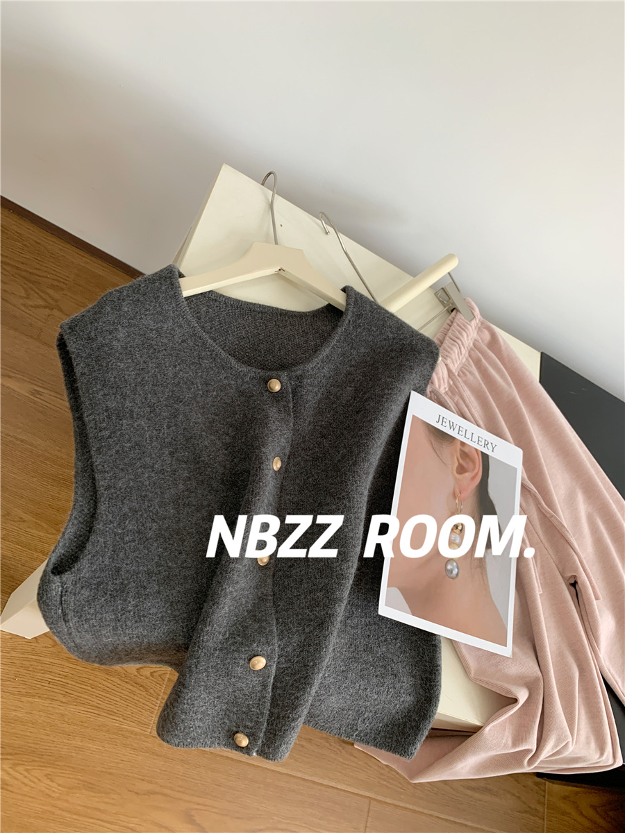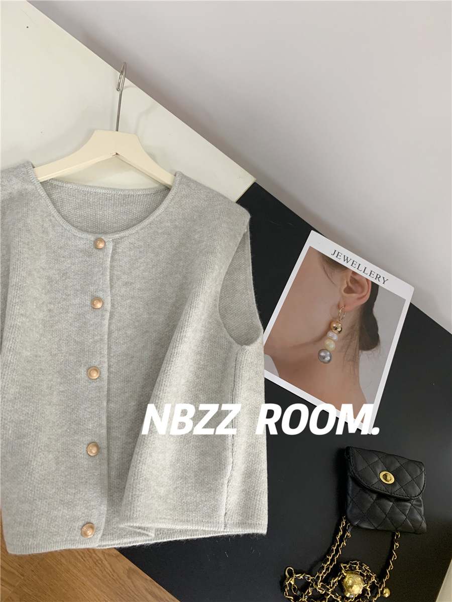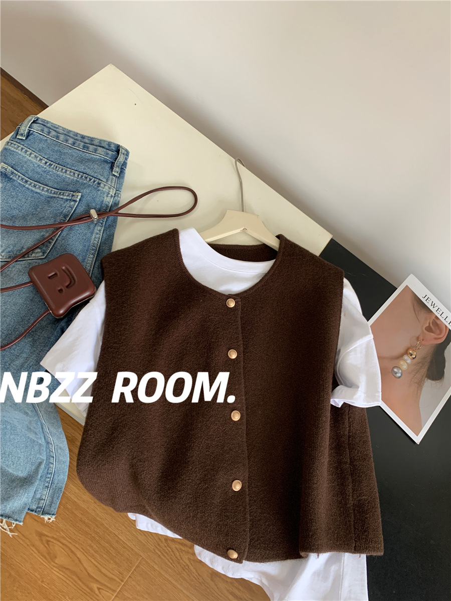 5 버튼 올매치 슬림핏 니트 조끼 조끼 여성용 2023 초가을 루즈한 캐주얼 스택 조끼 스웨터 가디건스토어 가기