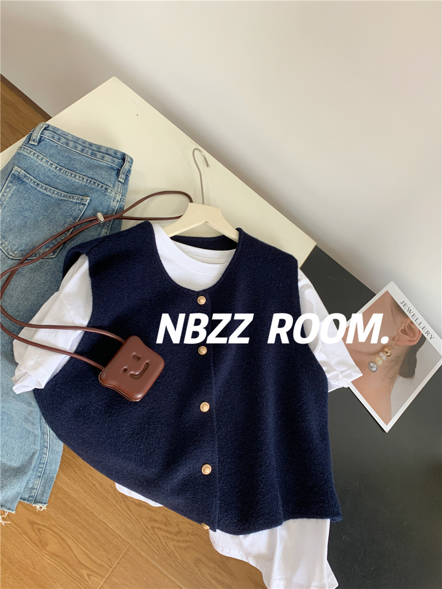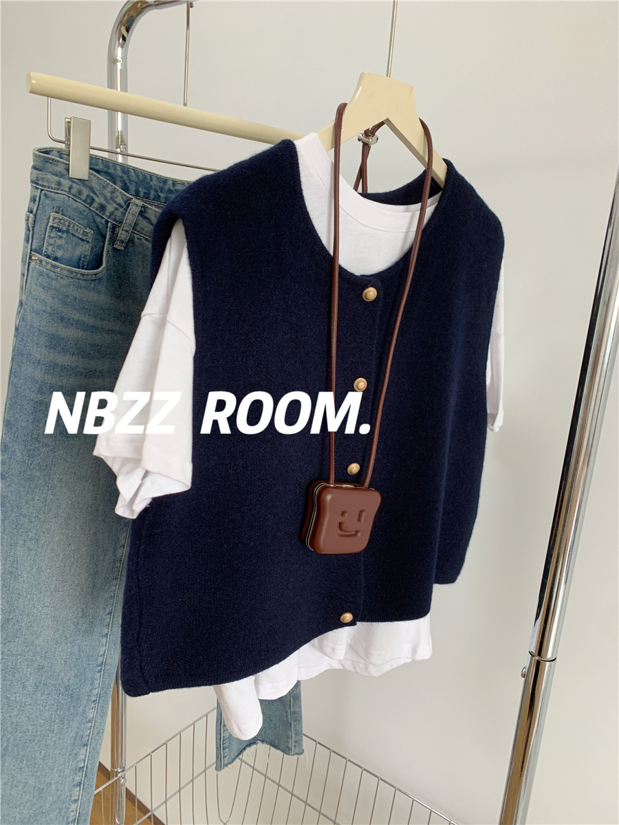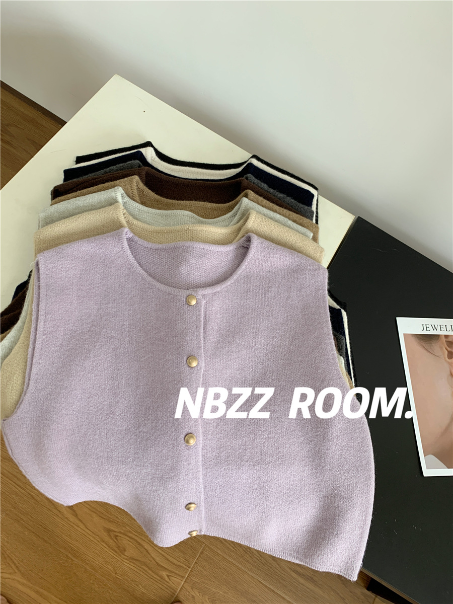 5 버튼 올매치 슬림핏 니트 조끼 조끼 여성용 2023 초가을 루즈한 캐주얼 스택 조끼 스웨터 가디건스토어 가기