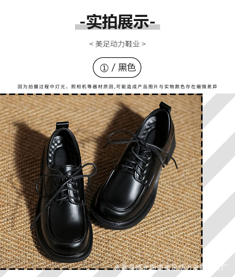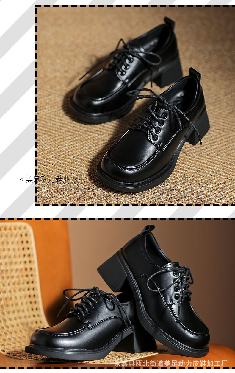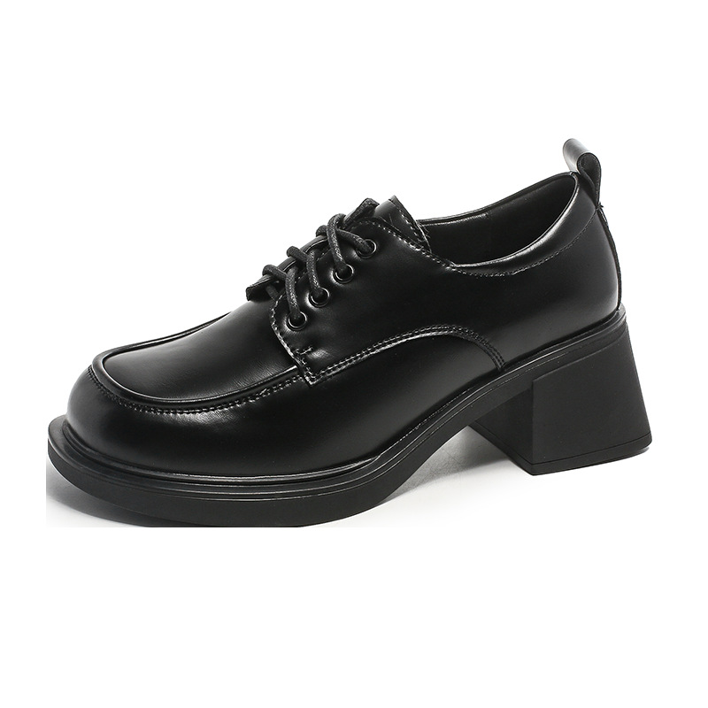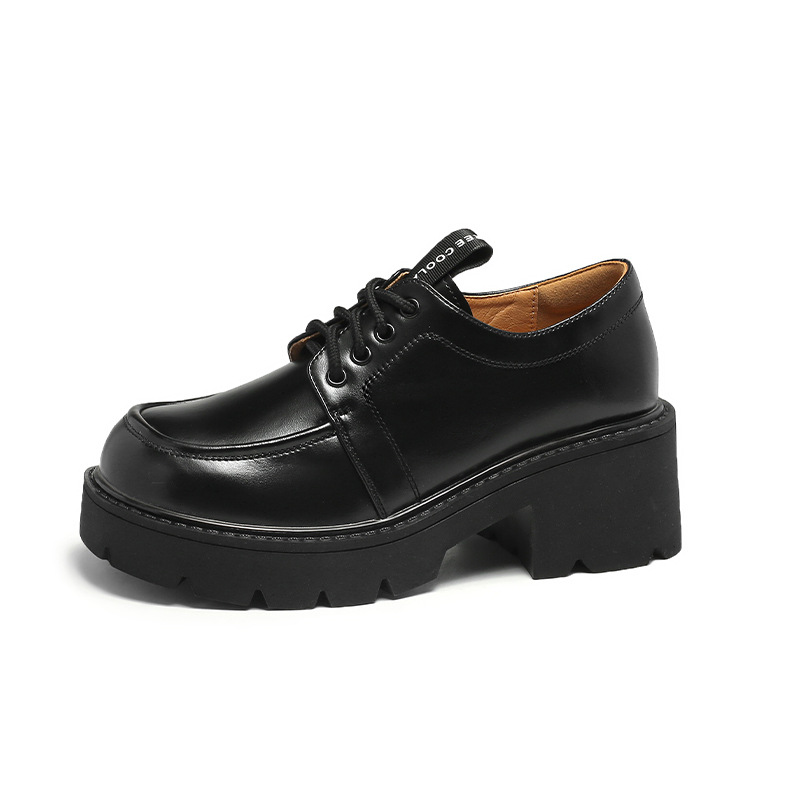 아메리칸 풋 파워 영국 스타일 블랙 가죽 신발 여성용 2023 가을 새로운 레이스 업 청키 힐 로퍼 jk 유니폼 신발스토어 가기