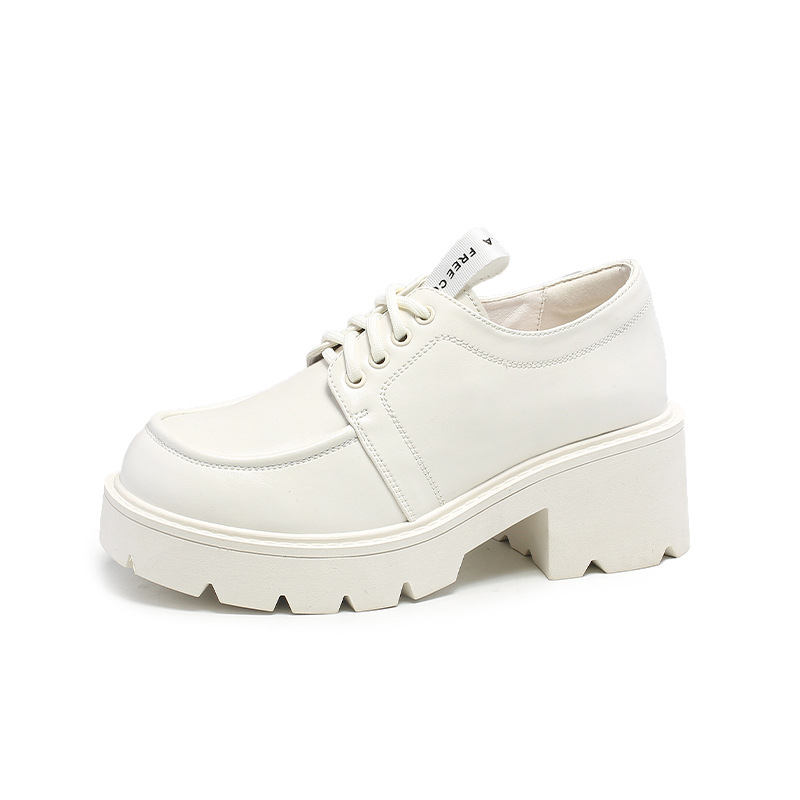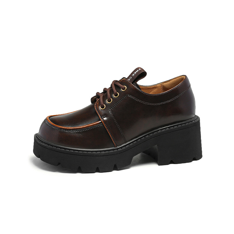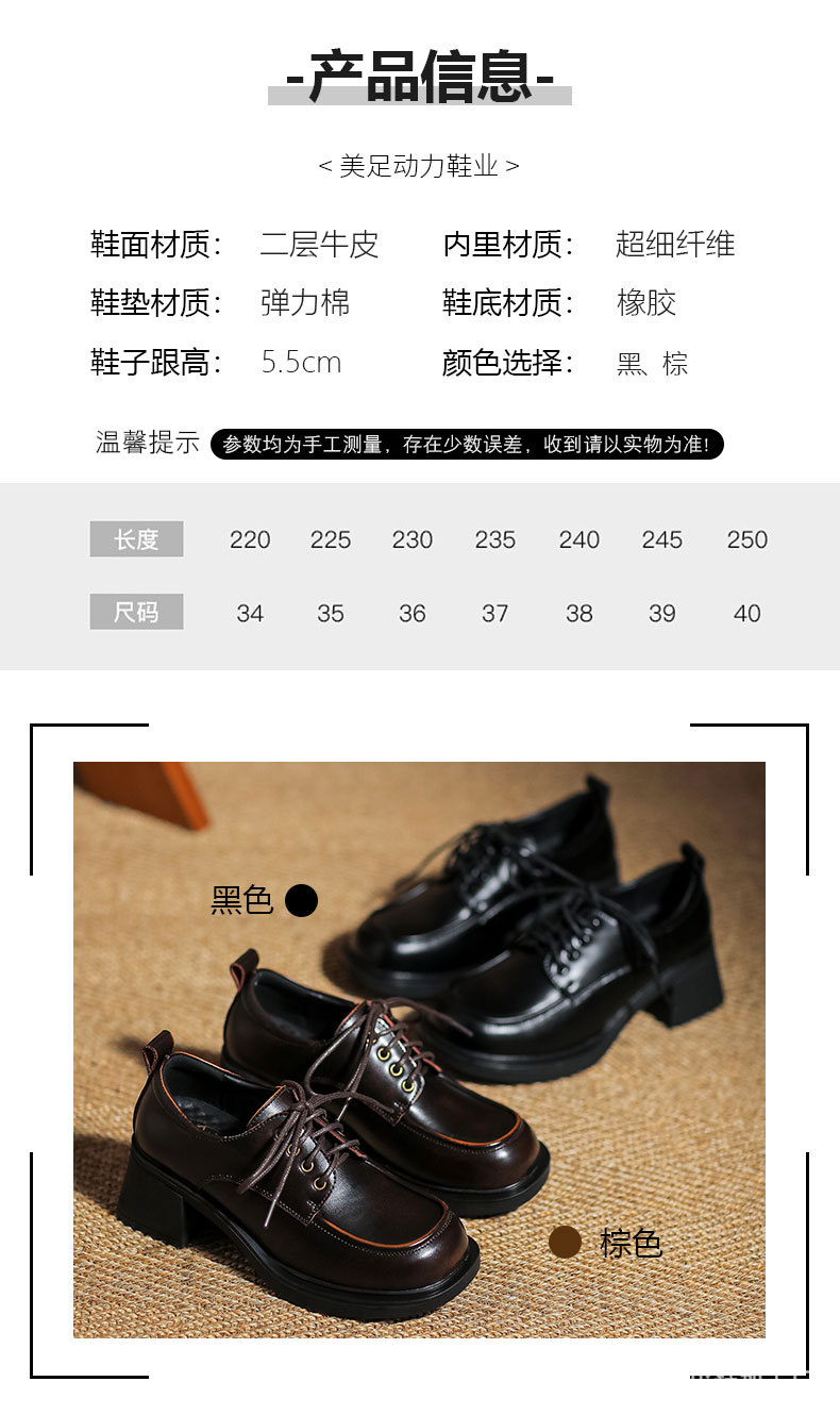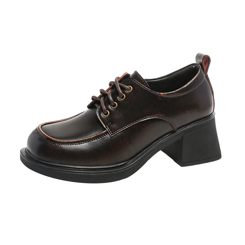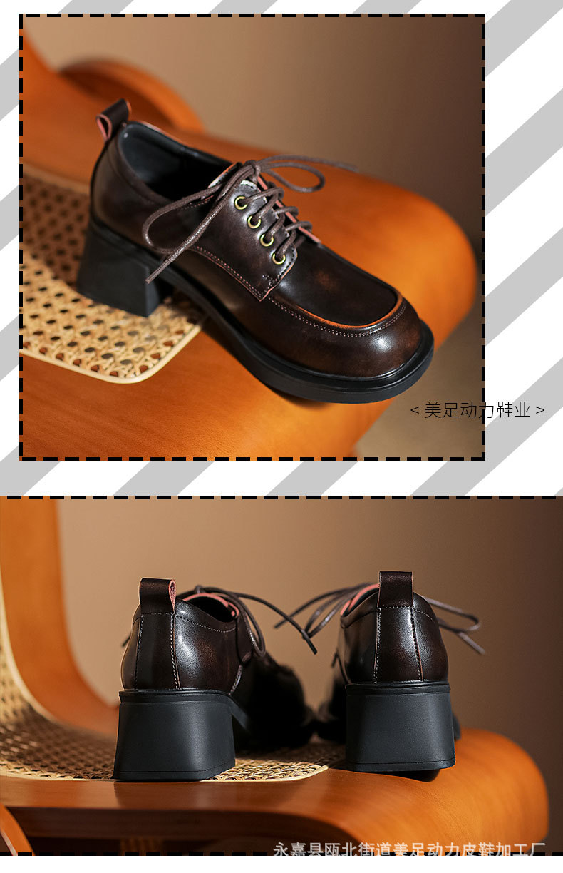 아메리칸 풋 파워 영국 스타일 블랙 가죽 신발 여성용 2023 가을 새로운 레이스 업 청키 힐 로퍼 jk 유니폼 신발스토어 가기