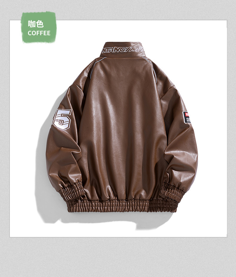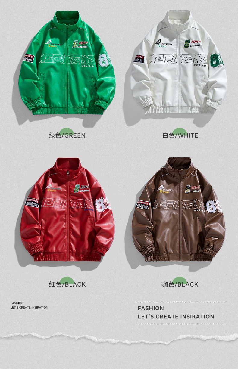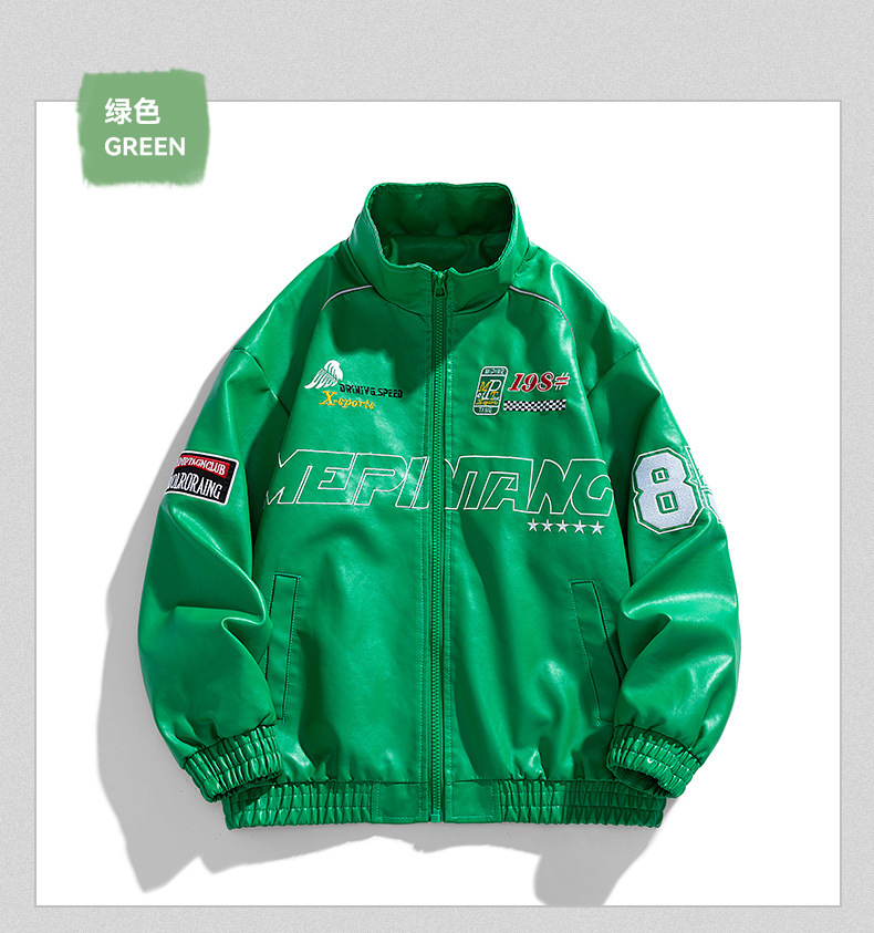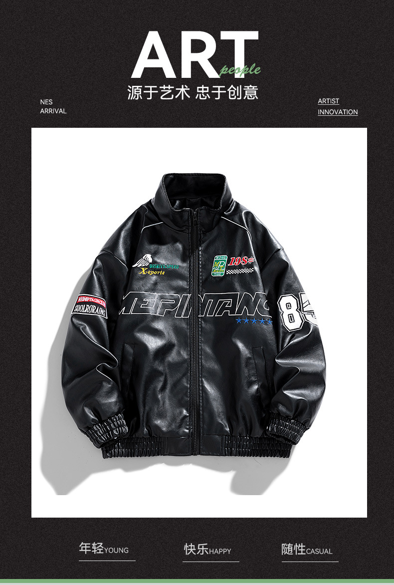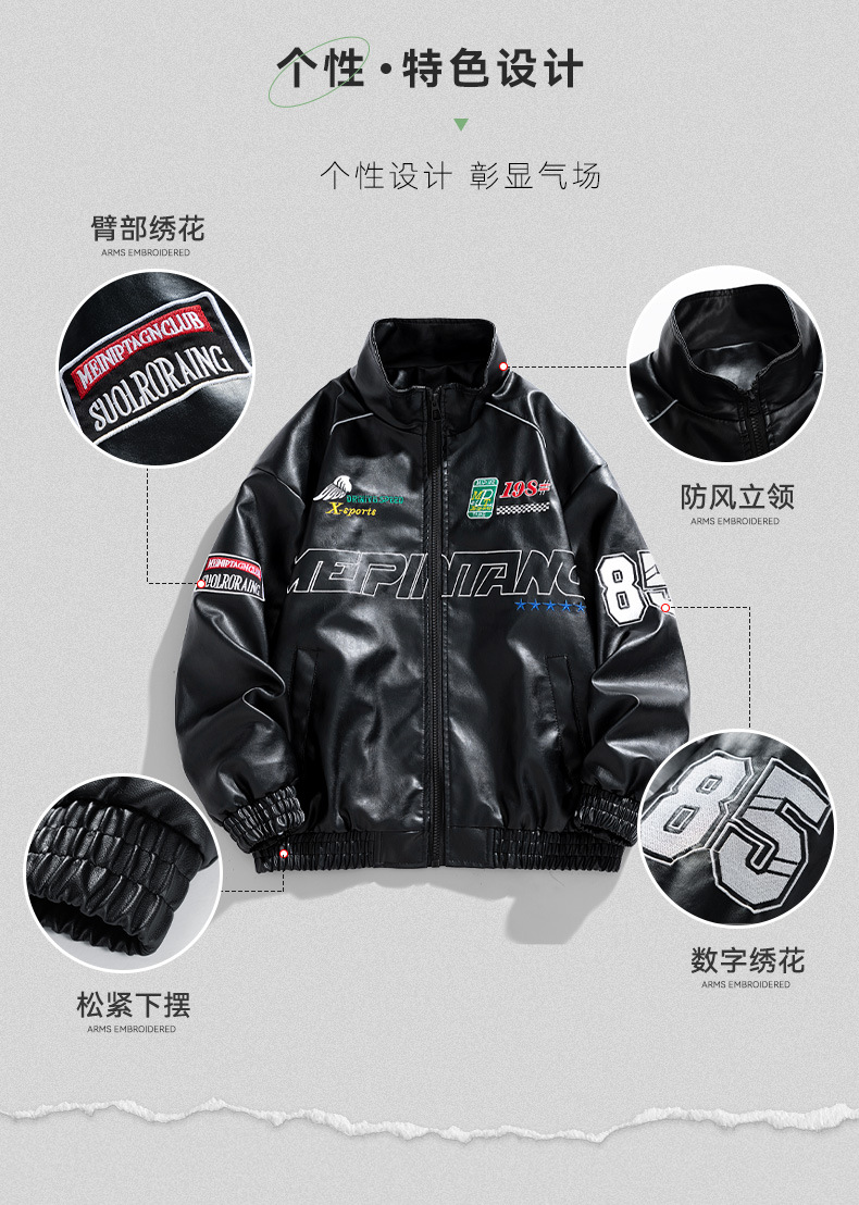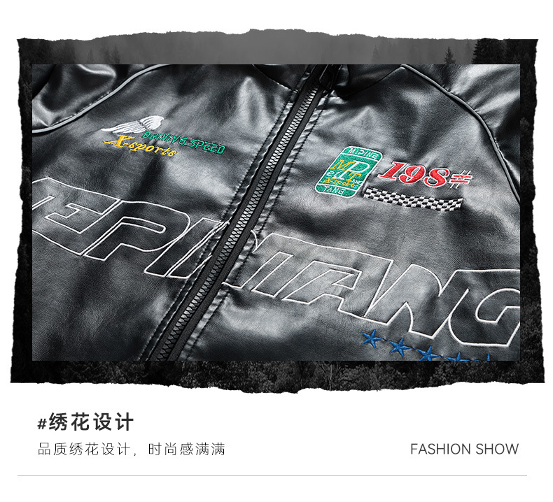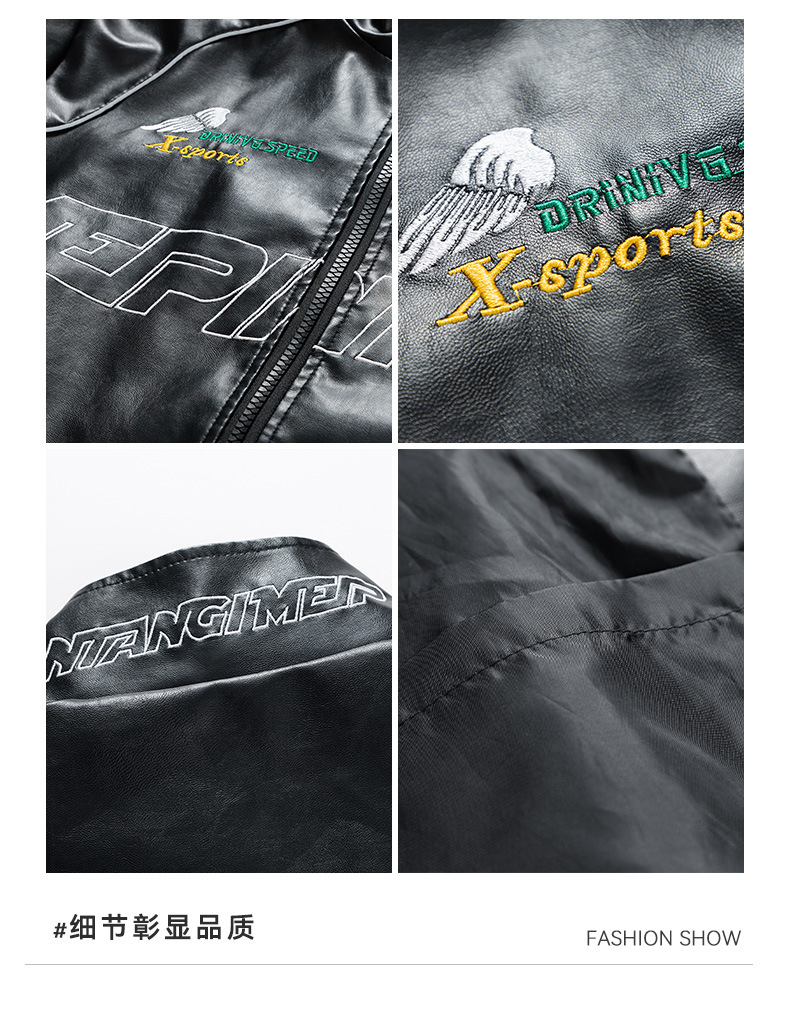 남성 가죽 자켓 2024 신상 가을 스타일 스탠드 칼라 바이커 자켓 PU 가죽 자켓 한국 스타일 트렌디 자수 캐주얼 자켓 트렌디 브랜드스토어 가기