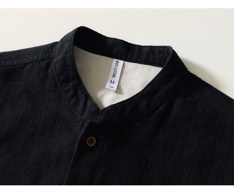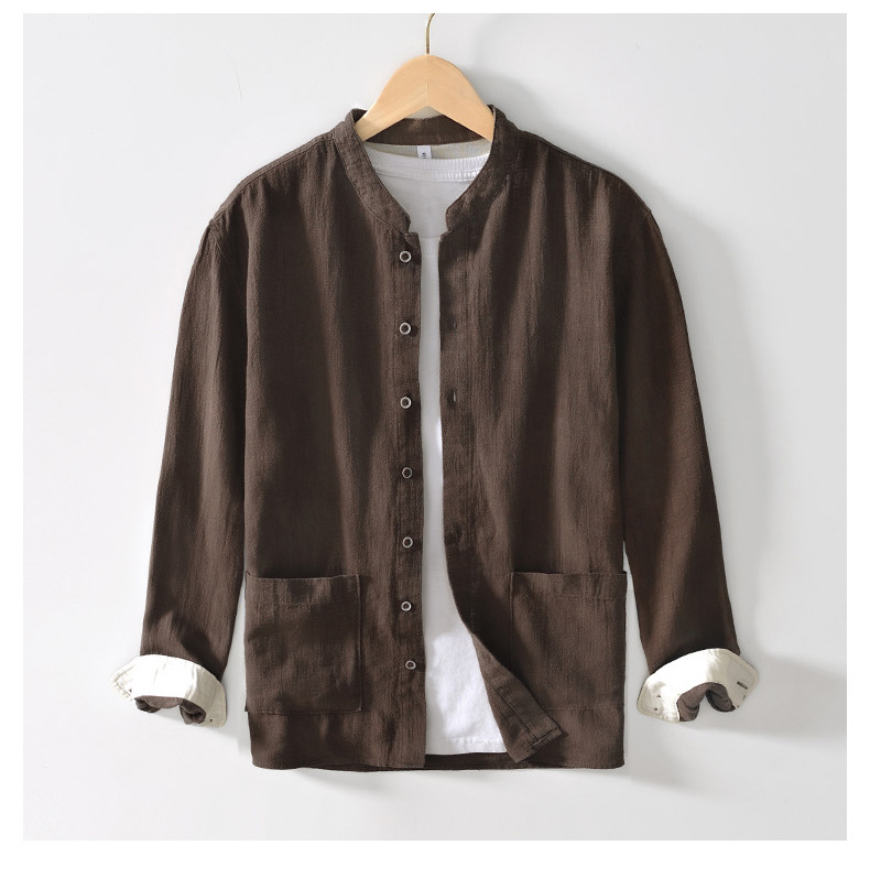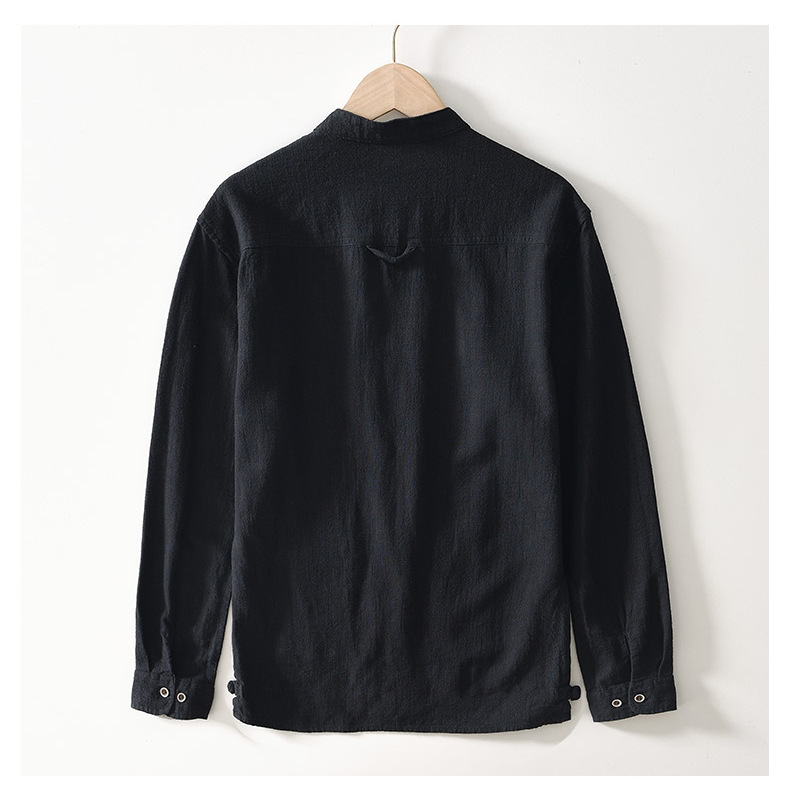 L083 중국 스탠드 칼라 라미 긴 소매 셔츠 통기성 린넨 캐주얼 중국 스타일 셔츠 남성 머리카락의 세대