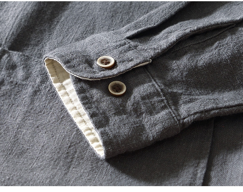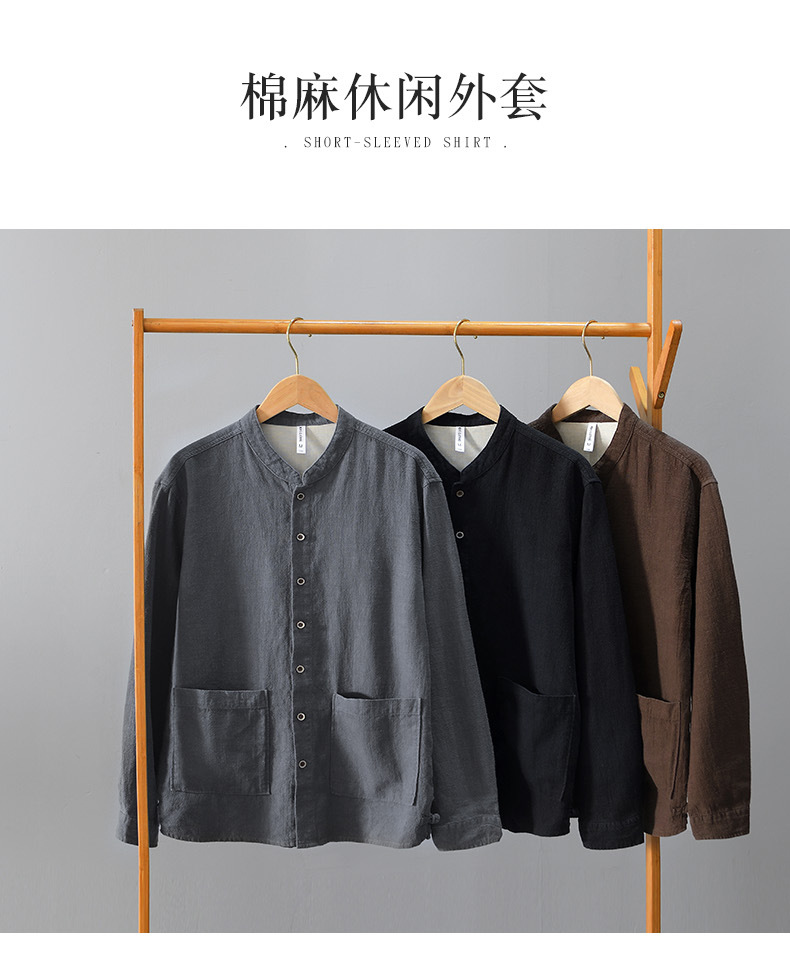 L083 중국 스탠드 칼라 라미 긴 소매 셔츠 통기성 린넨 캐주얼 중국 스타일 셔츠 남성 머리카락의 세대스토어 가기