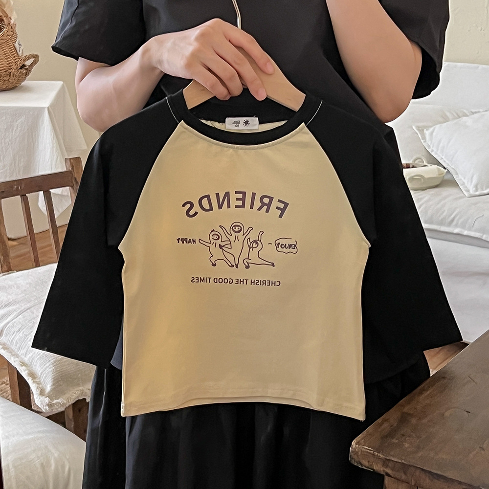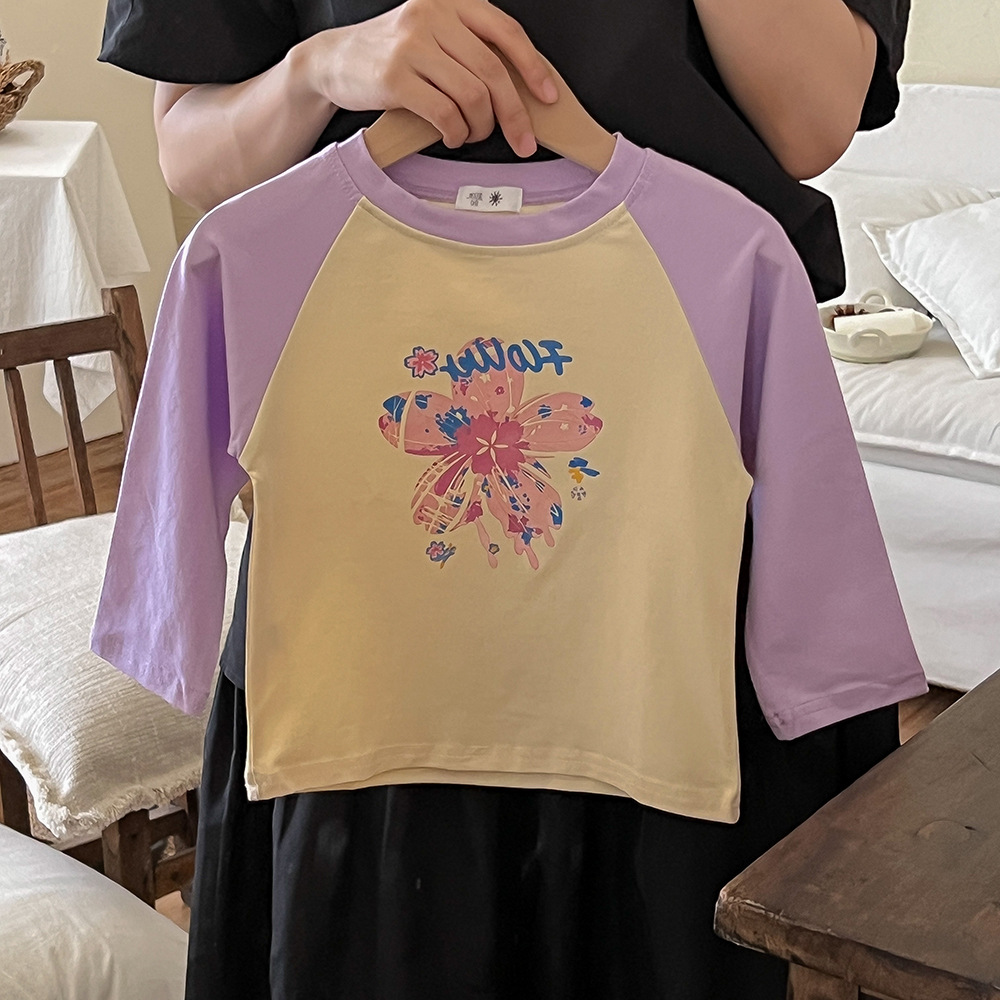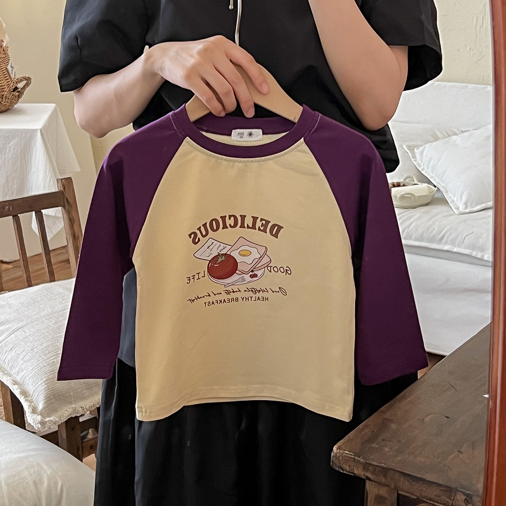 봄과 가을 어린이 티셔츠 만화 귀여운 소년 소녀 색상 일치 순면 긴 소매 탑 귀여운 모든 일치 서양 스타일 바닥스토어 가기