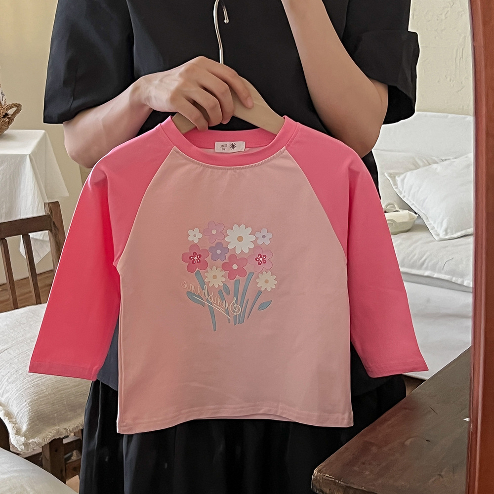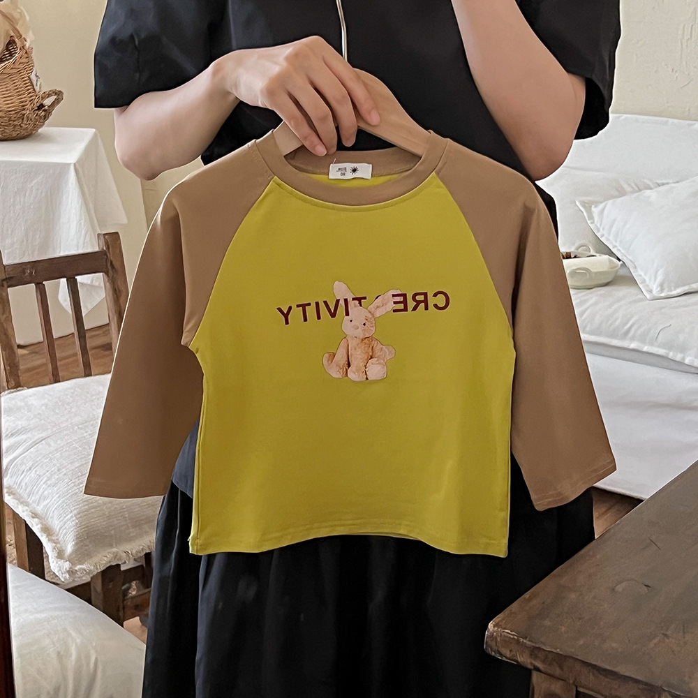 봄과 가을 어린이 티셔츠 만화 귀여운 소년 소녀 색상 일치 순면 긴 소매 탑 귀여운 모든 일치 서양 스타일 바닥