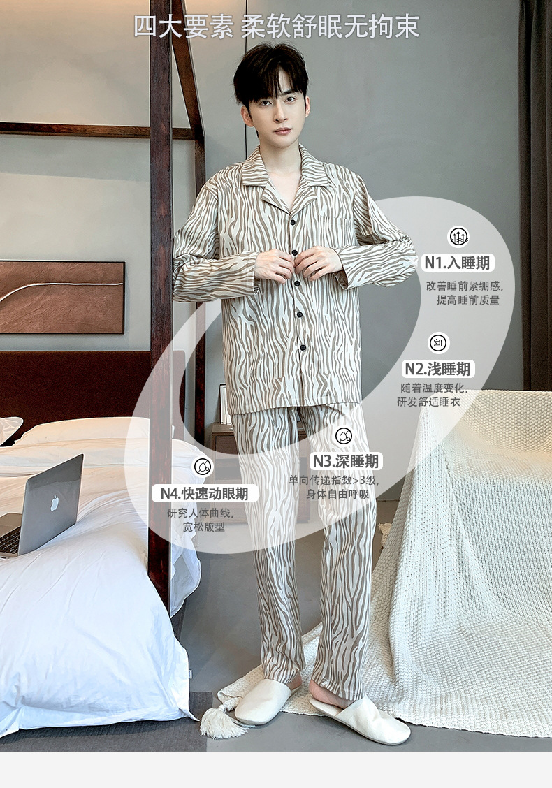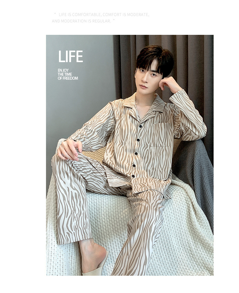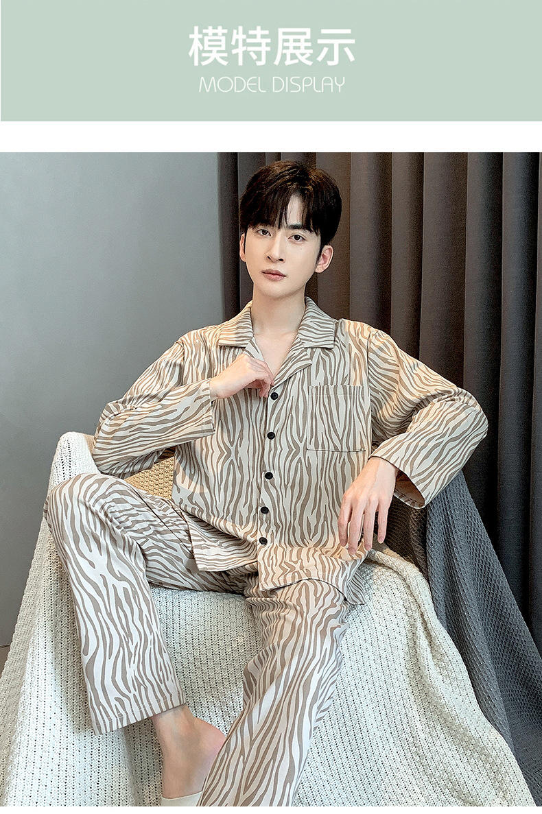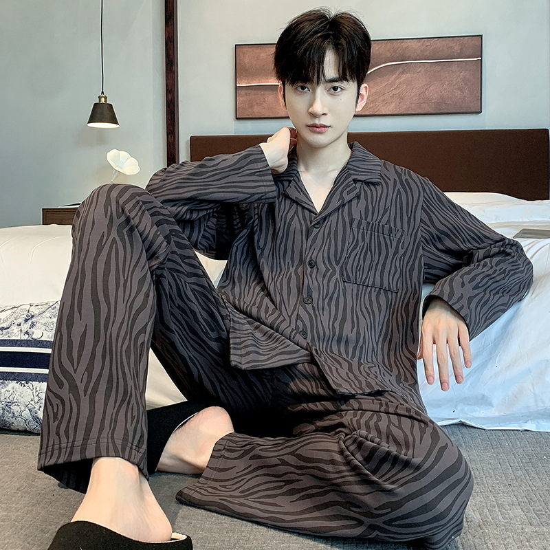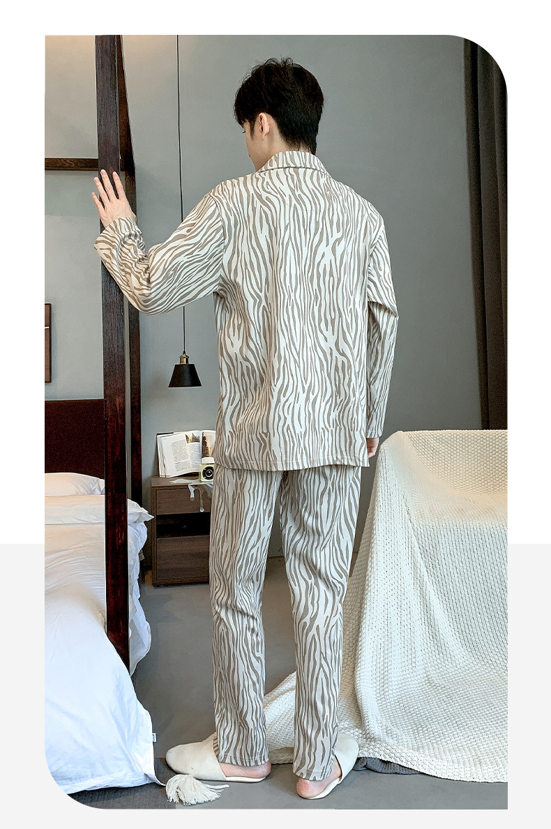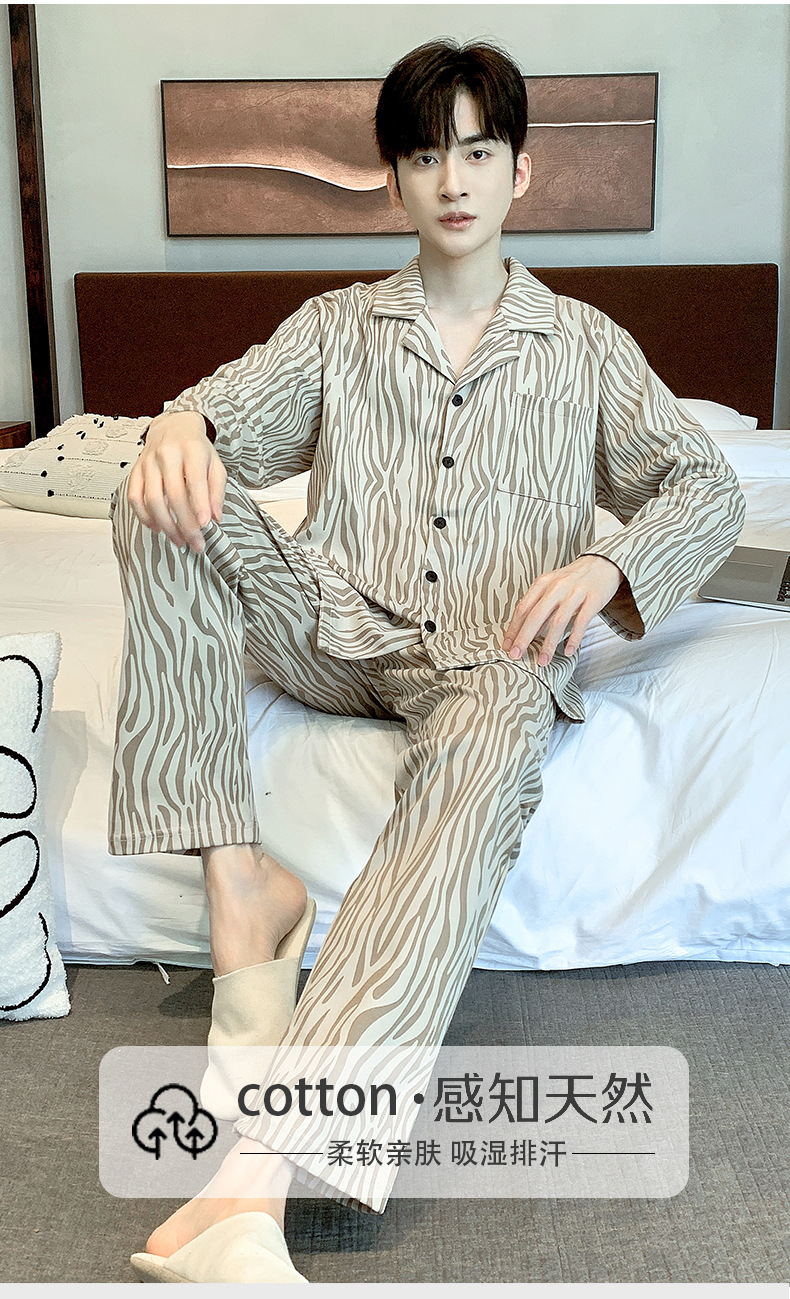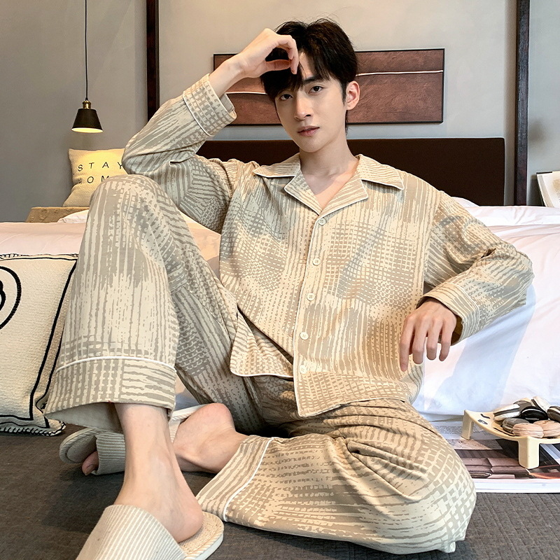 라이브 워킹 사이즈 남자의 잠옷 순면 간단한 봄과 가을 긴 소매 바지 순면 겉옷을 입고 세트스토어 가기