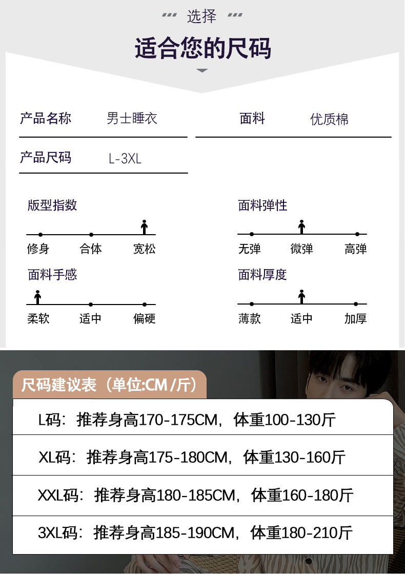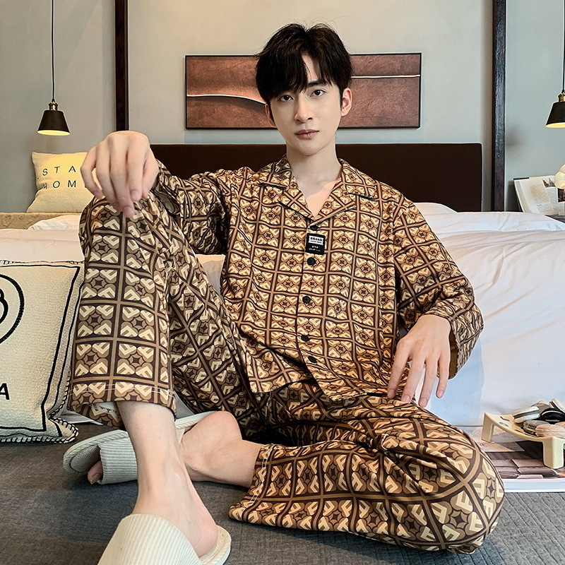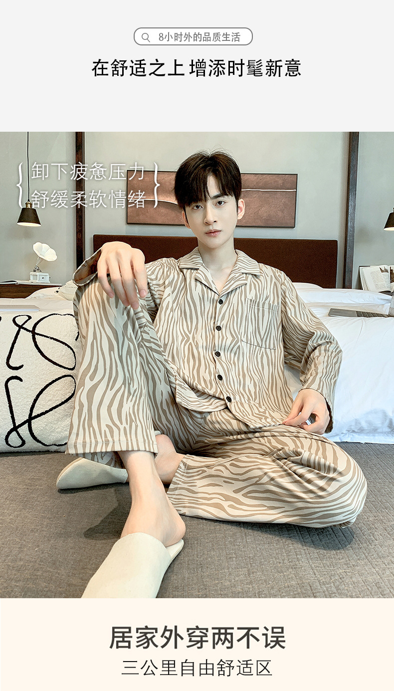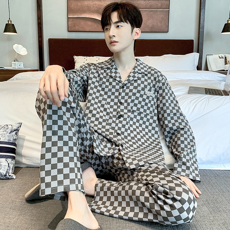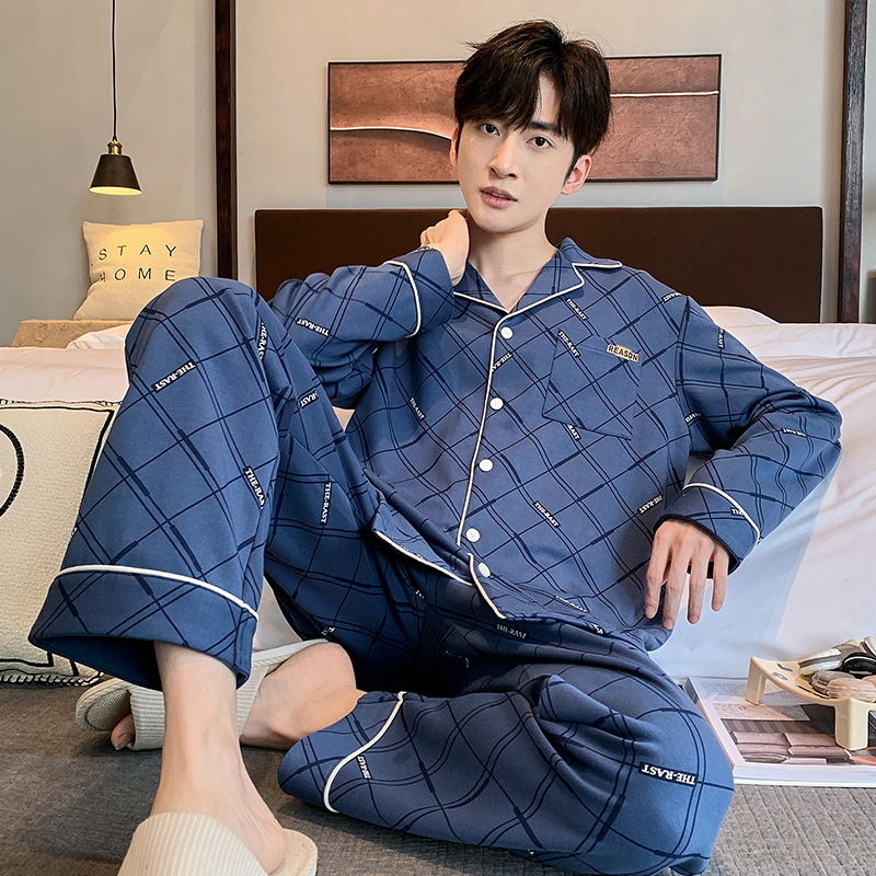 라이브 워킹 사이즈 남자의 잠옷 순면 간단한 봄과 가을 긴 소매 바지 순면 겉옷을 입고 세트