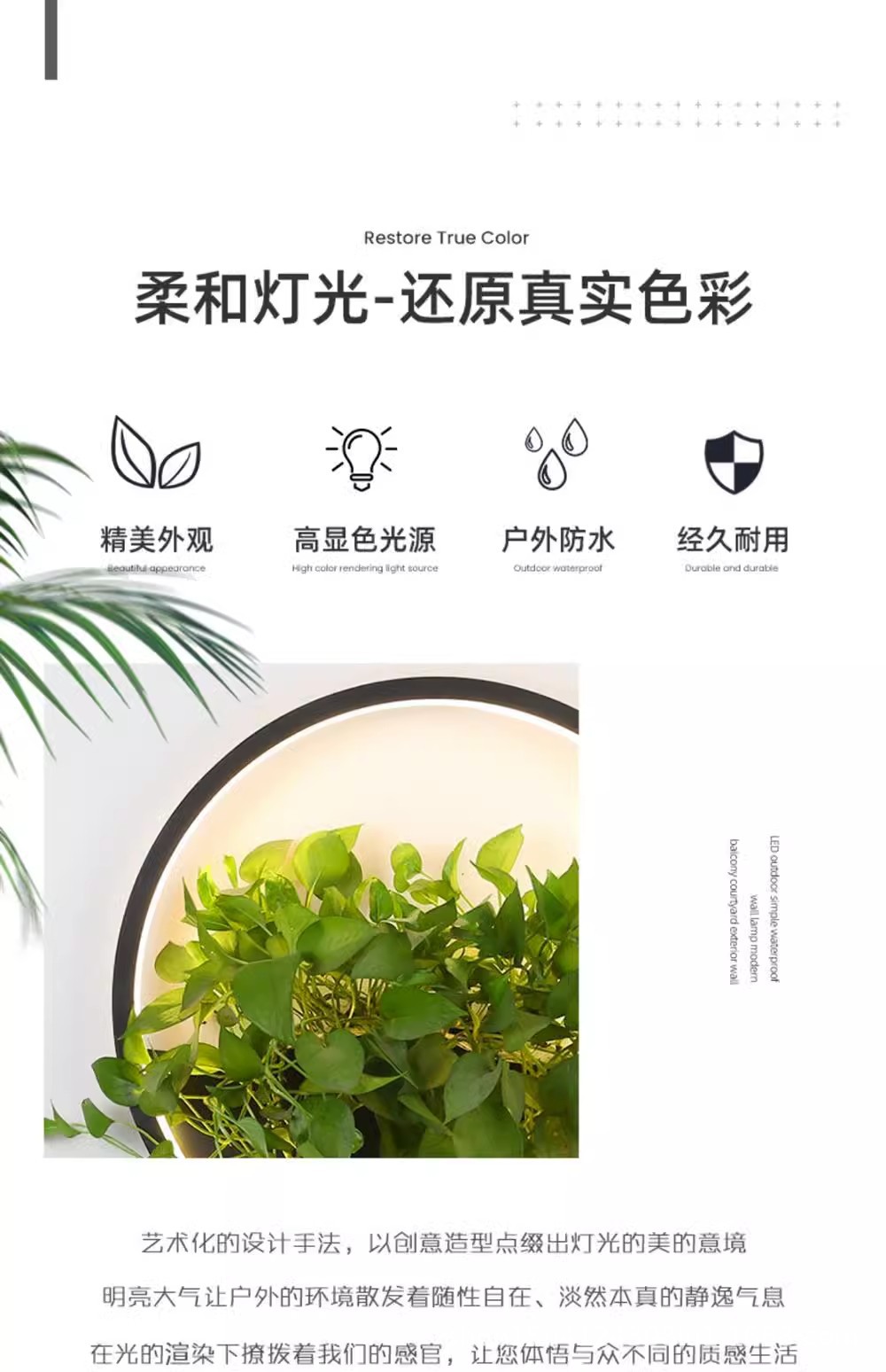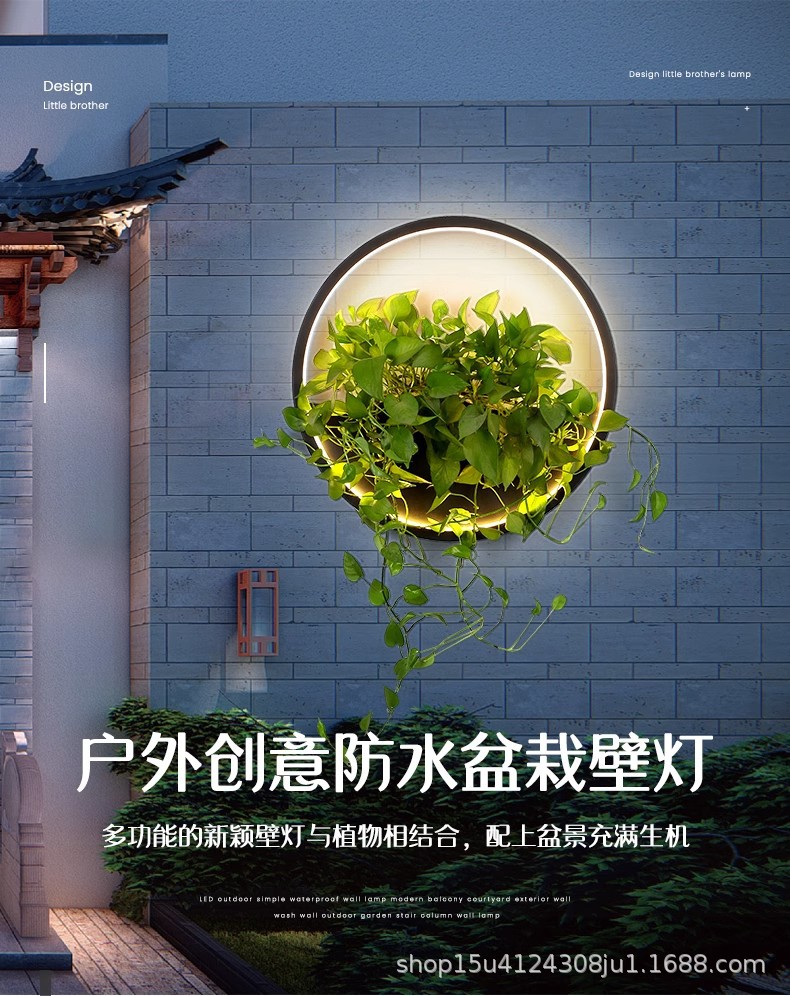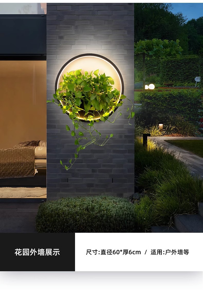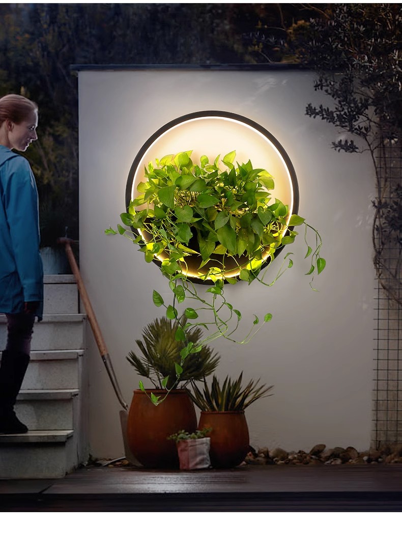 야외 방수 공장 벽 램프 롤랜드 녹색 식물 램프 배경 벽 정원 조경 호텔 빌라 안뜰 벽 장식