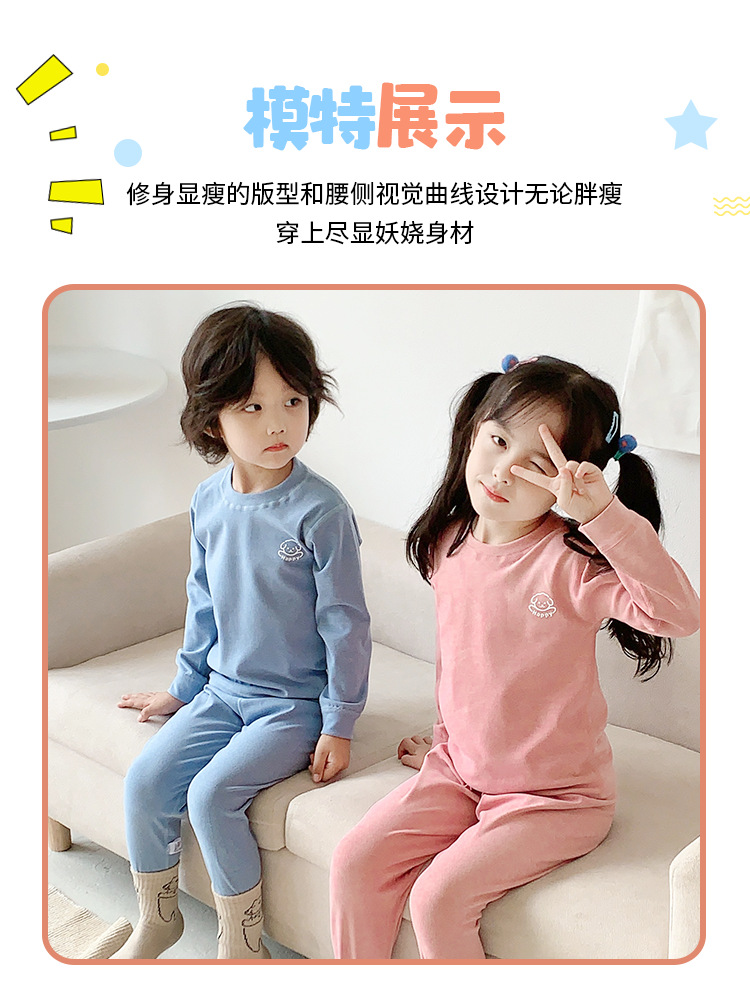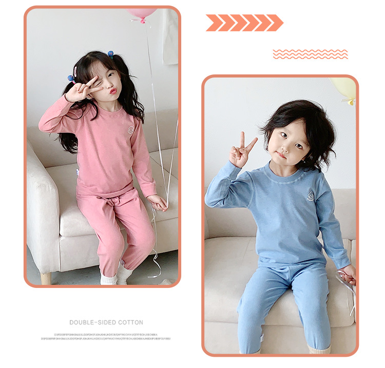 어린이 가을 옷과 바지 세트 아기 속옷 가을과 겨울 남성과 여성의 큰 어린이 뼈없는 두꺼운 기본 셔츠 홈