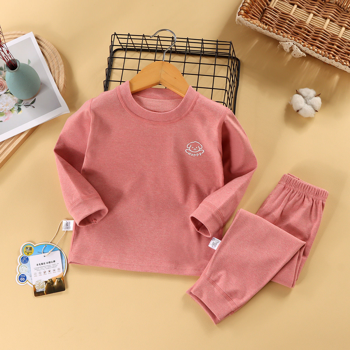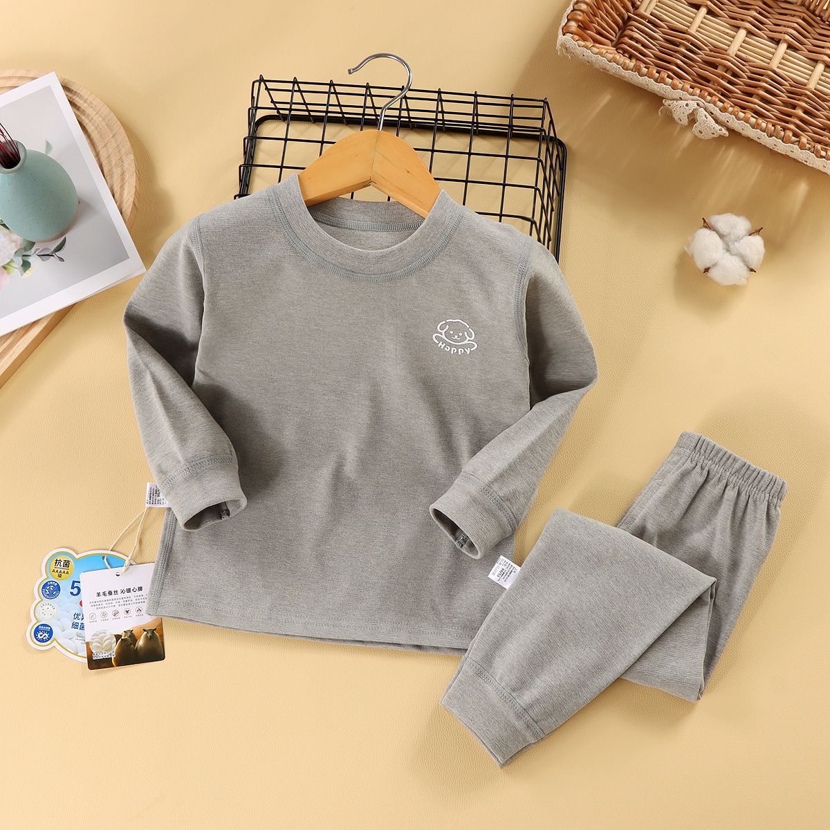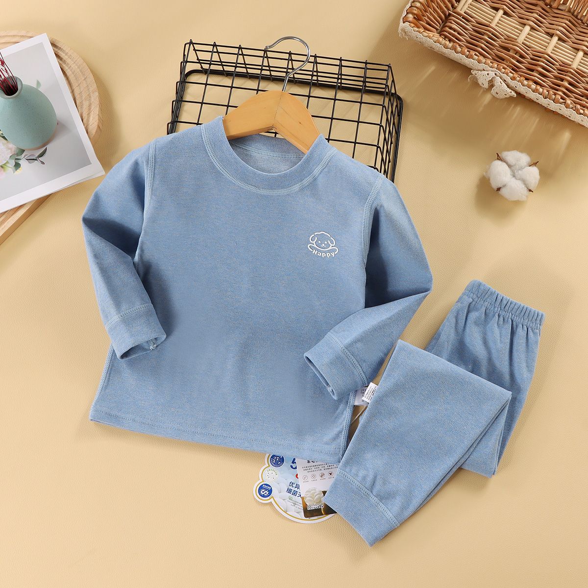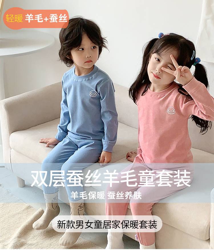 어린이 가을 옷과 바지 세트 아기 속옷 가을과 겨울 남성과 여성의 큰 어린이 뼈없는 두꺼운 기본 셔츠 홈스토어 가기