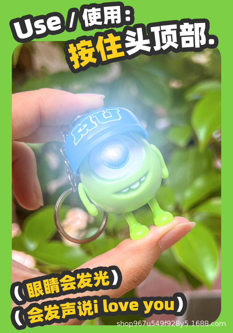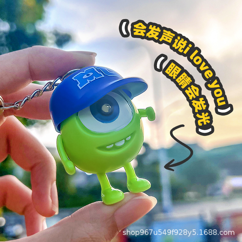 큰 눈 열쇠 고리 빛나는 음성 말하는 흔들림 톤 같은 만화 모자 세 눈 괴물 창조적 인 책가방 펜던트스토어 가기