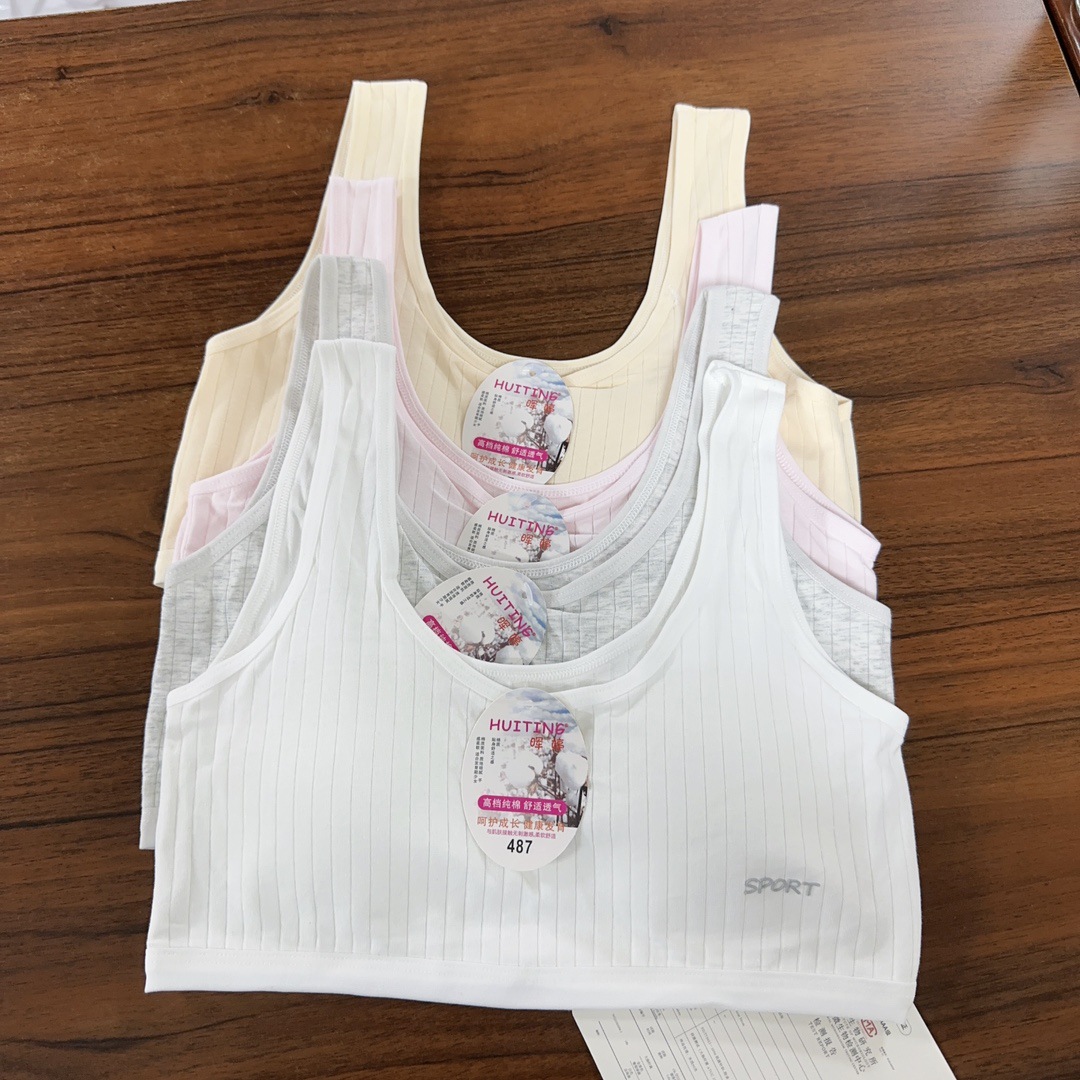 487 소녀의 성장 기간 와이드 조끼 새로운 순면 소녀의 속옷 간단한 알파벳 밴드 가슴 패드 학생 조끼스토어 가기