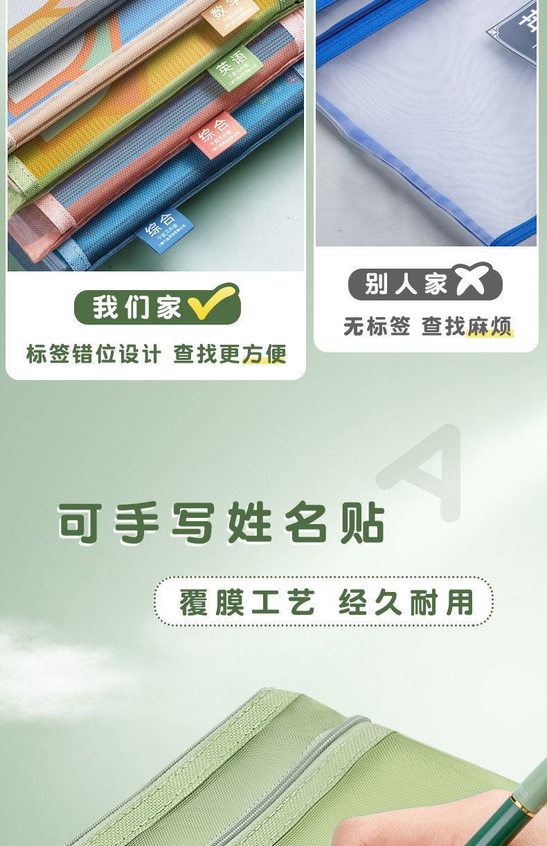 학생 과목 분류 가방 나일론 메쉬 더블 레이어 지퍼 파일 가방 파일 데이터 보관 핸드백 보관 가방스토어 가기