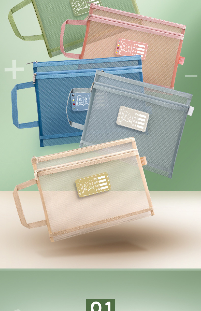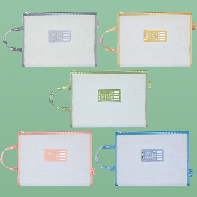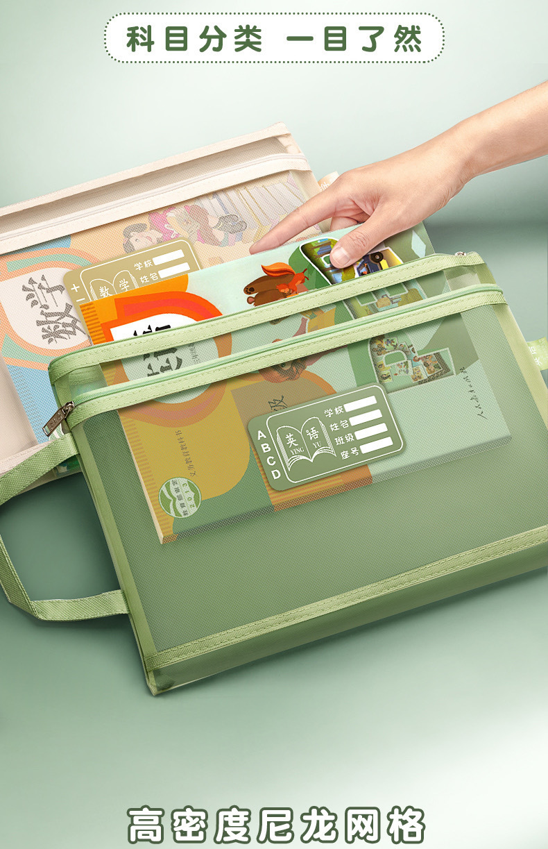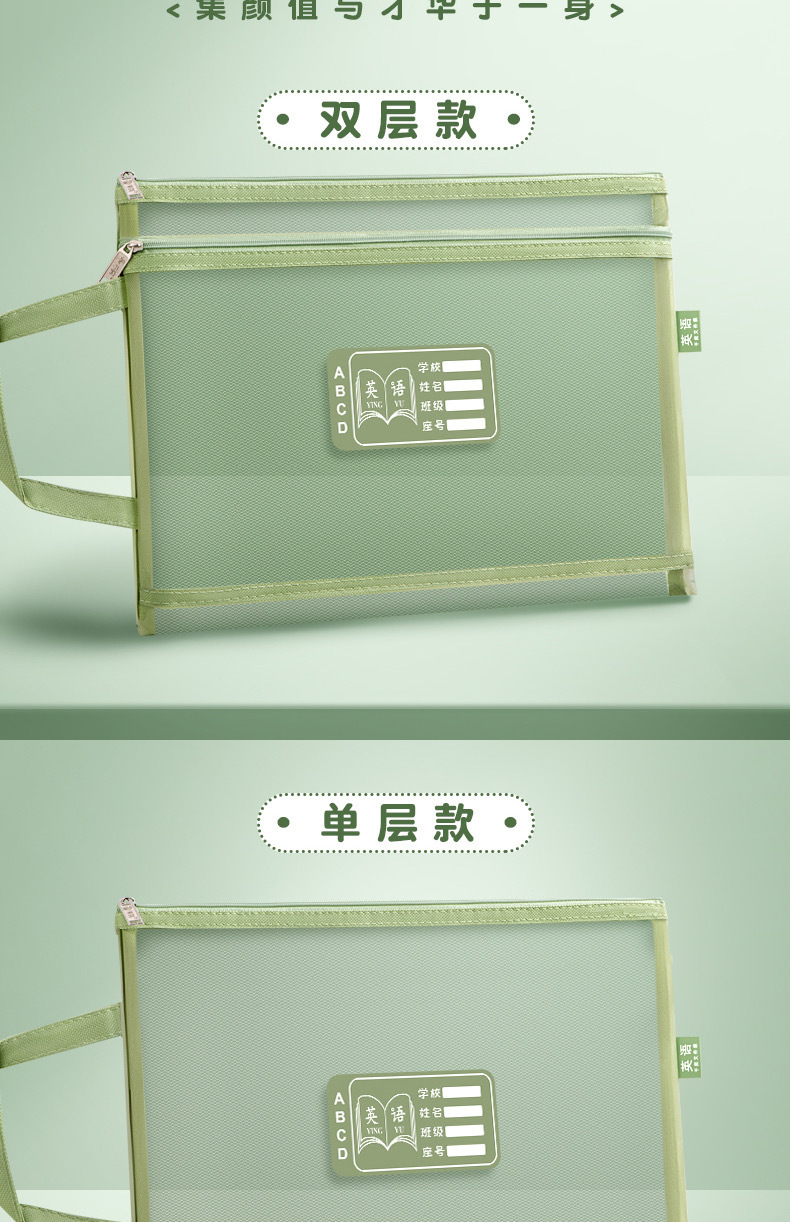 학생 과목 분류 가방 나일론 메쉬 더블 레이어 지퍼 파일 가방 파일 데이터 보관 핸드백 보관 가방