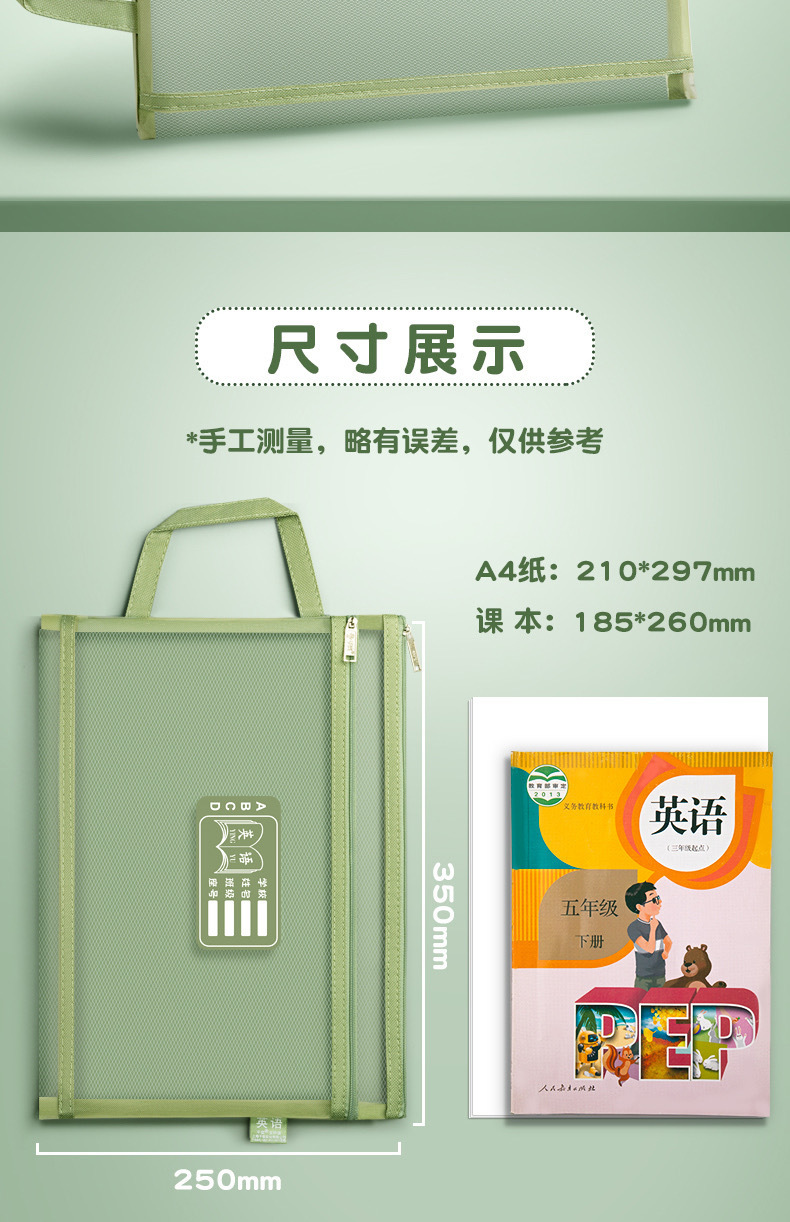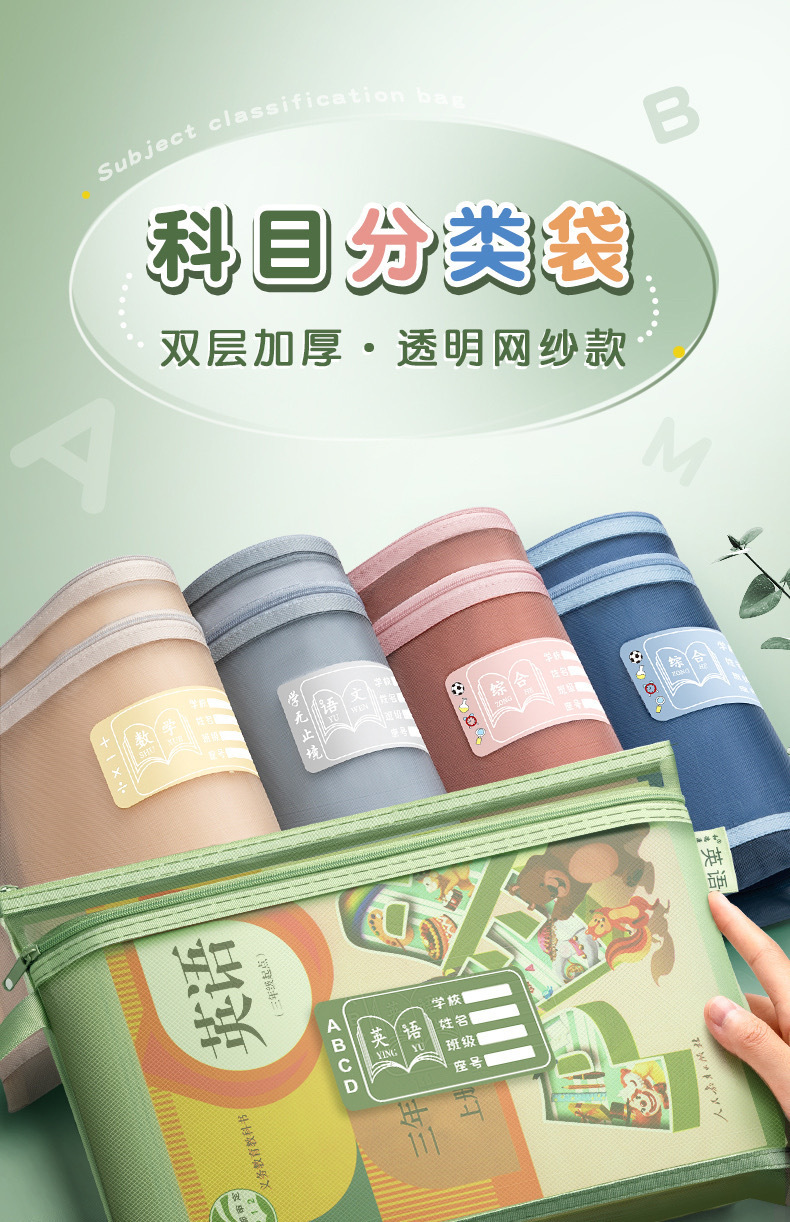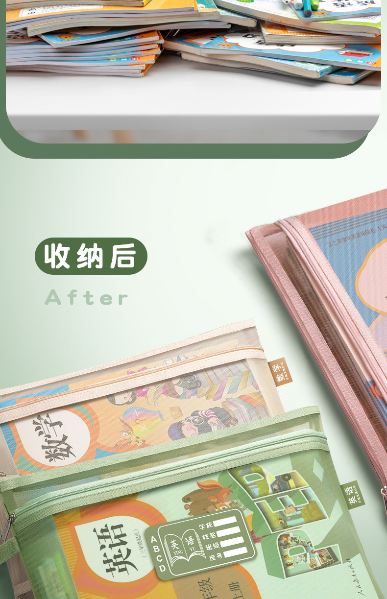 학생 과목 분류 가방 나일론 메쉬 더블 레이어 지퍼 파일 가방 파일 데이터 보관 핸드백 보관 가방