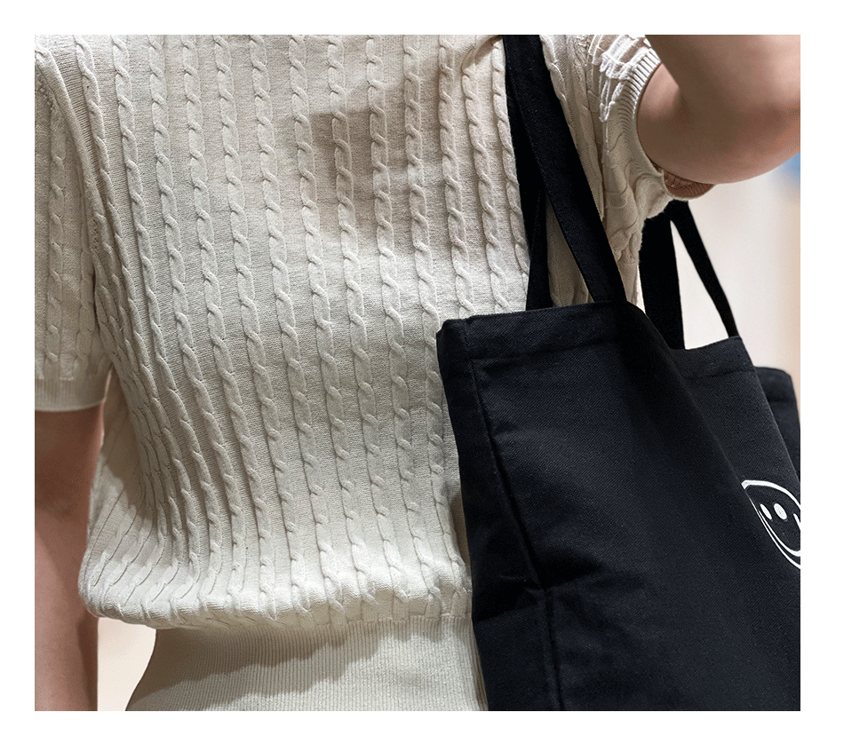 • 화이트 라지 스마일리 페이스 [35*40cm 지퍼 + 내부 포켓]