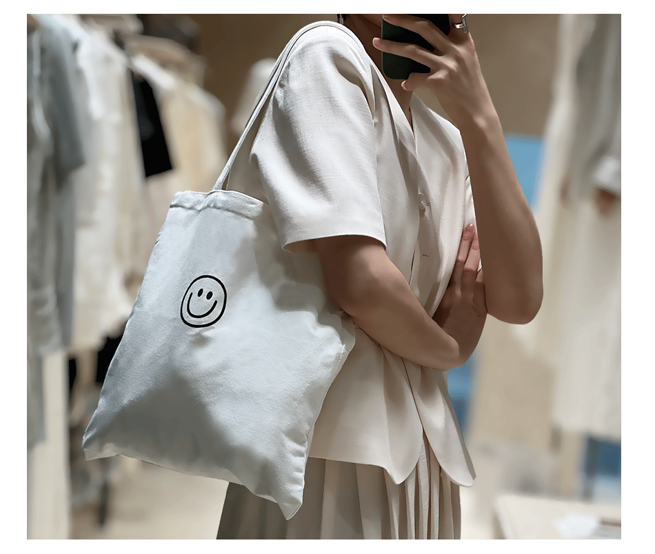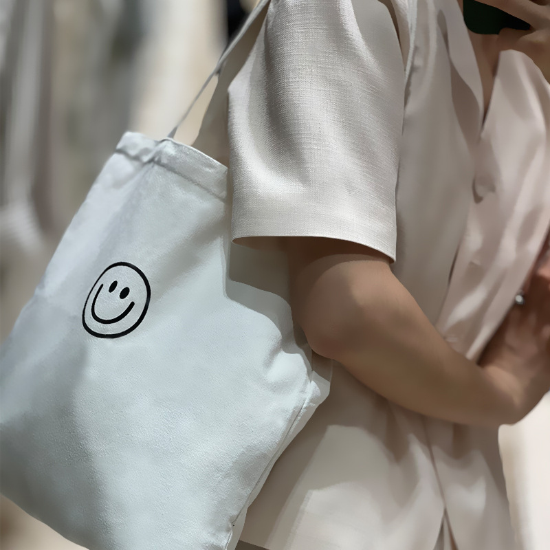 캔버스 가방 새로운 대형 스마일 간단한 한국어 스타일 대용량 휴대용 매일 학생 수업 캔버스 가방스토어 가기