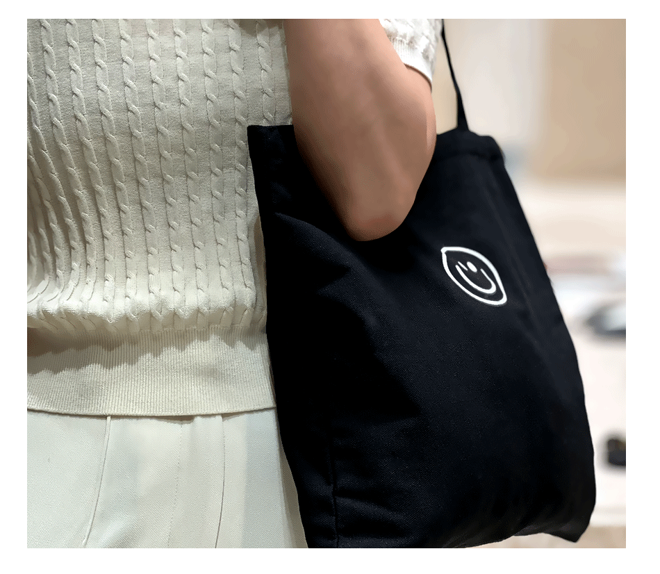 • 블랙 라지 스마일리 페이스 [35*40cm 지퍼 + 내부 포켓]