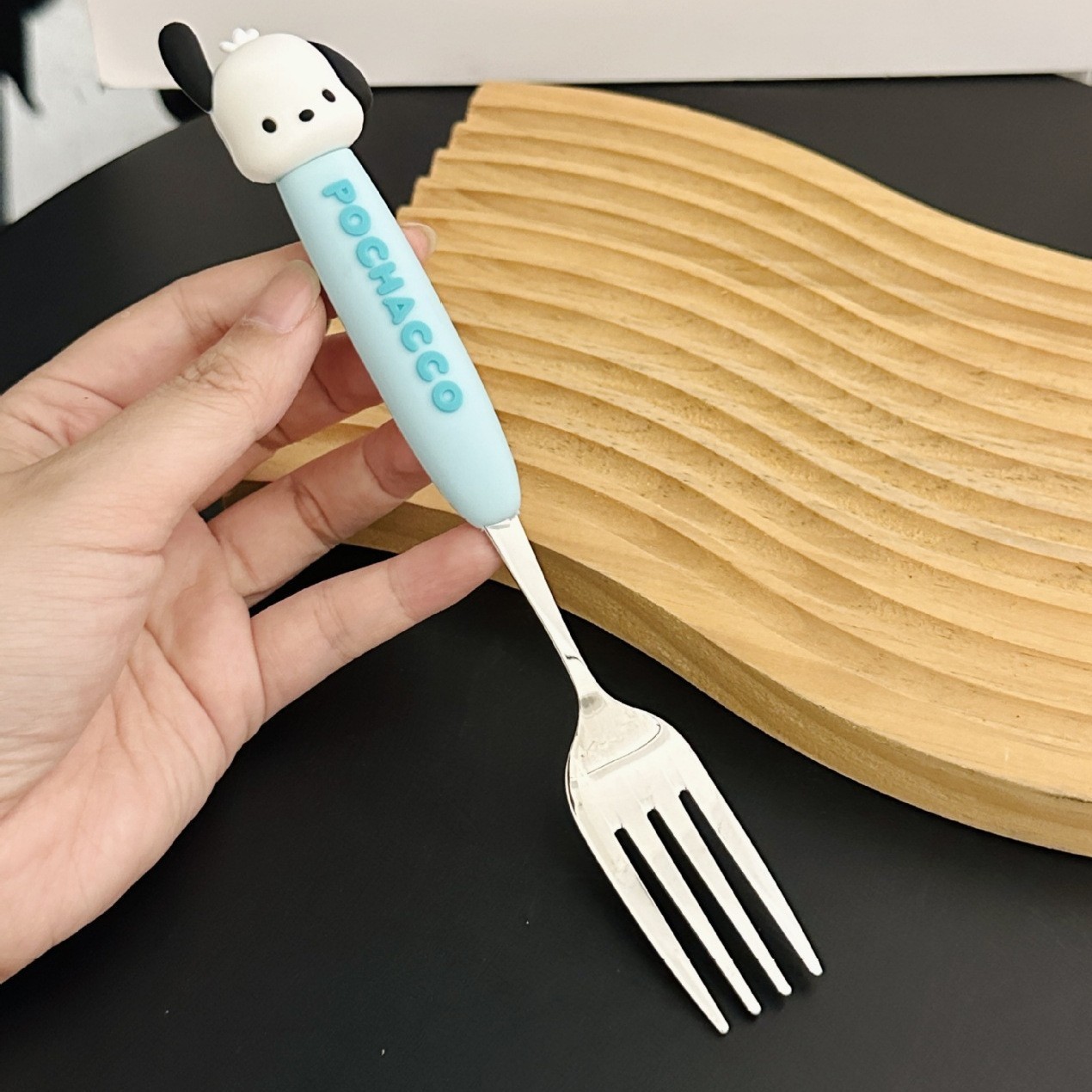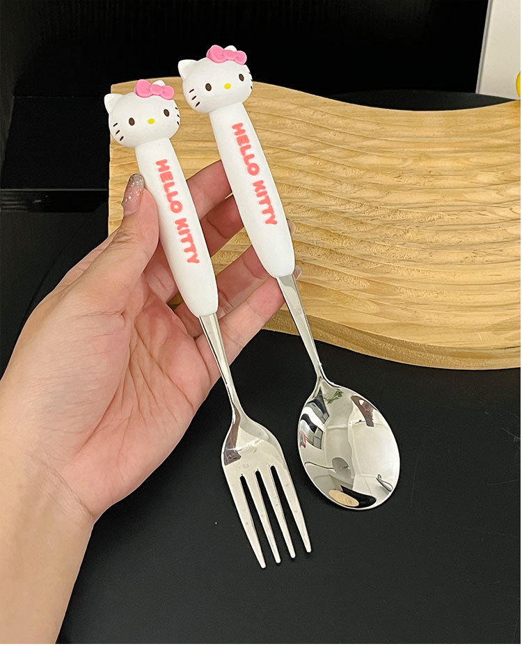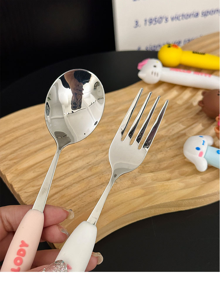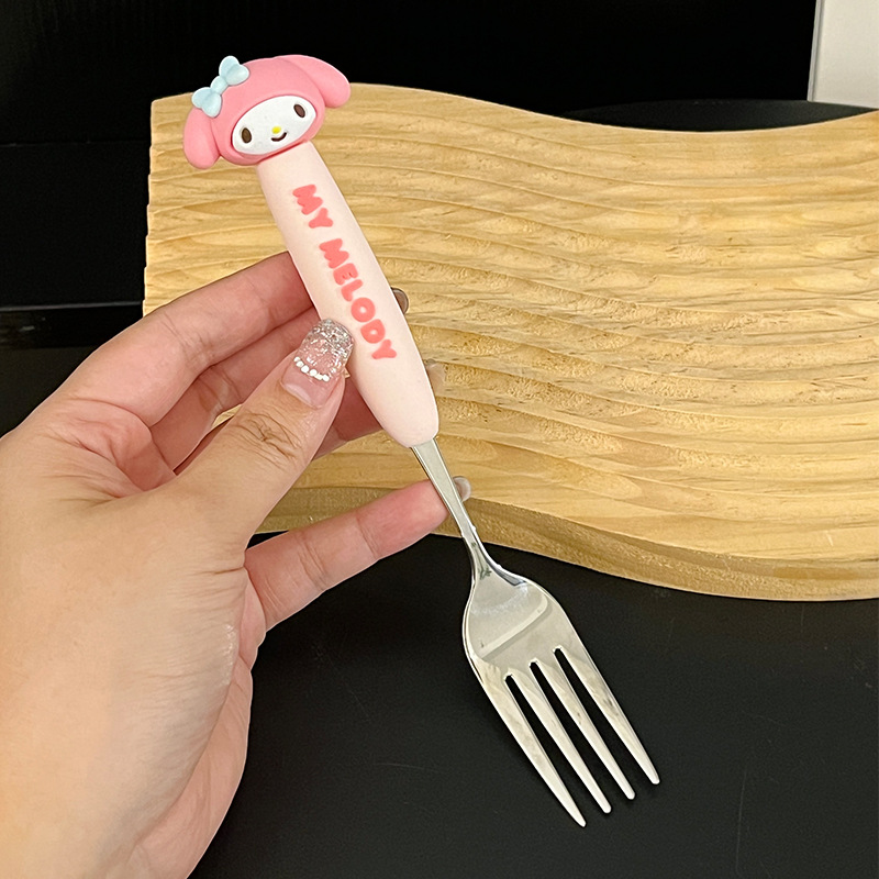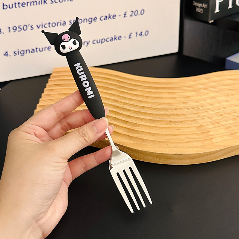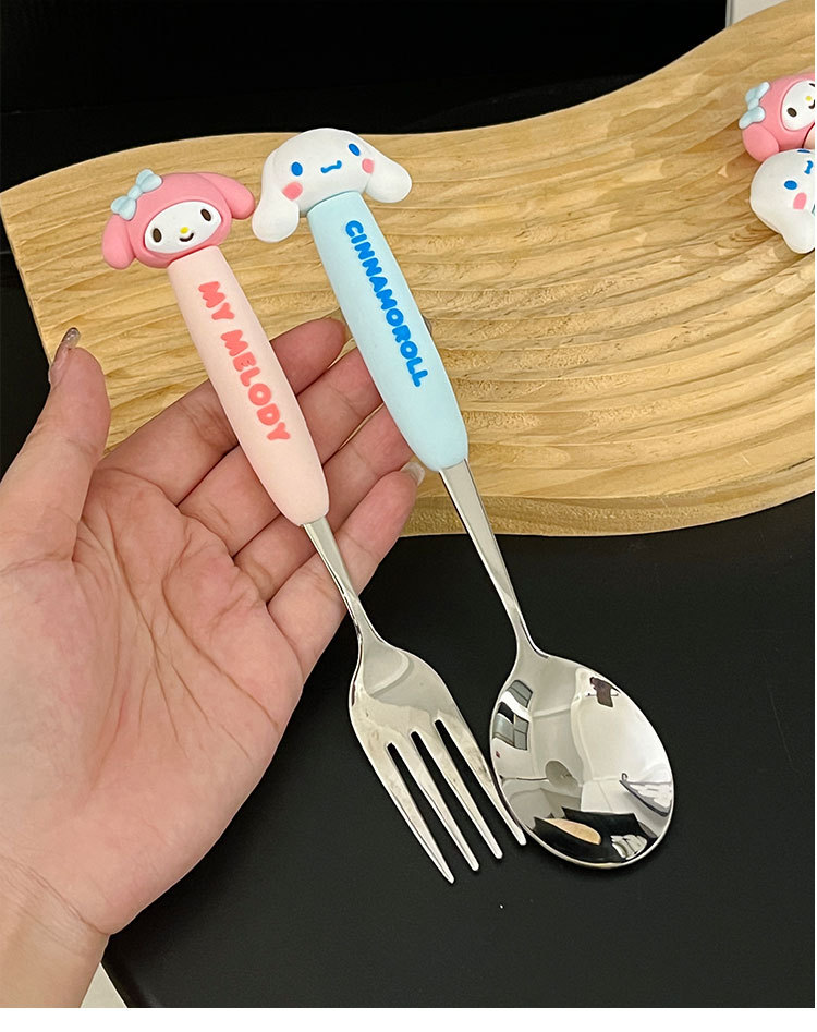 산리오 만화 실리콘 스푼 304 스테인리스 포크와 스푼 세트 귀여운 학생 기숙사 식기 수프 스푼 과일 포크