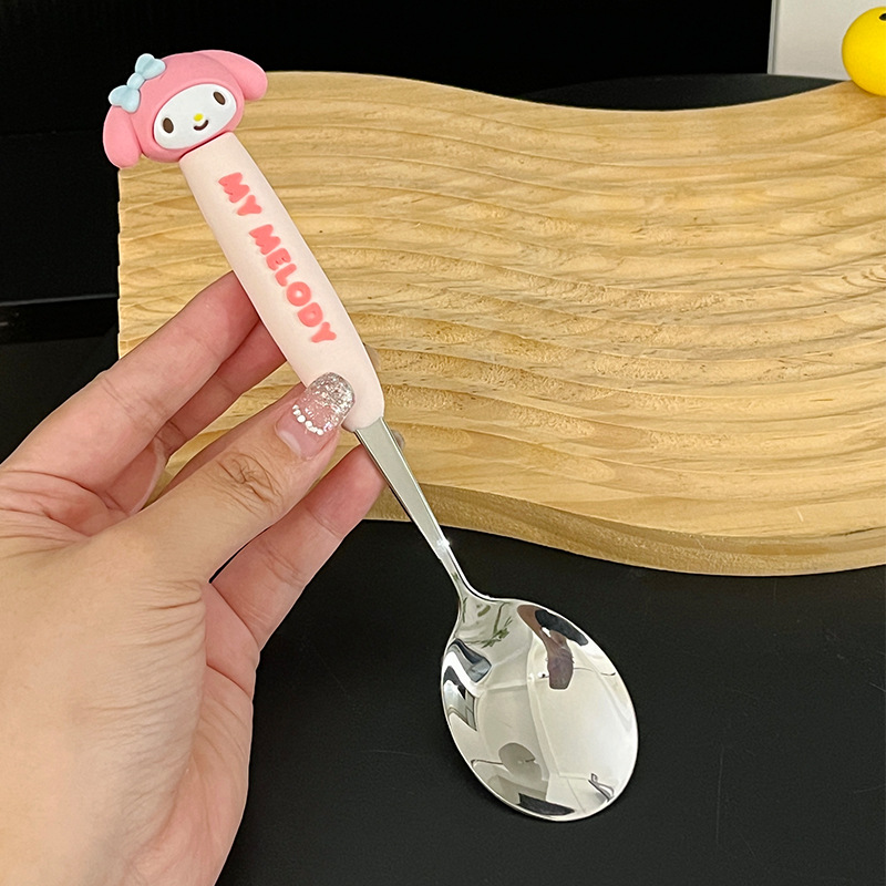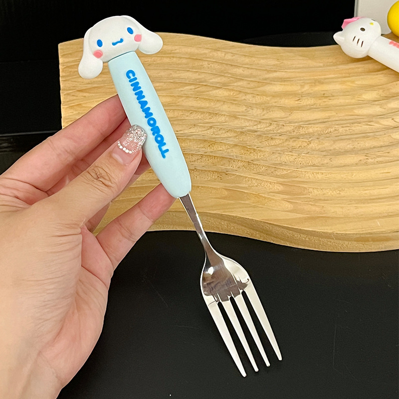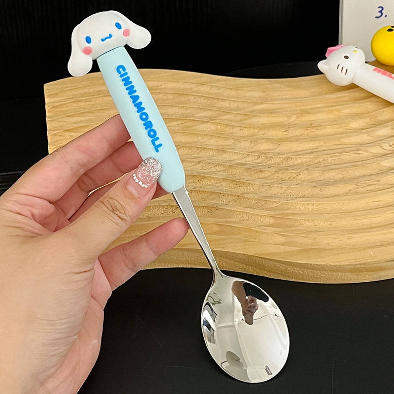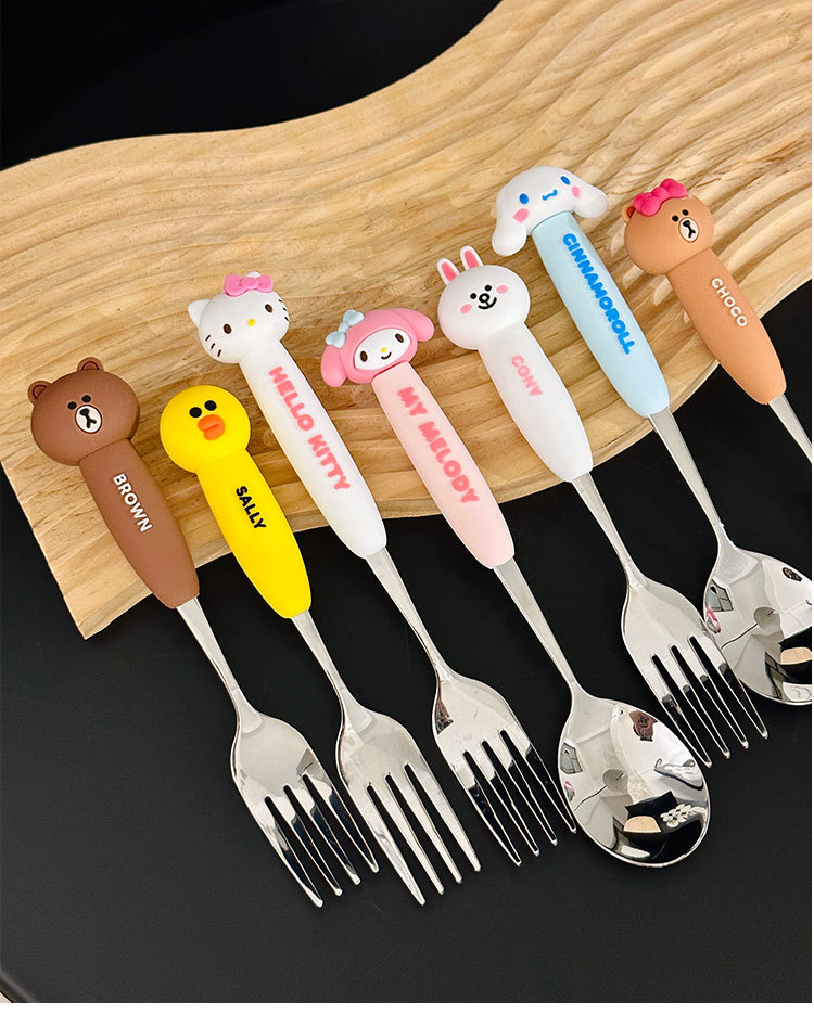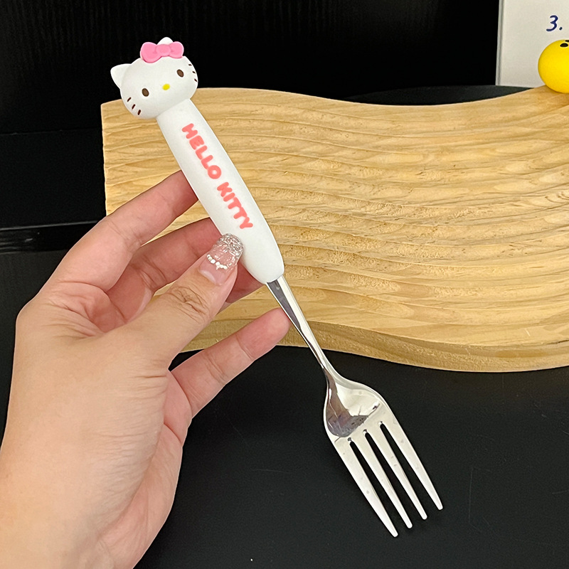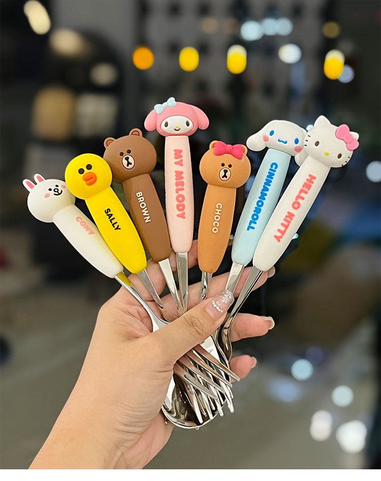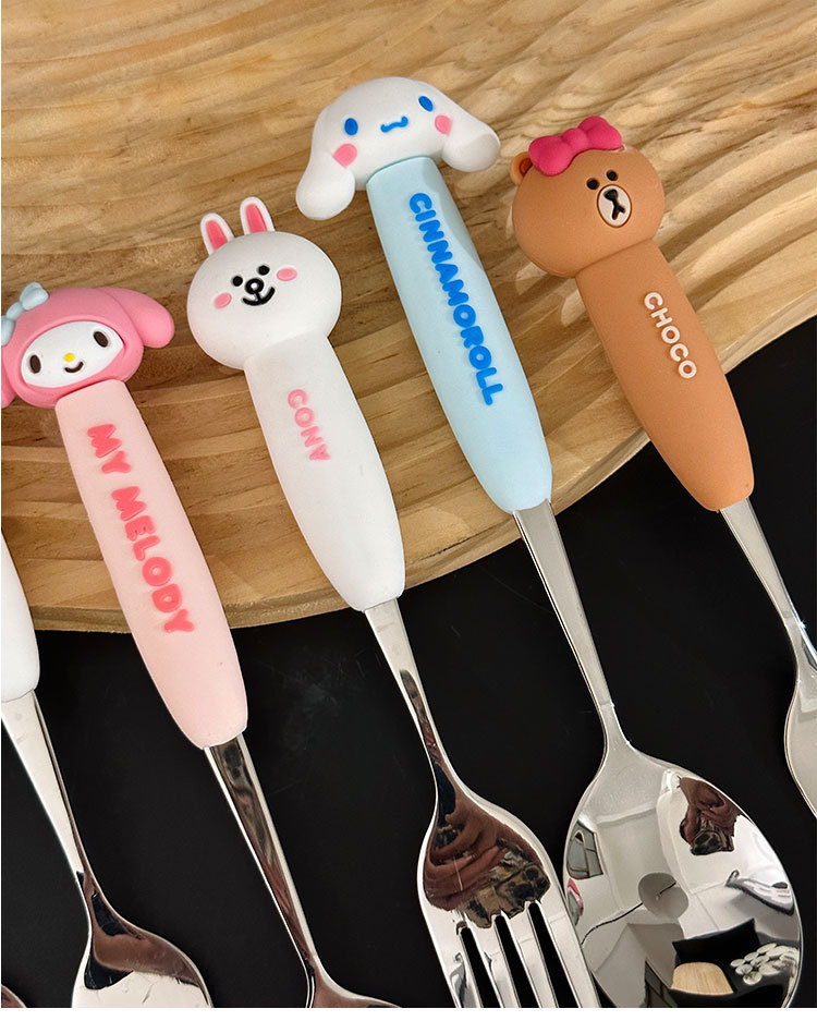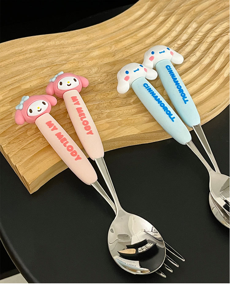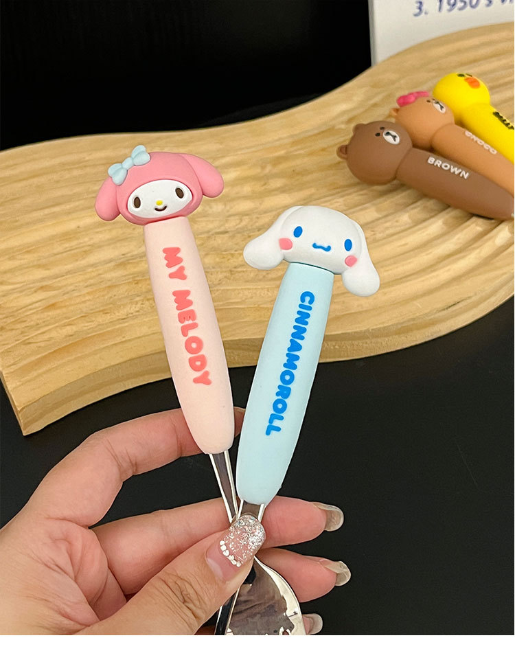 산리오 만화 실리콘 스푼 304 스테인리스 포크와 스푼 세트 귀여운 학생 기숙사 식기 수프 스푼 과일 포크스토어 가기
