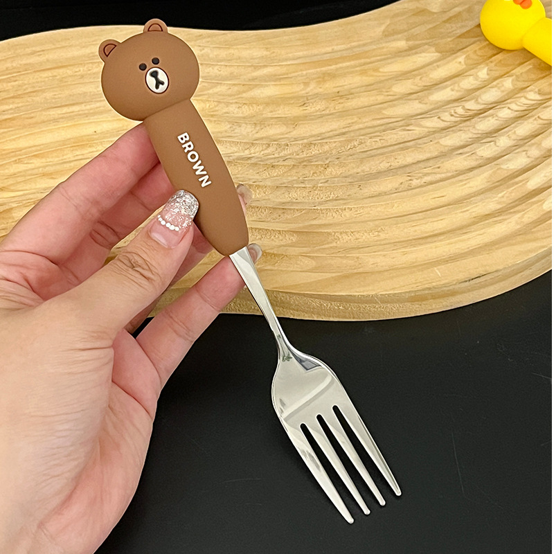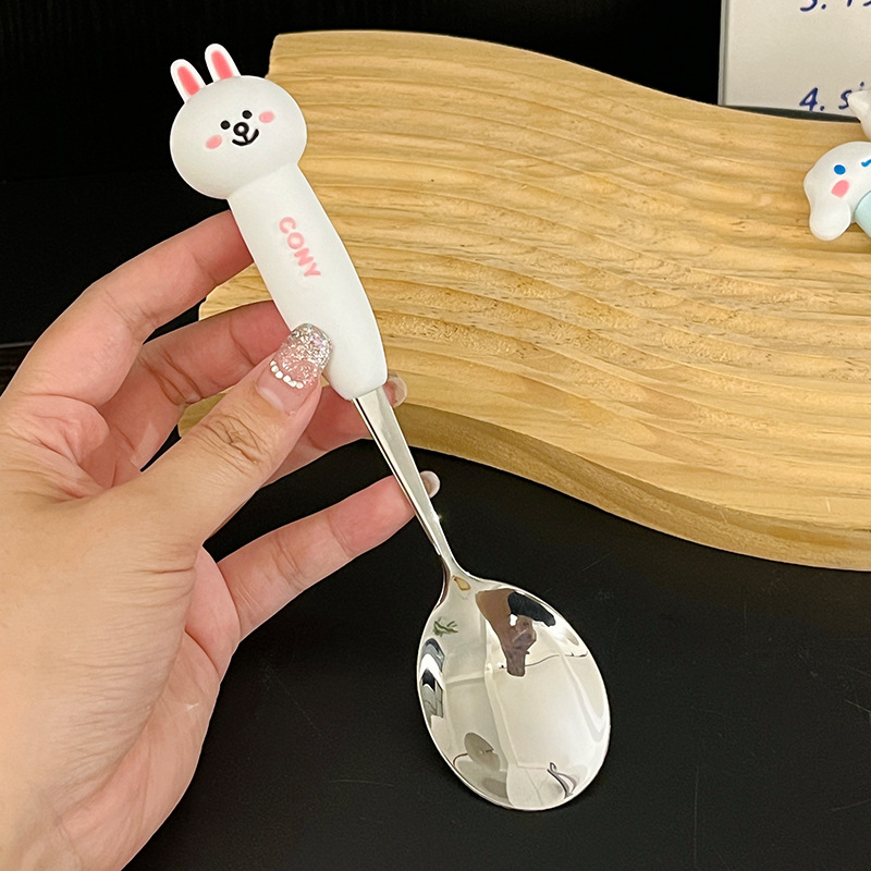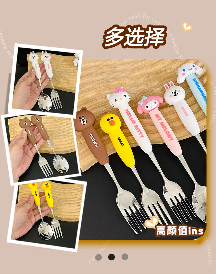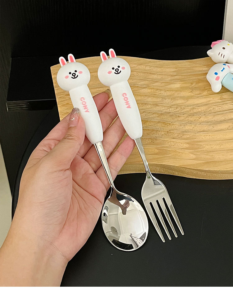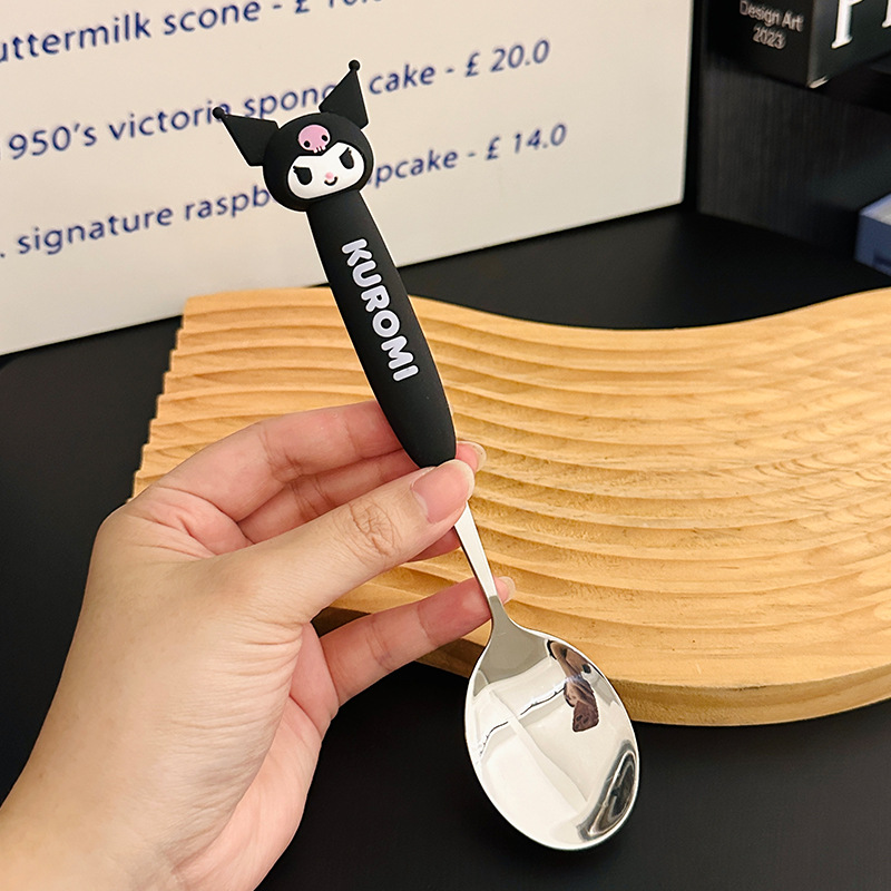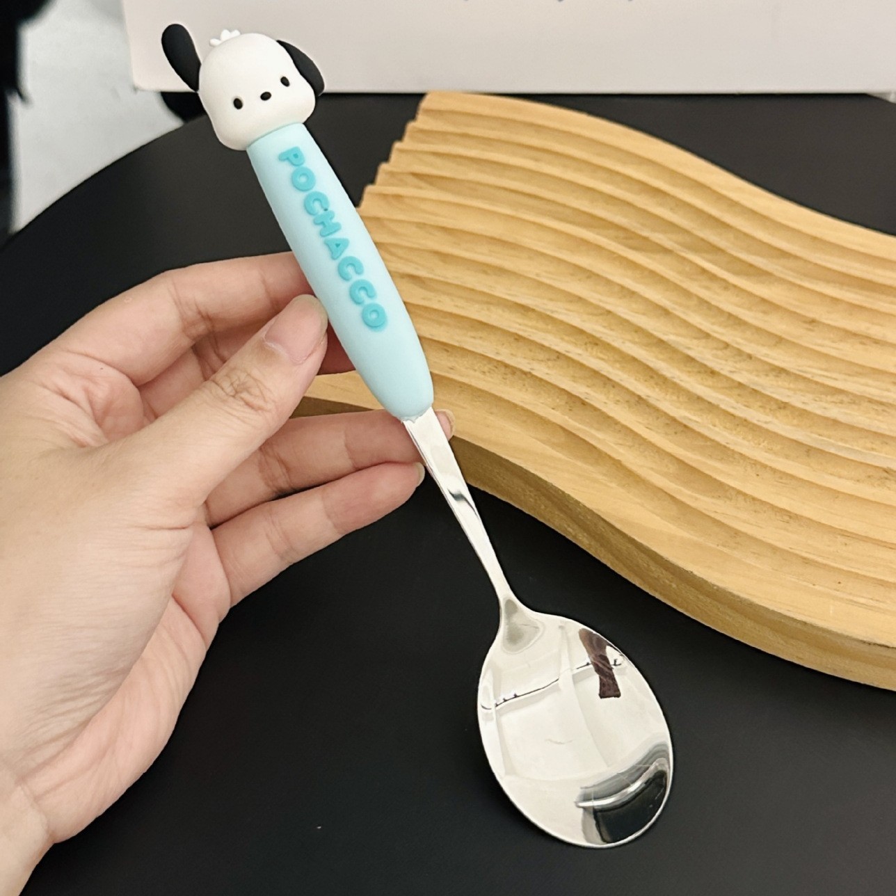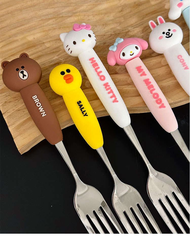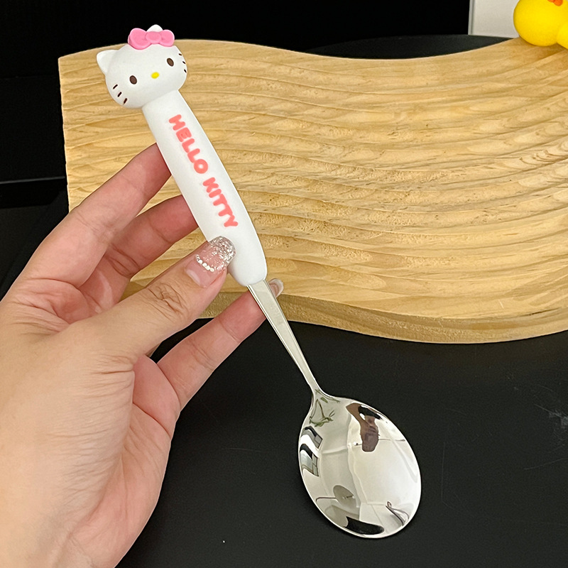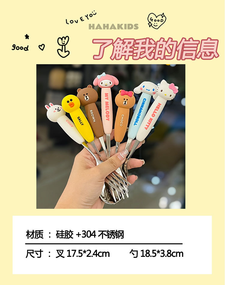 산리오 만화 실리콘 스푼 304 스테인리스 포크와 스푼 세트 귀여운 학생 기숙사 식기 수프 스푼 과일 포크스토어 가기